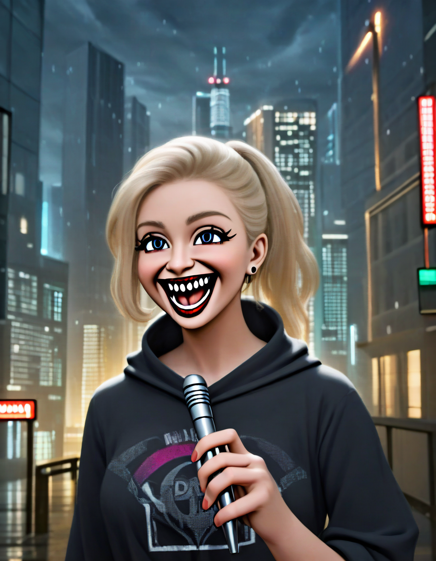 selfie, on stage, well lit, in... (7 doras merged)