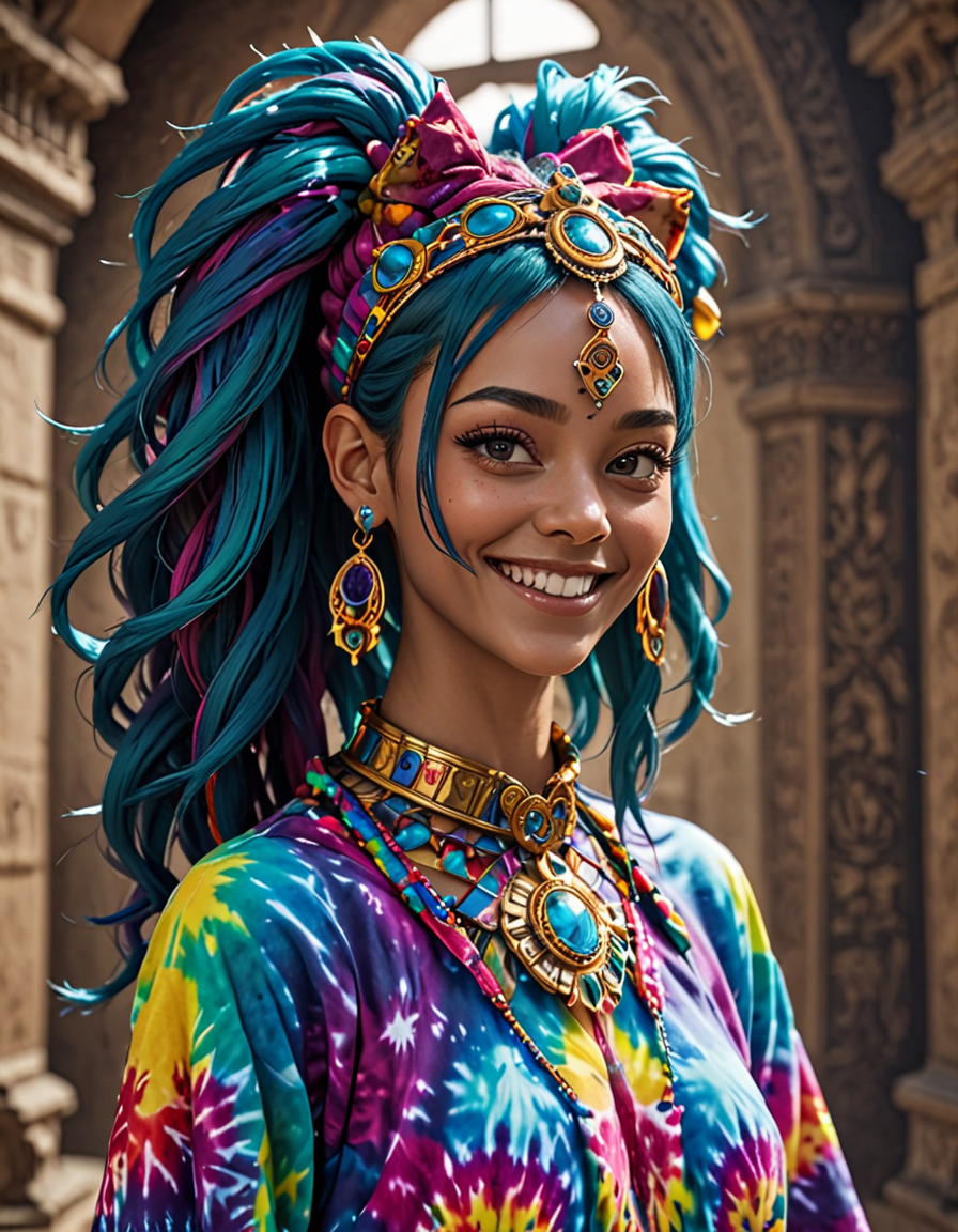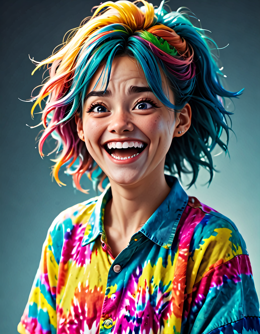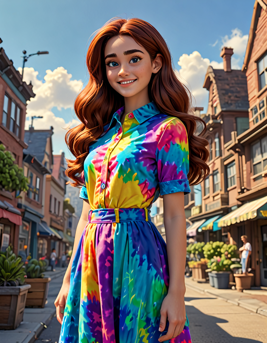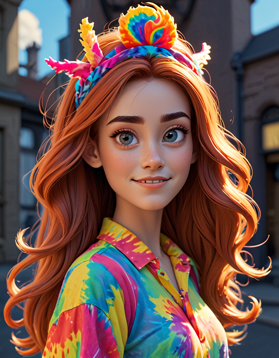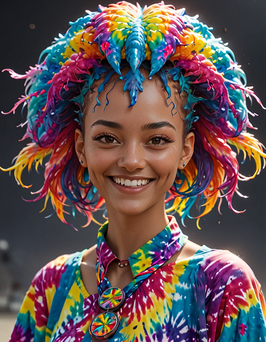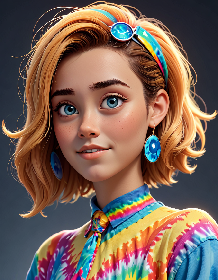 wearing colorful tie-dye, pixe... (3 doras merged)