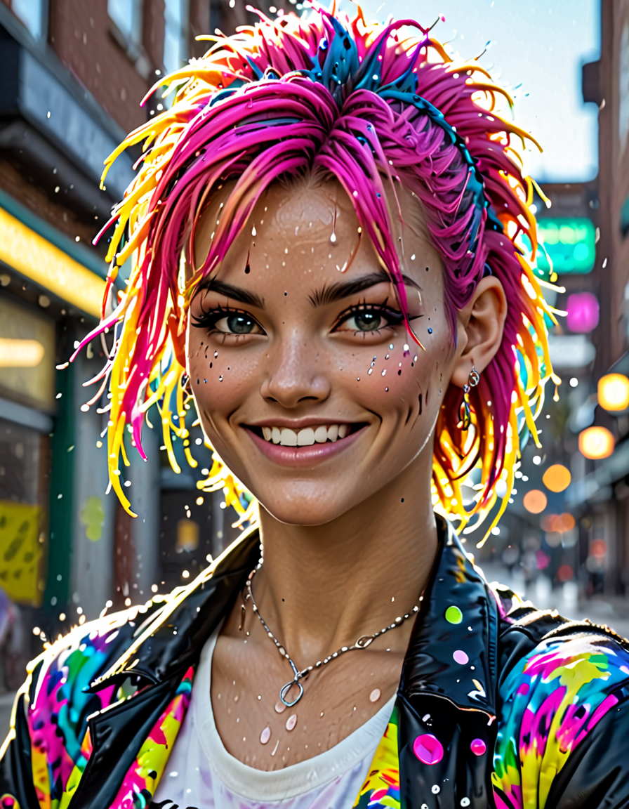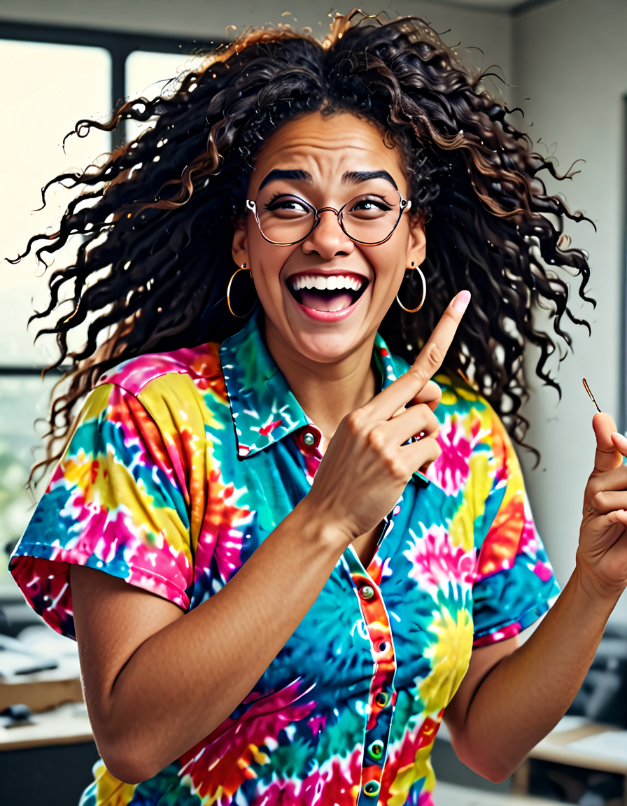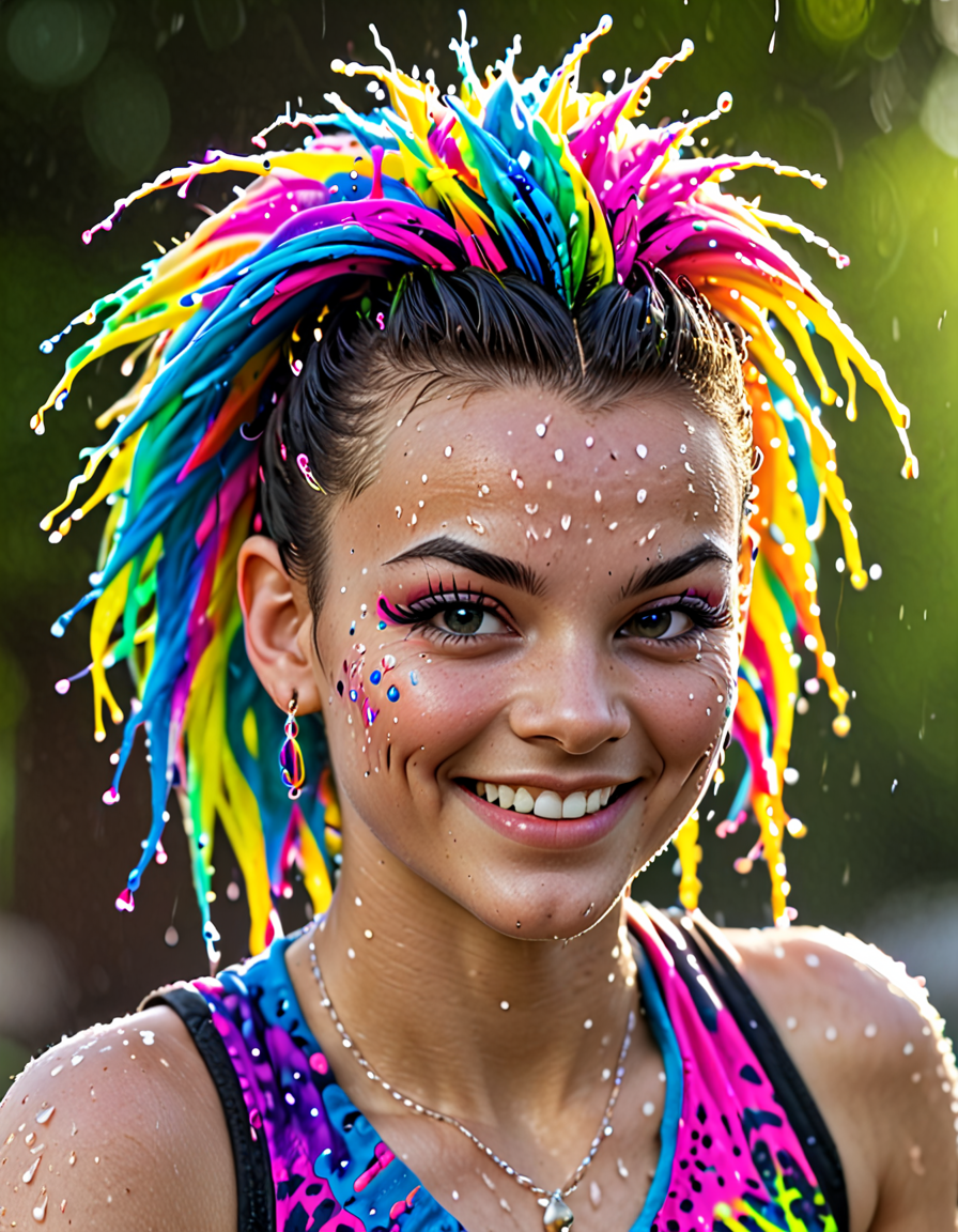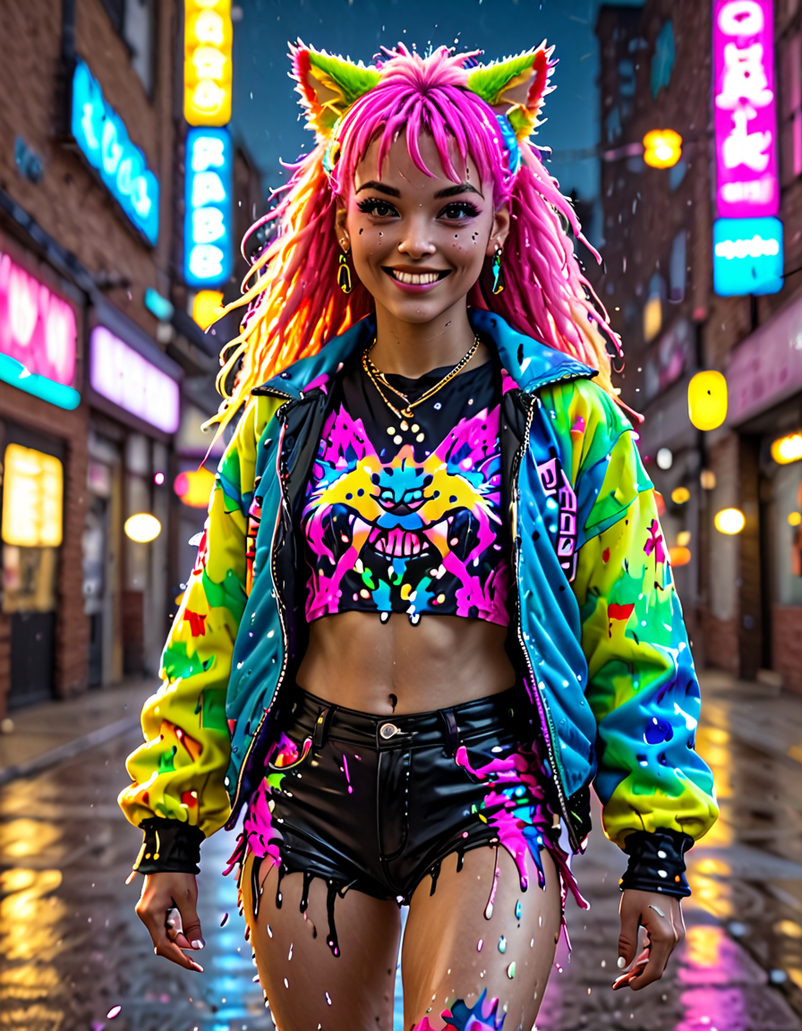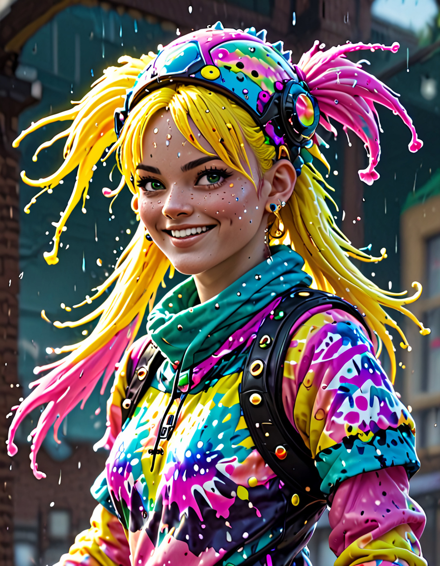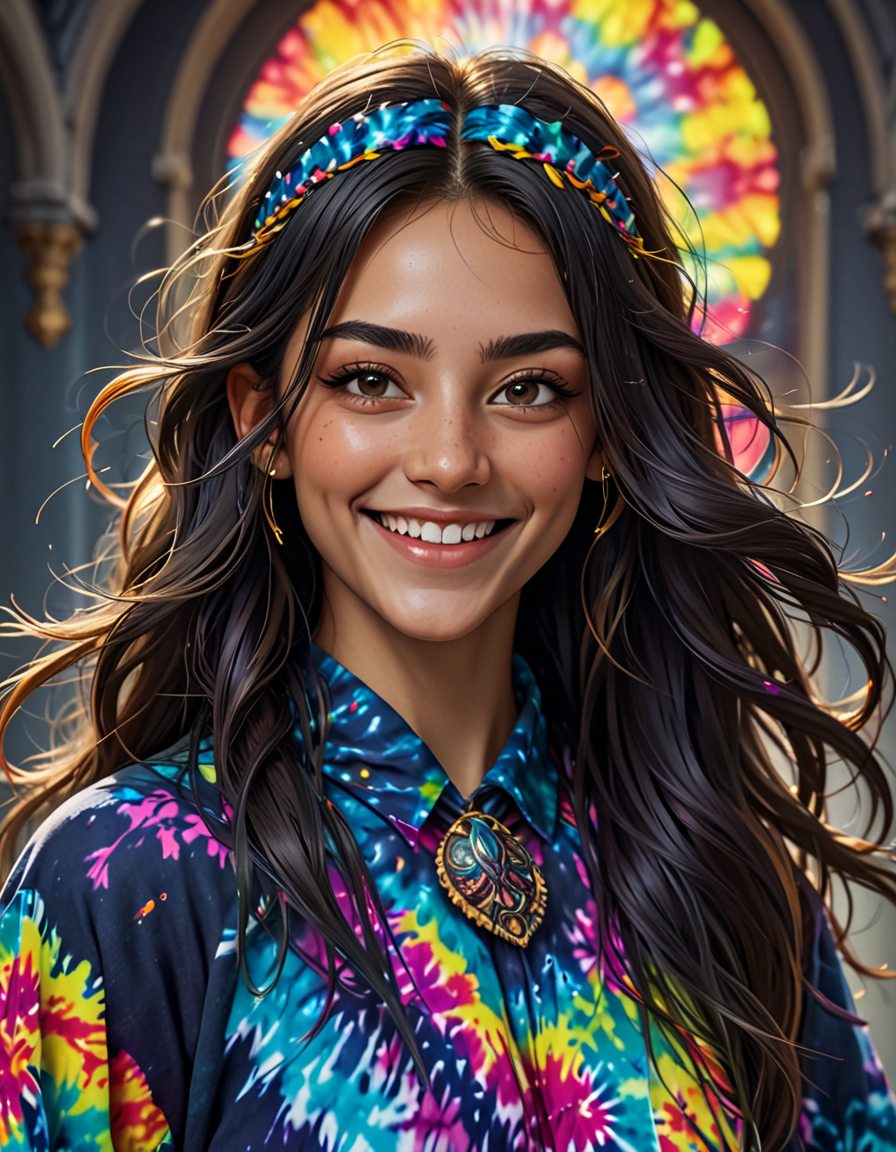 wearing colorful tie-dye, pixe... (3 doras merged)