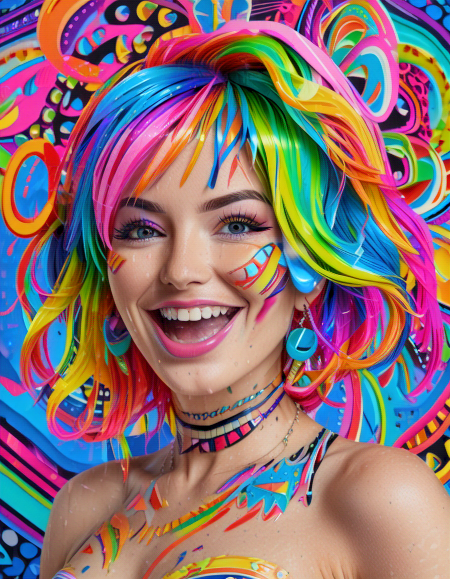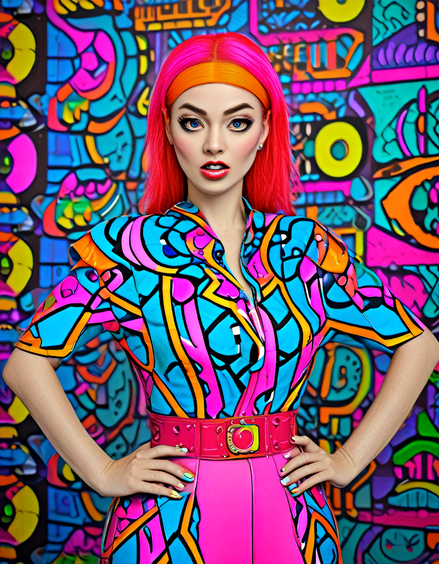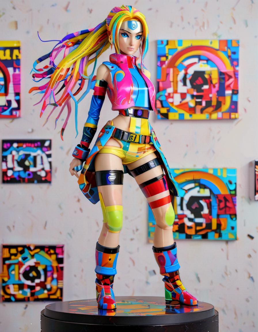 dimly lit, monochrome sketch → vibrant, colorful pop art piece