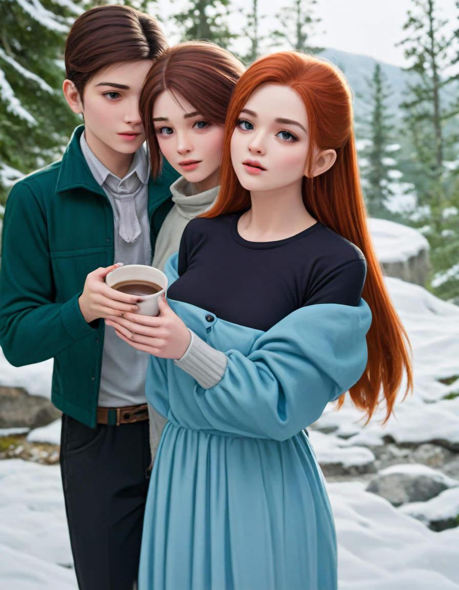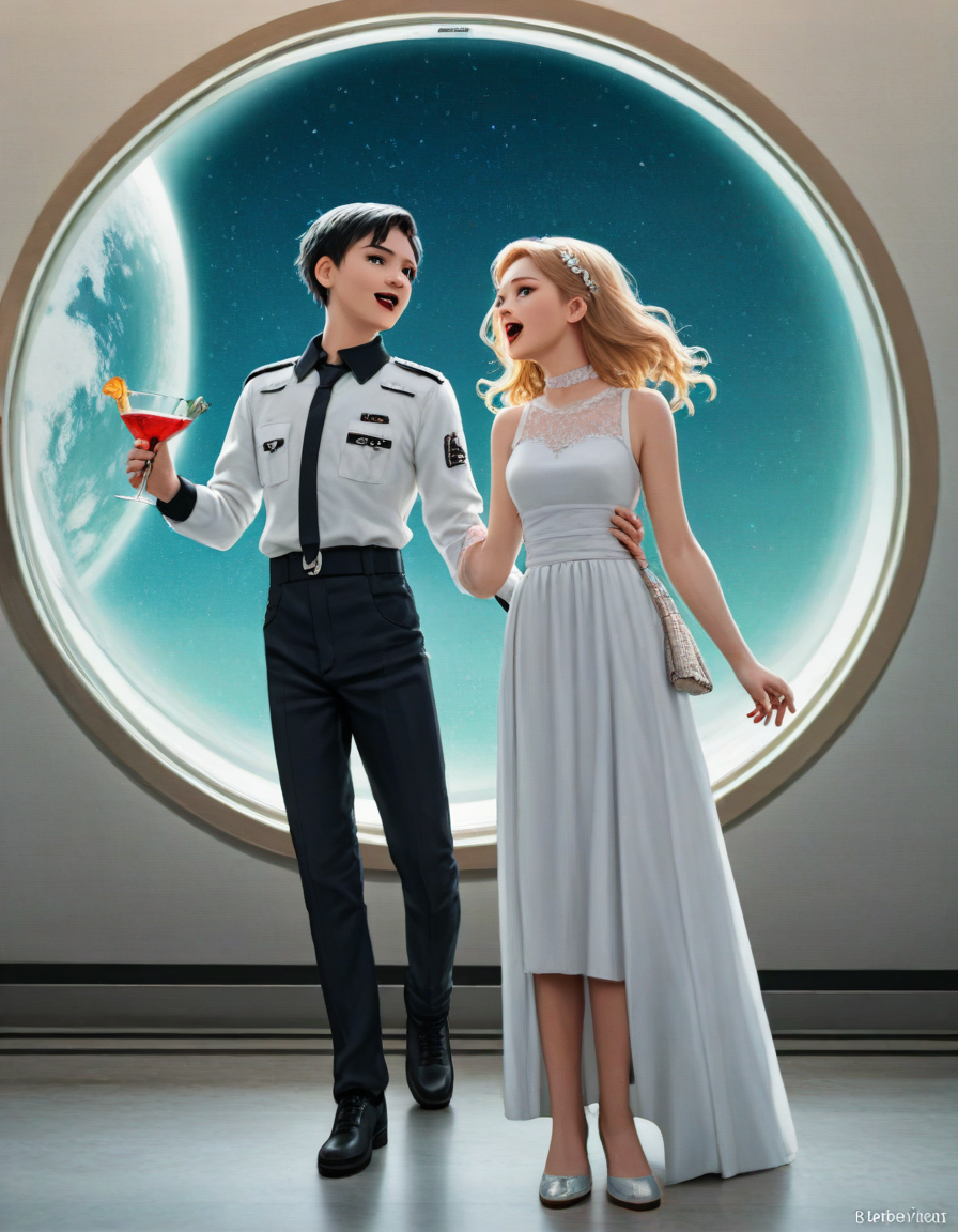 Attributes: woman, man, bright, dim, cartoon, photo, anime
