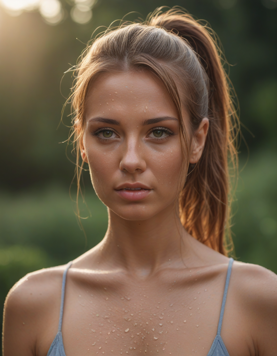 Tanned skin glistening in the ... (6 loras merged)