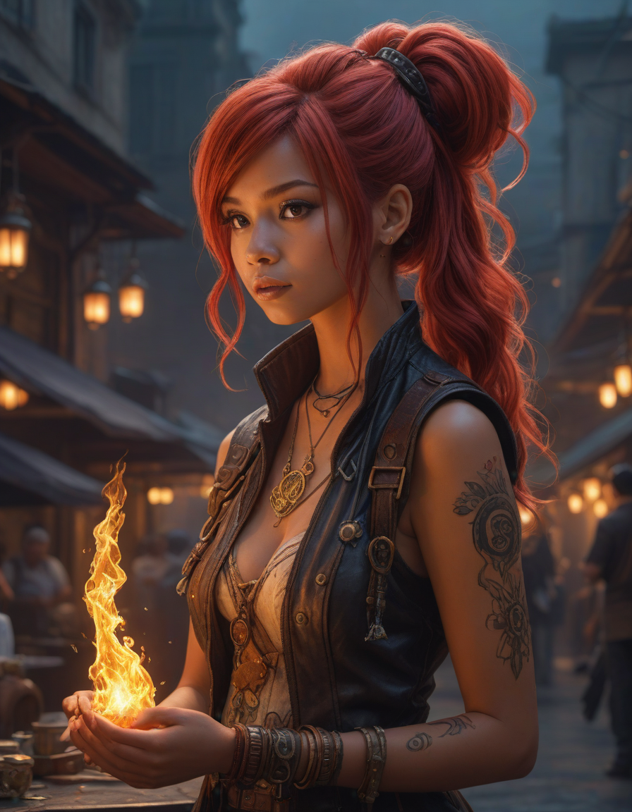 plain hair, normal hair, flat hair→fiery hair flickering with realistic flames