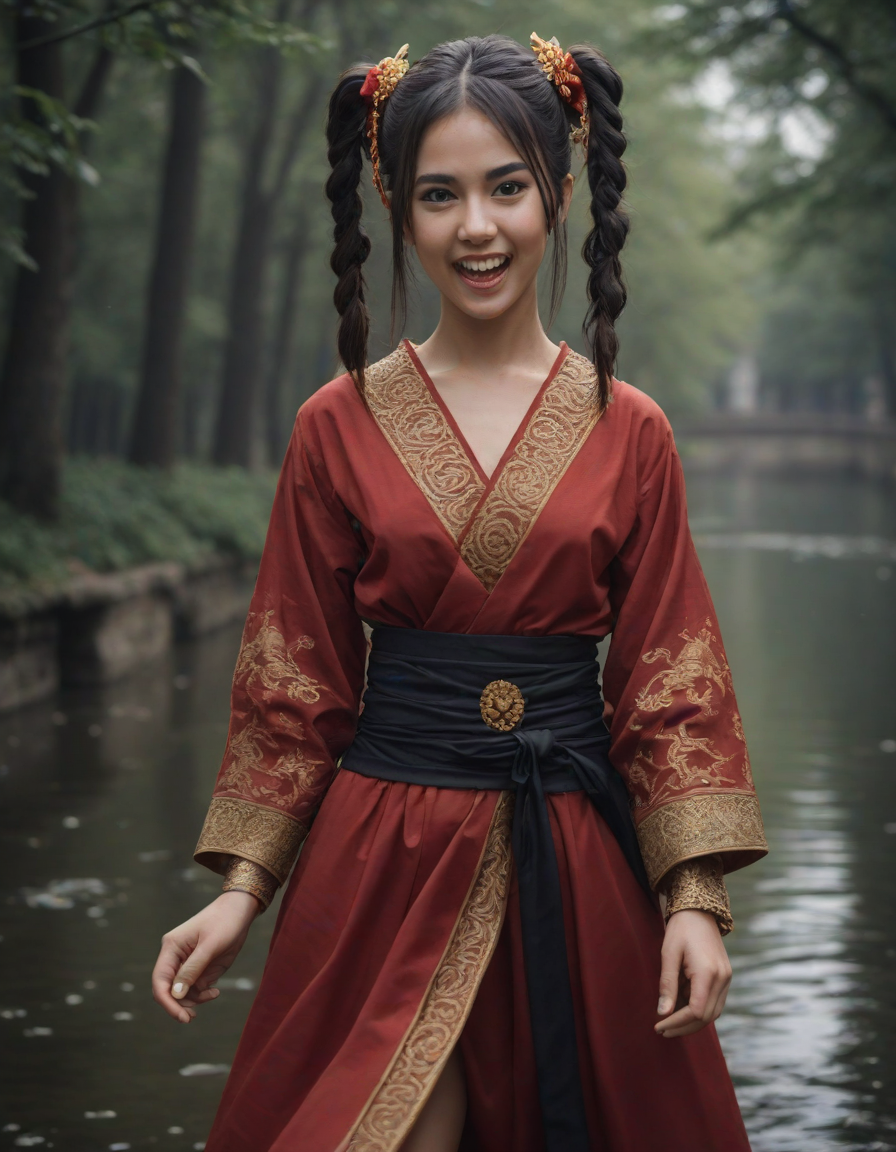 Teeth-filled grin, on the bus,... (13 loras merged)