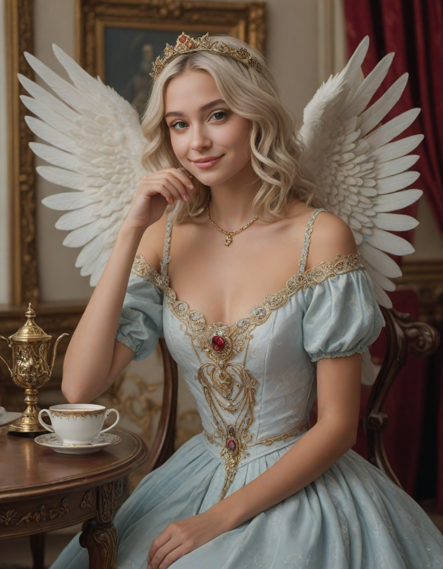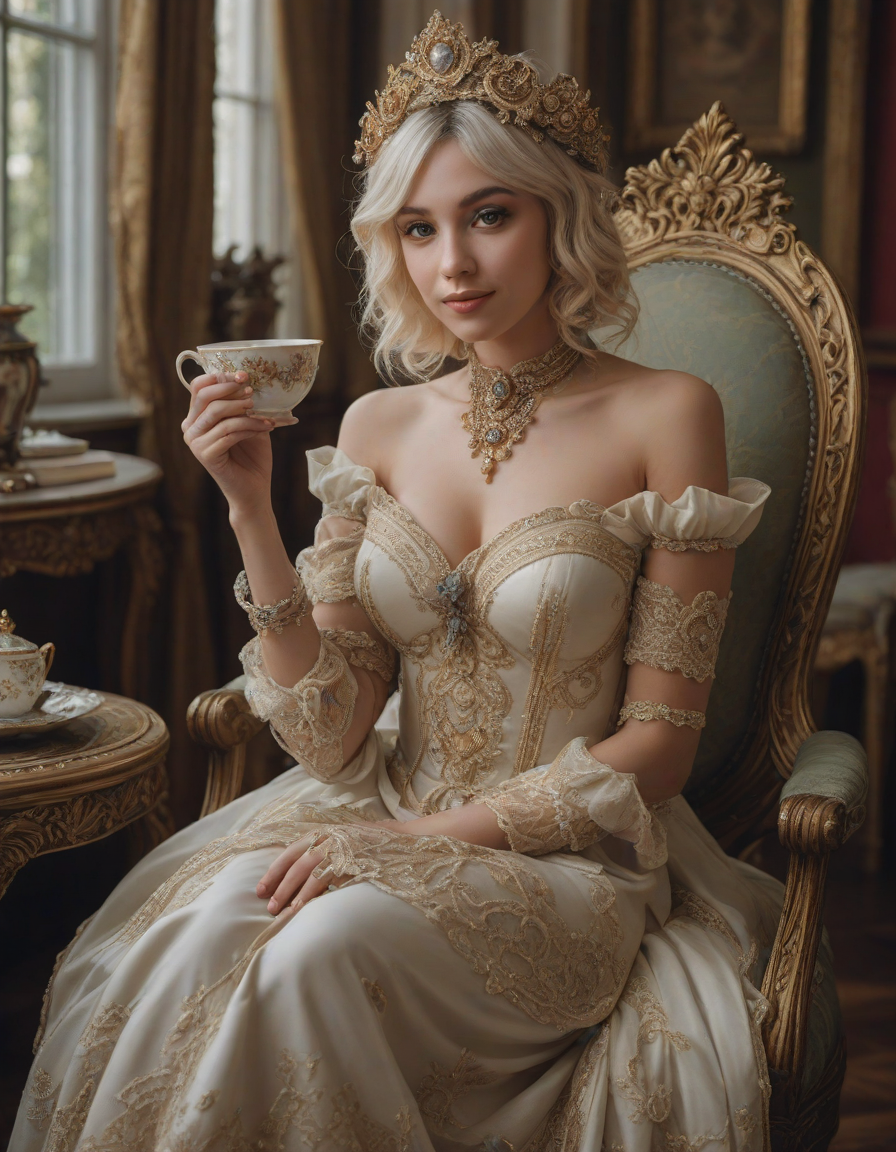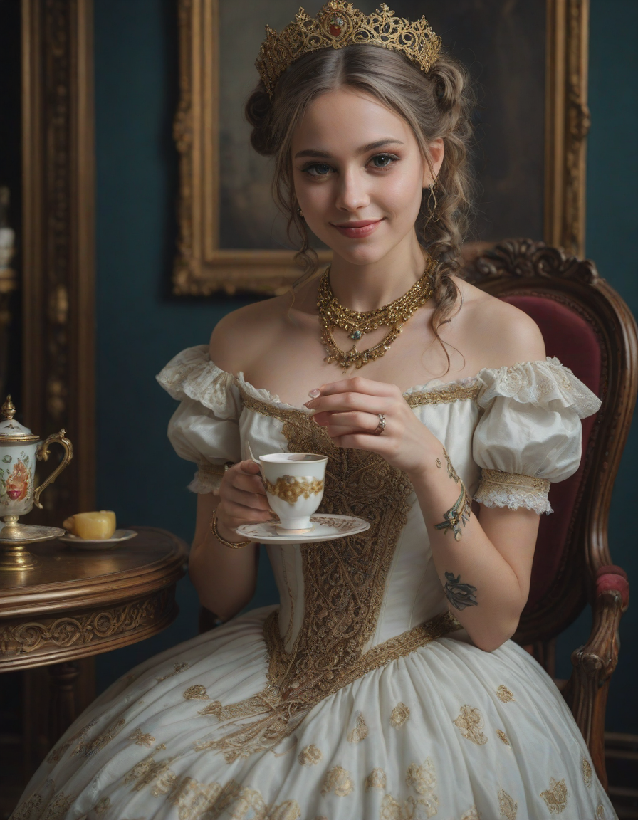 ornate, gold-trimmed ball gown... (13 loras merged)