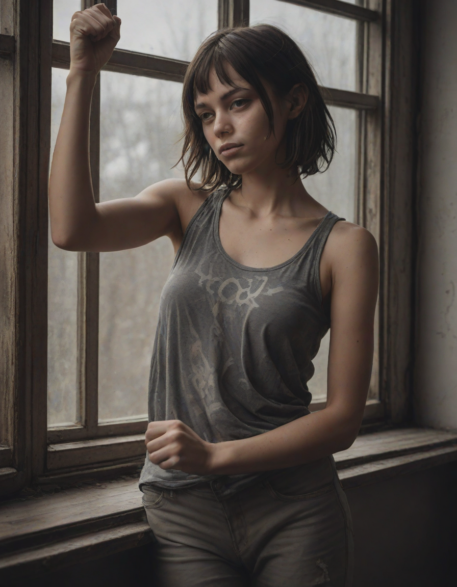 tattered, fist raised in trium... (5 loras merged)