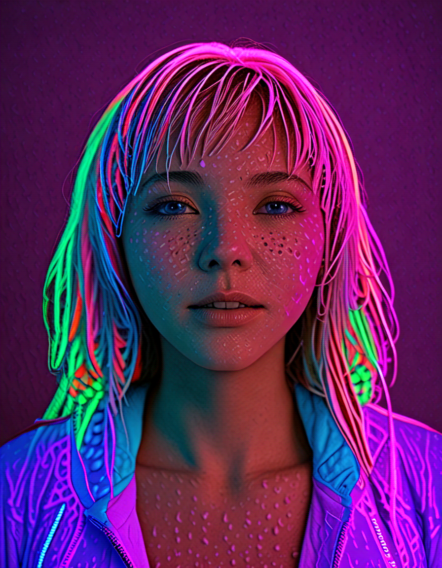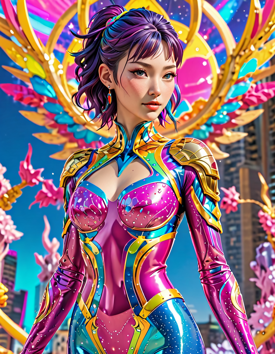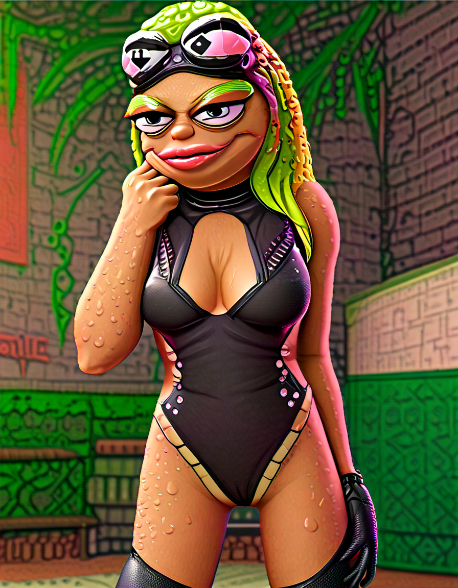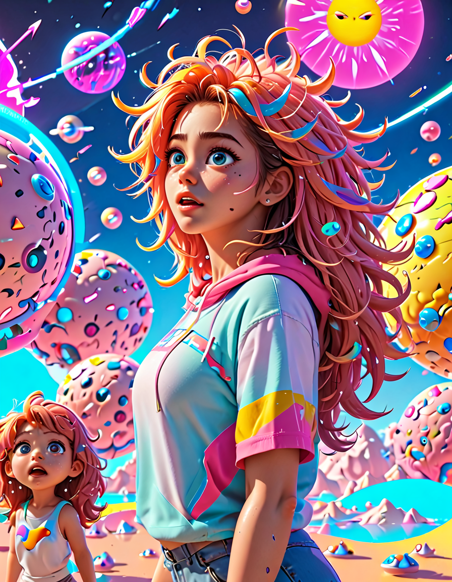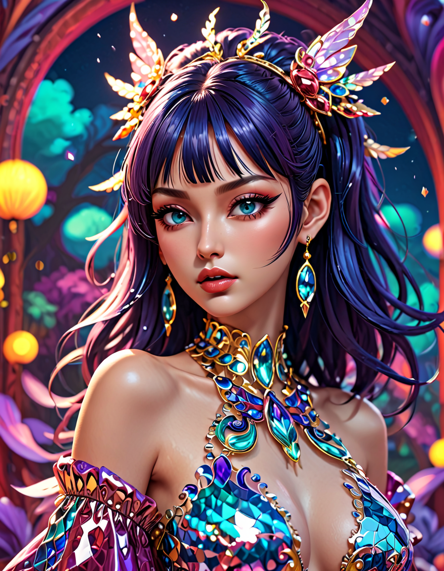 Craft an ultra-realistic, photorealistic image of an 18-year-old high school senior girl, fully immersed in the e-girl aesthetic, standing alone yet commanding the scene with an unspoken power. Her voluptuous figure is showcased through the definitive e-girl style, blending internet culture's flair with a personal touch that's bold and unapologetic. Her attire consists of an oversized long-sleeve striped shirt beneath a black graphic t-shirt dress that contours gracefully, celebrating her curves against the backdrop of e-girl fashion's layered complexity. Fishnet tights underpin the ensemble, leading down to chunky black platform boots that ground her in strength and style. Her makeup is a canvas of e-girl artistry, with dramatic winged eyeliner that stretches towards her temples in a bold statement, eyeshadow in neon hues that electrify her gaze, and dark, matte lipstick that draws all eyes to her. A generous application of blush adds life and vibrancy to her cheeks, complemented by creatively designed nails that are both dark and daring. Accessories—silver chains, a heart pendant choker, and a collection of rings—add layers of personality and depth. Her hair, possibly featuring pastel or neon streaks, is styled in a way that balances edge with elegance, with temporary tattoos or stickers adorning her face to accentuate her playful rebellion. In this moment, the young woman stands with her hands confidently on her hips, embodying the essence of e-girl individuality and assurance. This pose not only showcases her outfit and the nuances of her style but also conveys a sense of self-assuredness and ownership of her identity. Her expression can be a mix of a playful smirk and a challenging gaze, inviting viewers into her world while holding them at just the right distance. The background remains intentionally blurred, a mere suggestion of her personal space adorned with elements synonymous with the e-girl life—neon signs, band posters, and string lights—creating an ambiance that's both intimate and expressive. The lighting emphasizes the vivid colors of her makeup and the unique textures of her outfit, casting her in an ambiance that's dynamic and full of life. This visualization retains the essence of our previous description, now enhanced by a pose that speaks volumes of her confidence and the vibrant spirit of the e-girl aesthetic. It captures not just the photorealistic image of a young woman in the throes of digital age culture but also the bold statement of identity and self-expression that defines her at this significant moment in her life.
