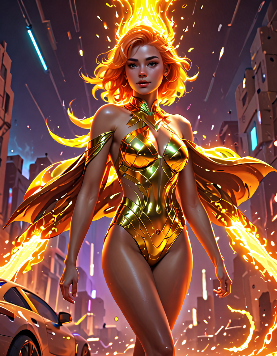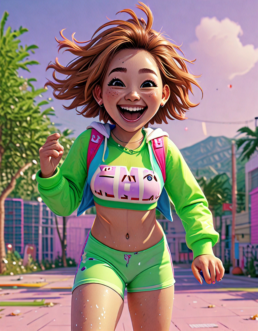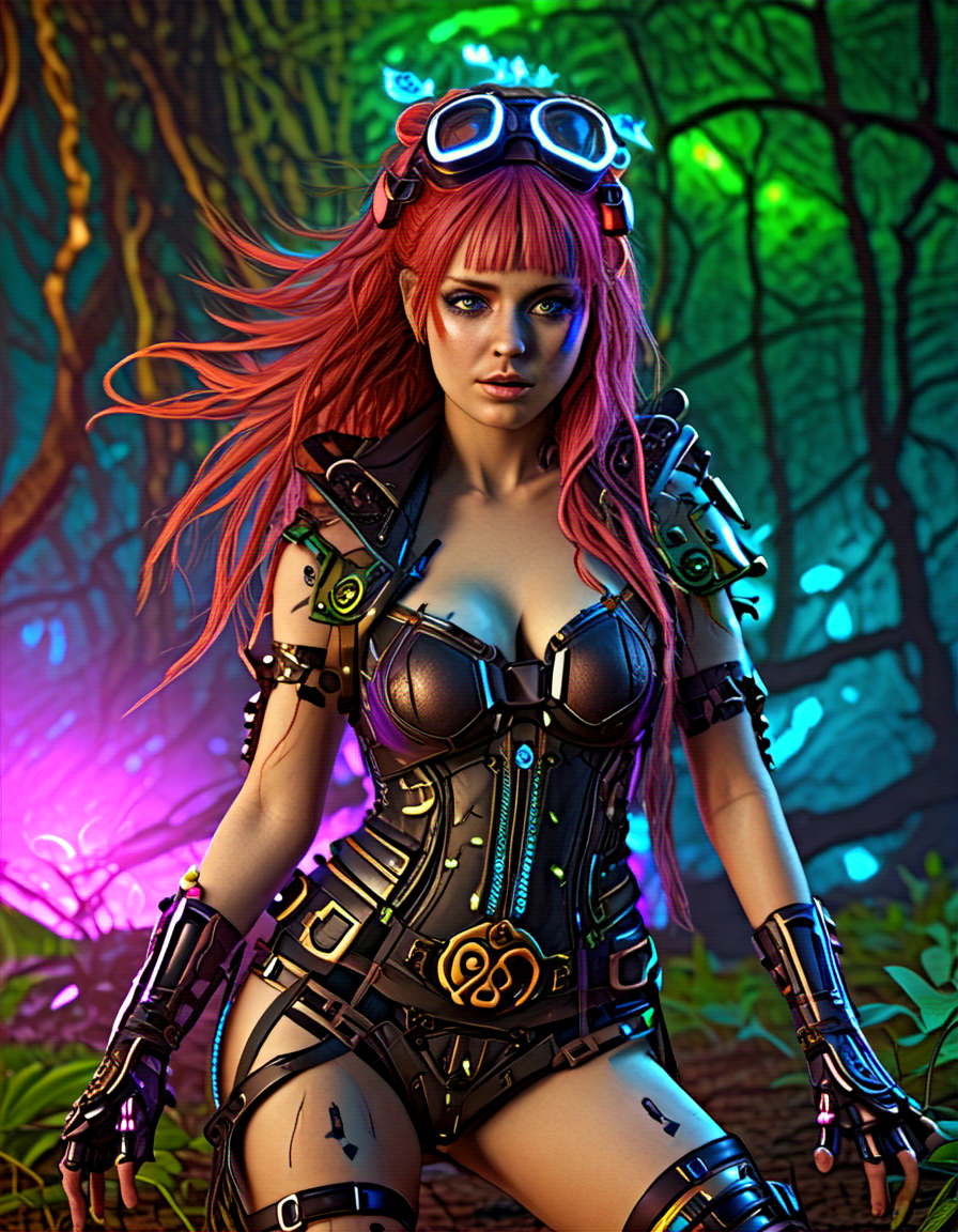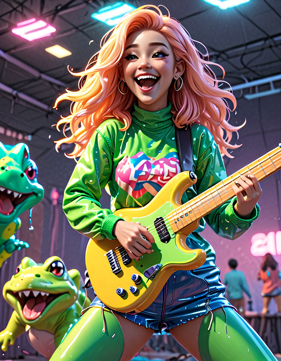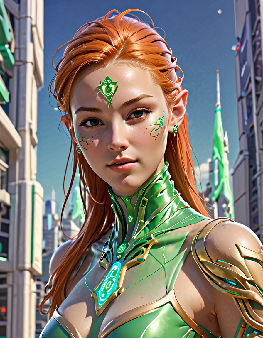 Craft an ultra-realistic, photorealistic image of an 18-year-old high school senior girl, fully immersed in the e-girl aesthetic, standing alone yet commanding the scene with an unspoken power. Her voluptuous figure is showcased through the definitive e-girl style, blending internet culture's flair with a personal touch that's bold and unapologetic. Her attire consists of an oversized long-sleeve striped shirt beneath a black graphic t-shirt dress that contours gracefully, celebrating her curves against the backdrop of e-girl fashion's layered complexity. Fishnet tights underpin the ensemble, leading down to chunky black platform boots that ground her in strength and style. Her makeup is a canvas of e-girl artistry, with dramatic winged eyeliner that stretches towards her temples in a bold statement, eyeshadow in neon hues that electrify her gaze, and dark, matte lipstick that draws all eyes to her. A generous application of blush adds life and vibrancy to her cheeks, complemented by creatively designed nails that are both dark and daring. Accessories—silver chains, a heart pendant choker, and a collection of rings—add layers of personality and depth. Her hair, possibly featuring pastel or neon streaks, is styled in a way that balances edge with elegance, with temporary tattoos or stickers adorning her face to accentuate her playful rebellion. In this moment, the young woman stands with her hands confidently on her hips, embodying the essence of e-girl individuality and assurance. This pose not only showcases her outfit and the nuances of her style but also conveys a sense of self-assuredness and ownership of her identity. Her expression can be a mix of a playful smirk and a challenging gaze, inviting viewers into her world while holding them at just the right distance. The background remains intentionally blurred, a mere suggestion of her personal space adorned with elements synonymous with the e-girl life—neon signs, band posters, and string lights—creating an ambiance that's both intimate and expressive. The lighting emphasizes the vivid colors of her makeup and the unique textures of her outfit, casting her in an ambiance that's dynamic and full of life. This visualization retains the essence of our previous description, now enhanced by a pose that speaks volumes of her confidence and the vibrant spirit of the e-girl aesthetic. It captures not just the photorealistic image of a young woman in the throes of digital age culture but also the bold statement of identity and self-expression that defines her at this significant moment in her life.