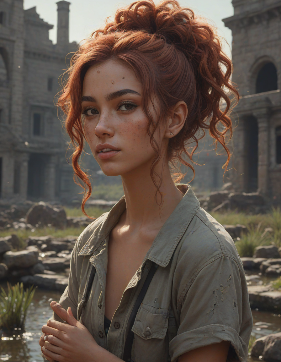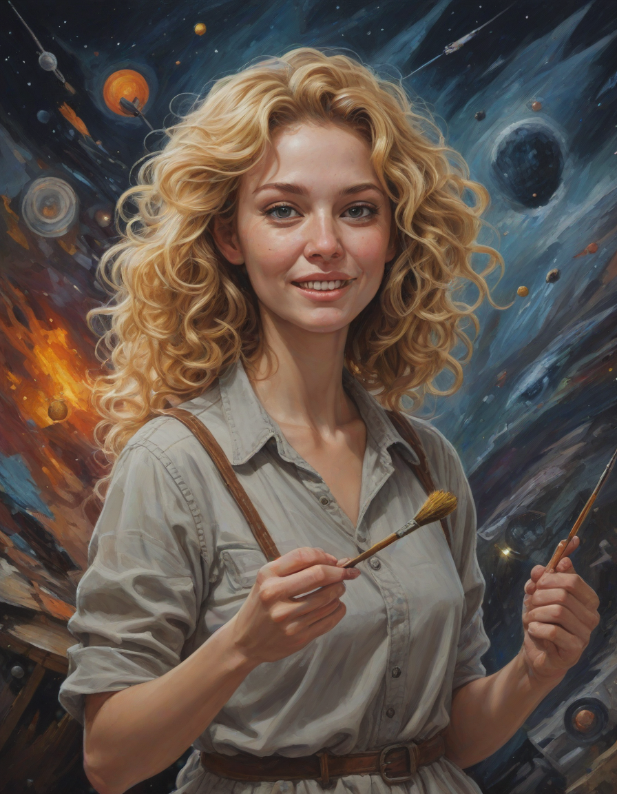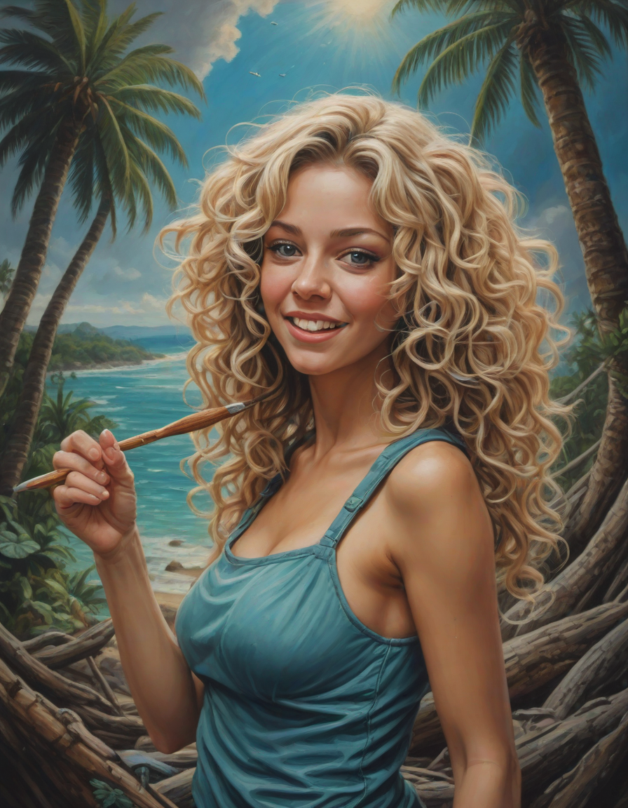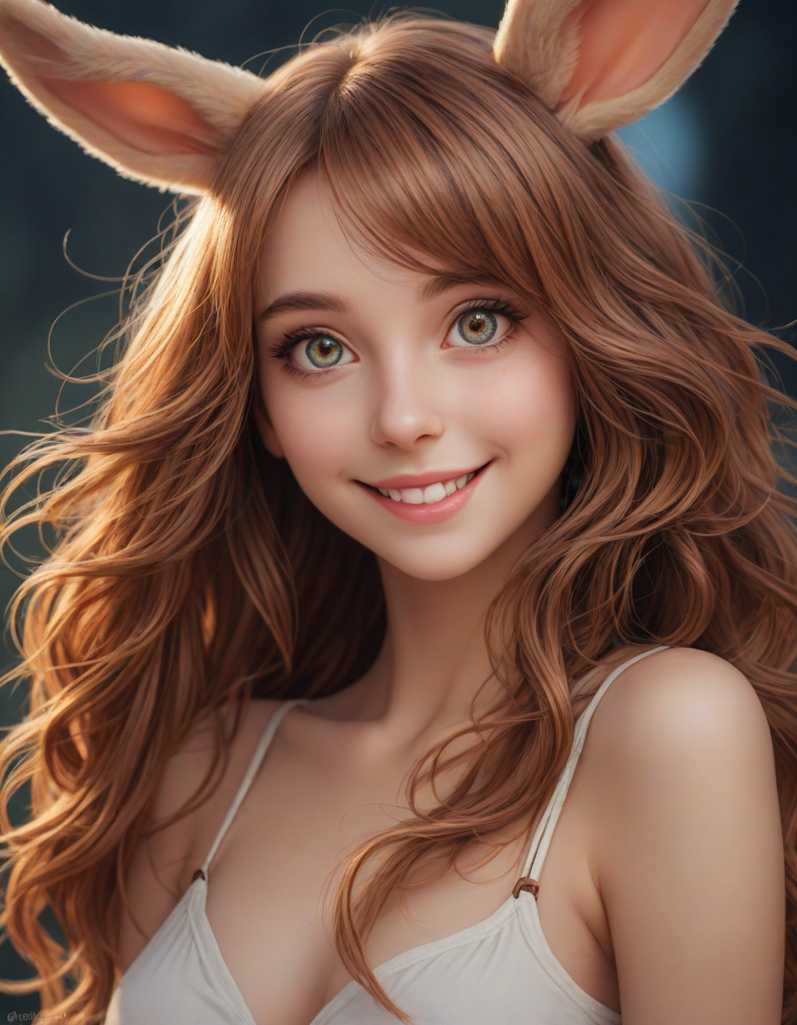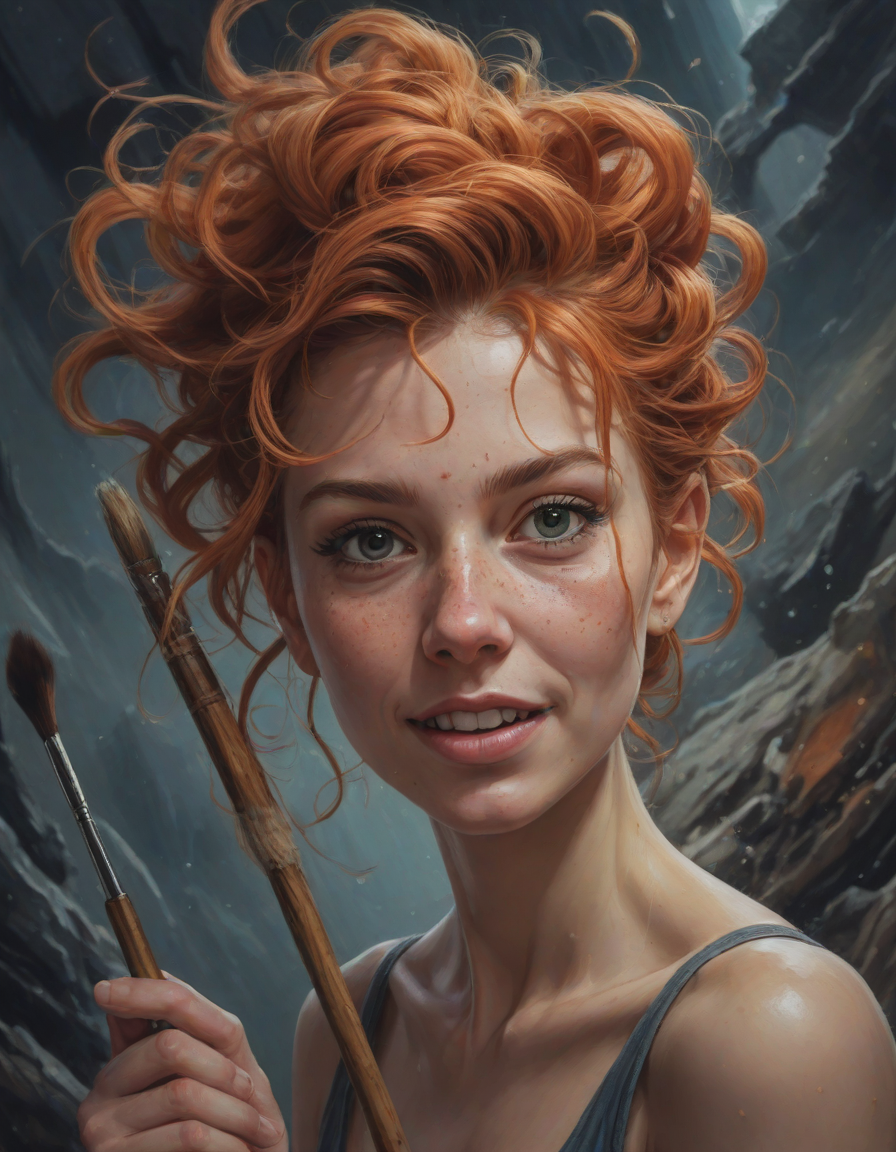 wistful gaze, curly hair, Smug... (6 loras merged)