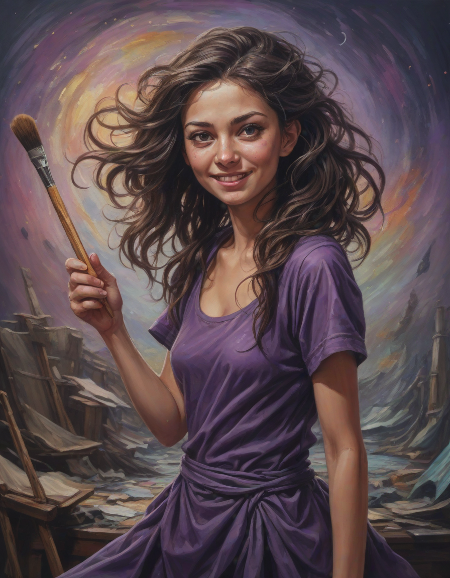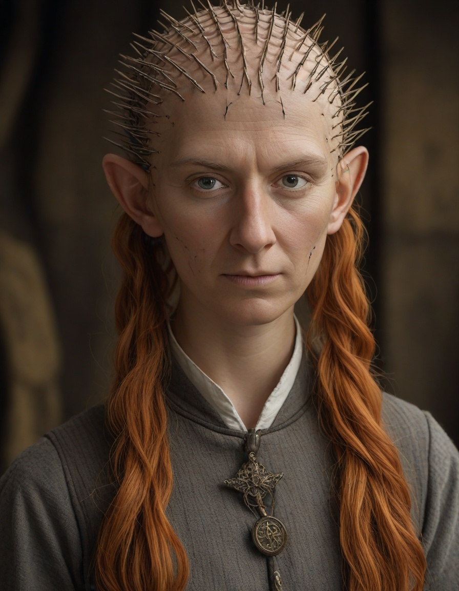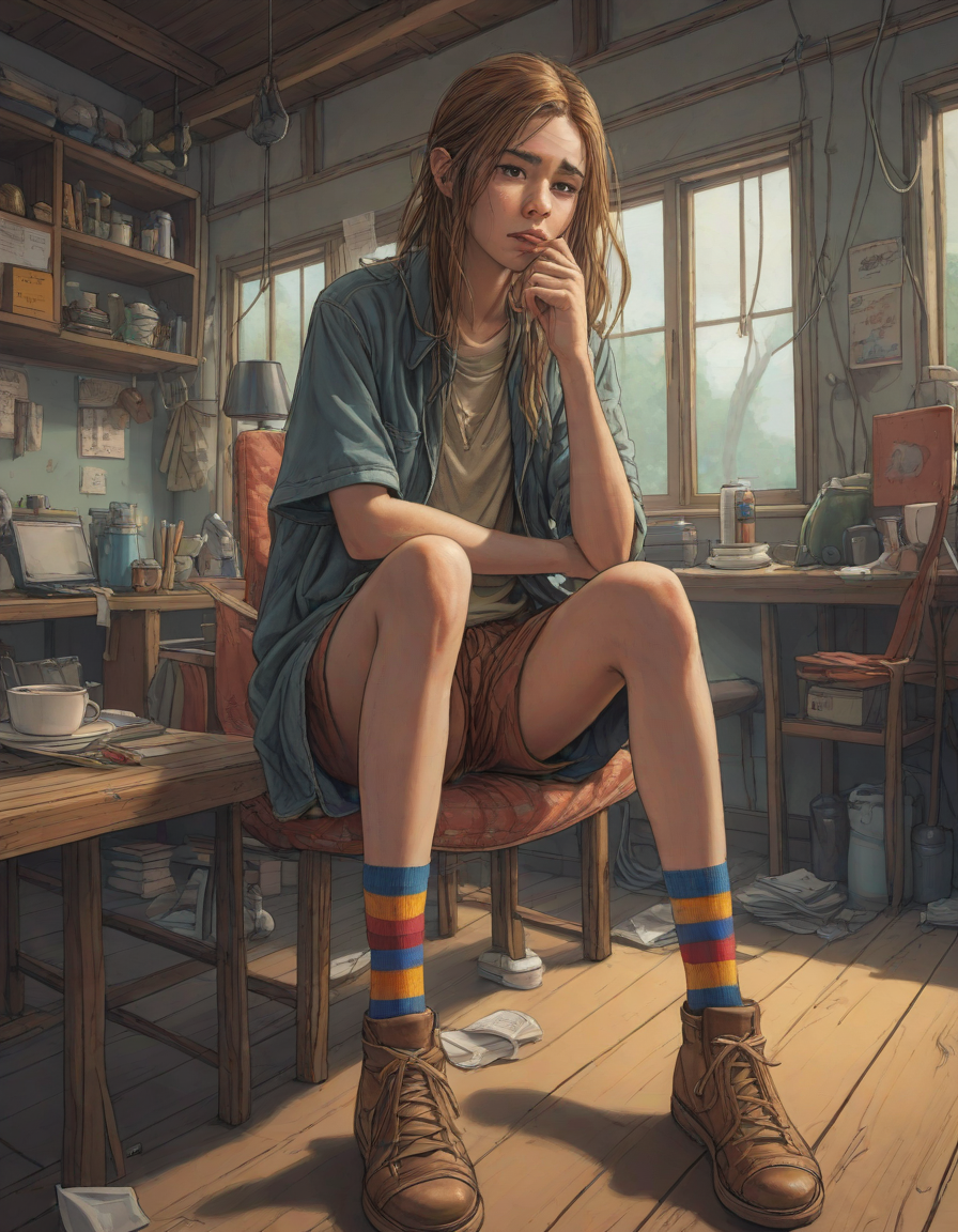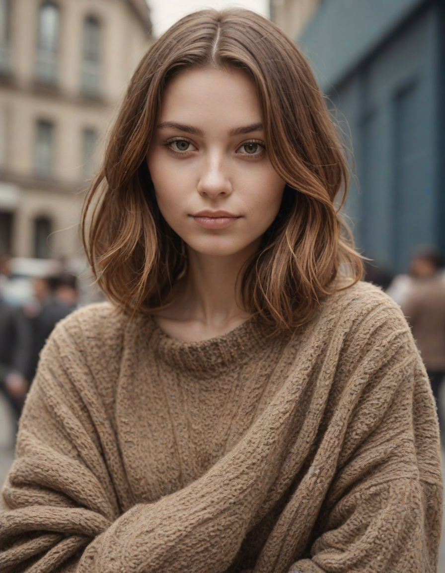 wistful gaze, curly hair, Smug... (6 loras merged)