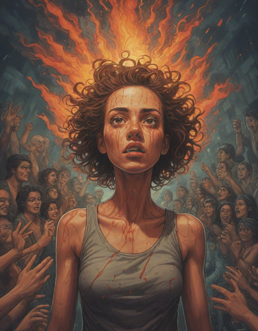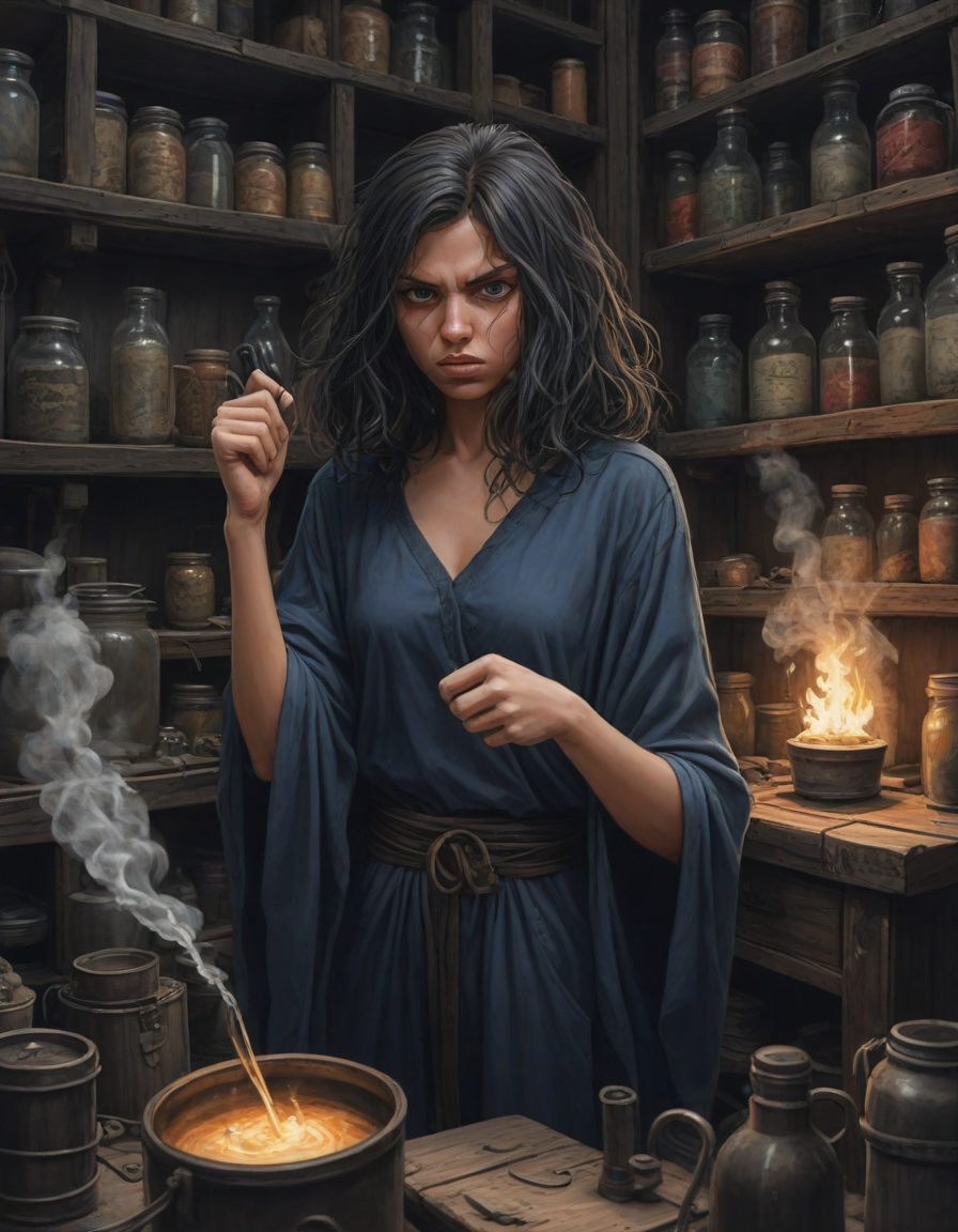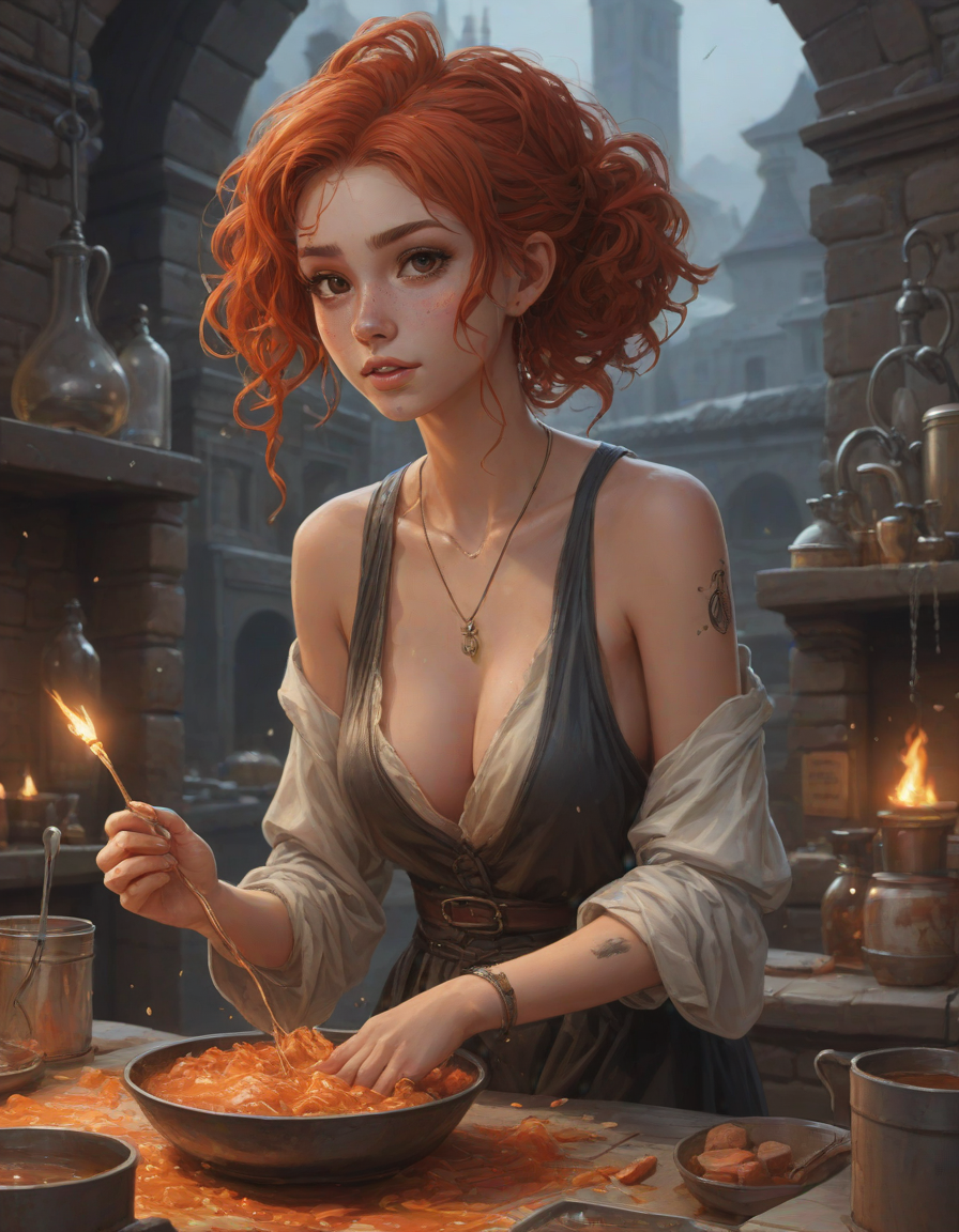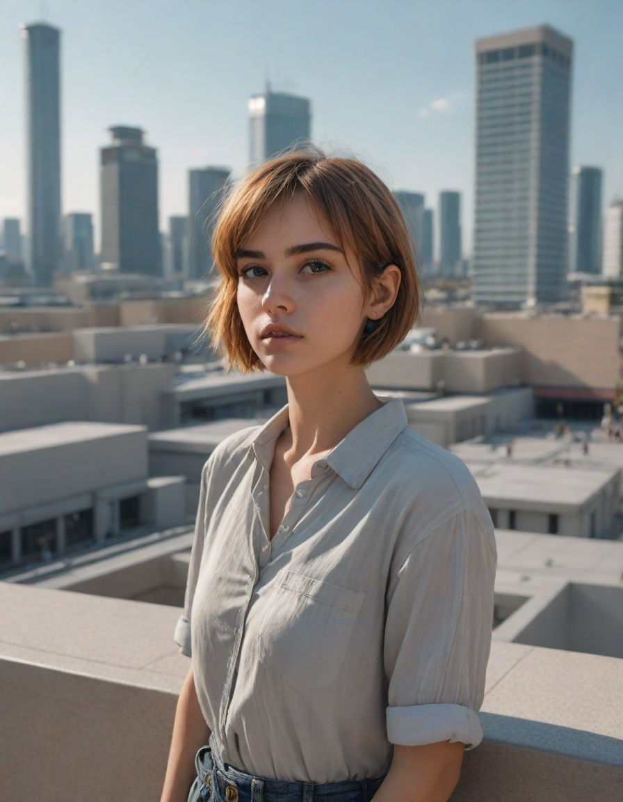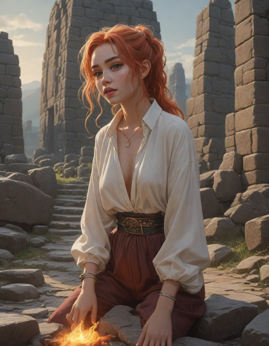 wistful gaze, curly hair, Smug... (6 loras merged)