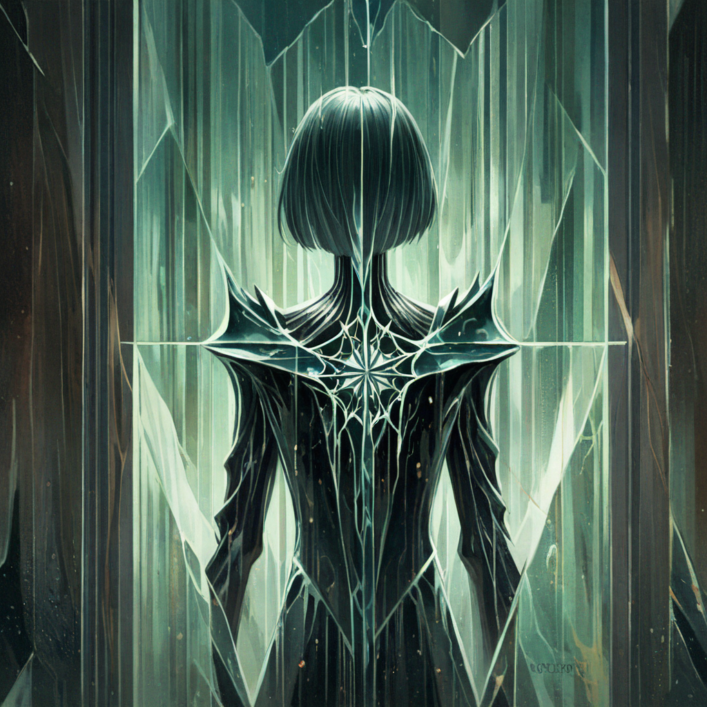 Smooth, unbroken, cohesive→Shattered glass, fragmented, kaleidoscopic