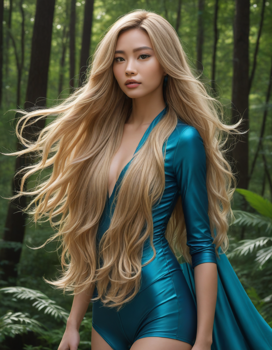 short, buzz-cut hair → long, flowing, wavy locks