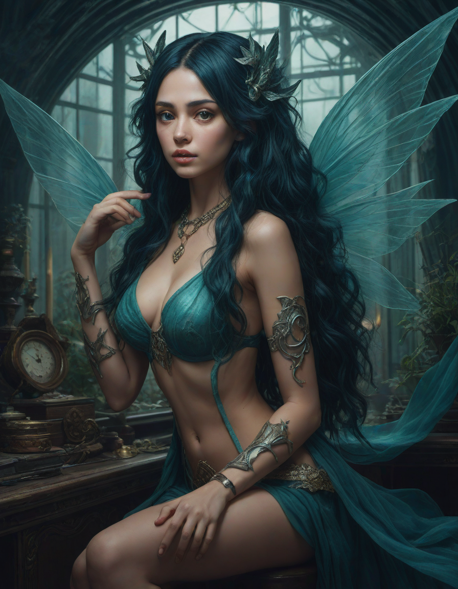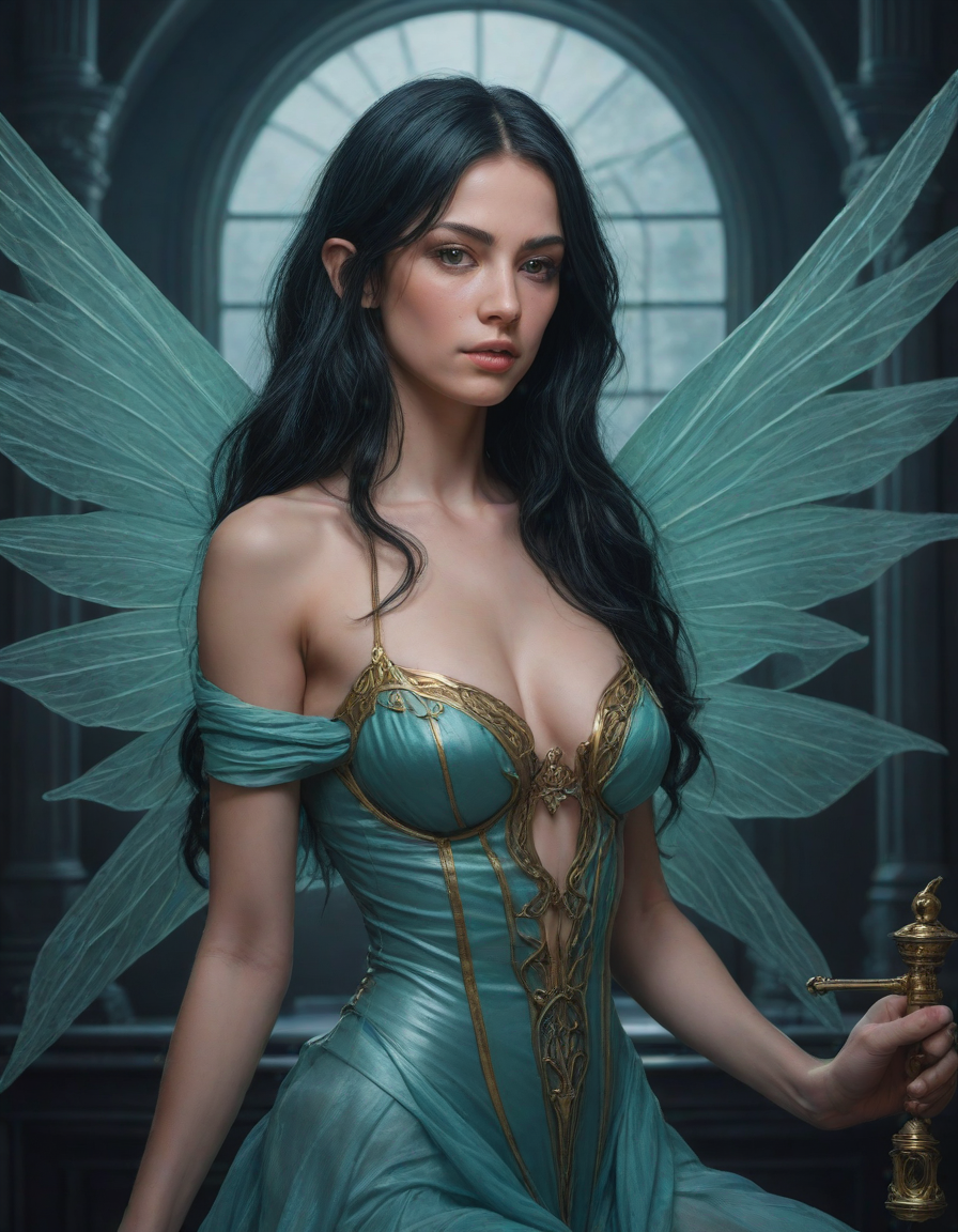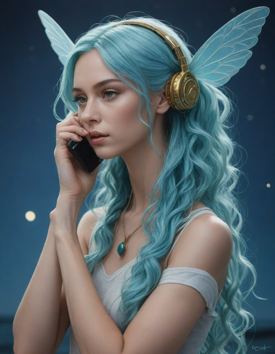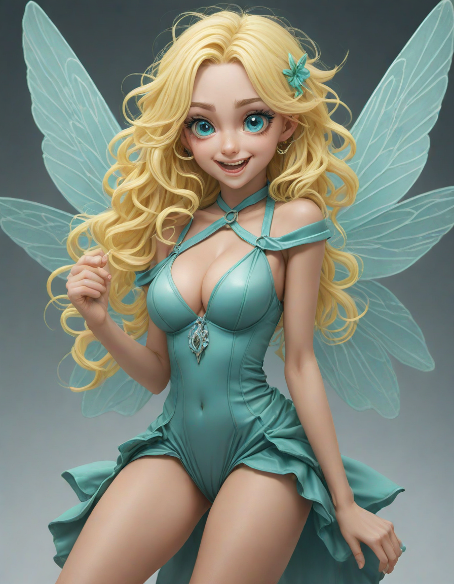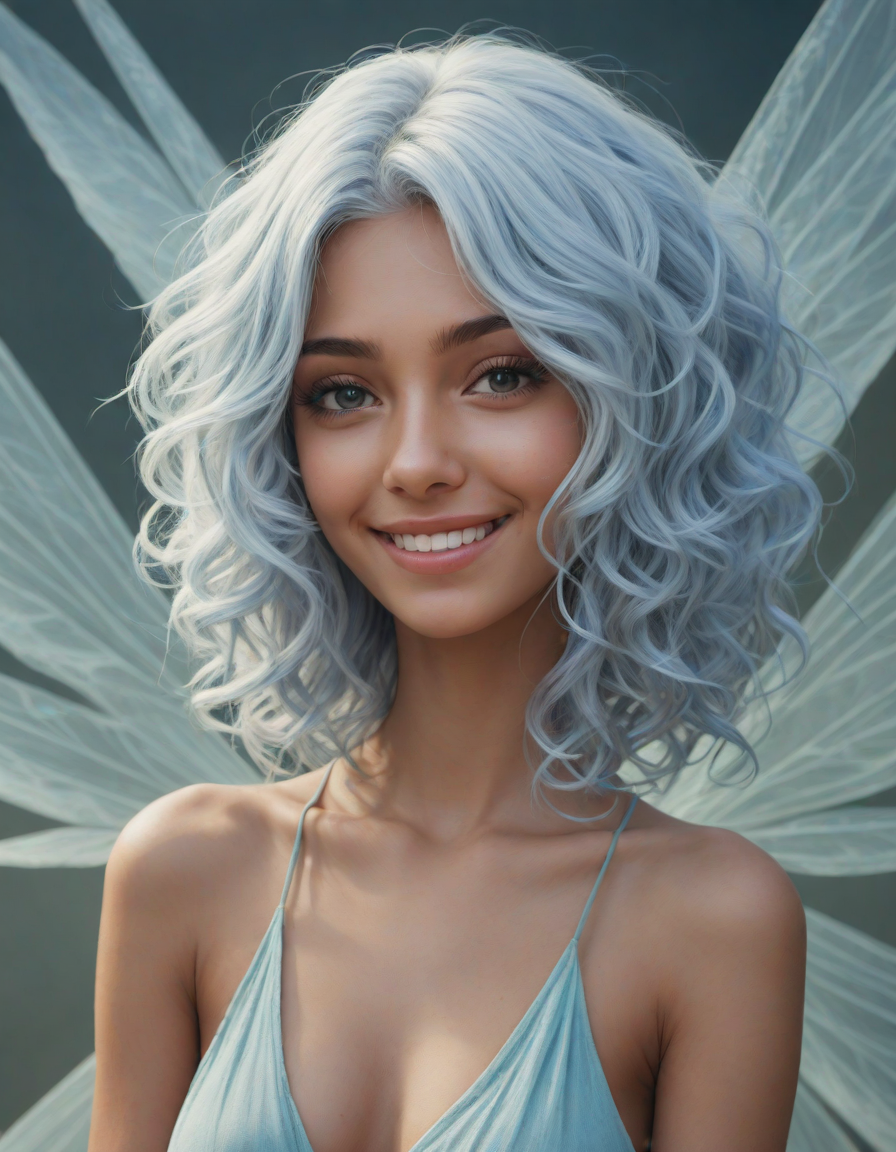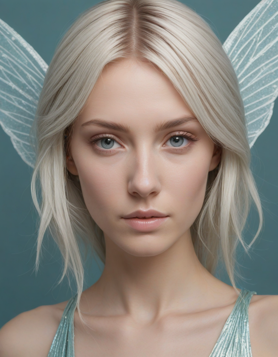 a radiant, aquamarine-haired fairy flitting about on delicate, translucent wings