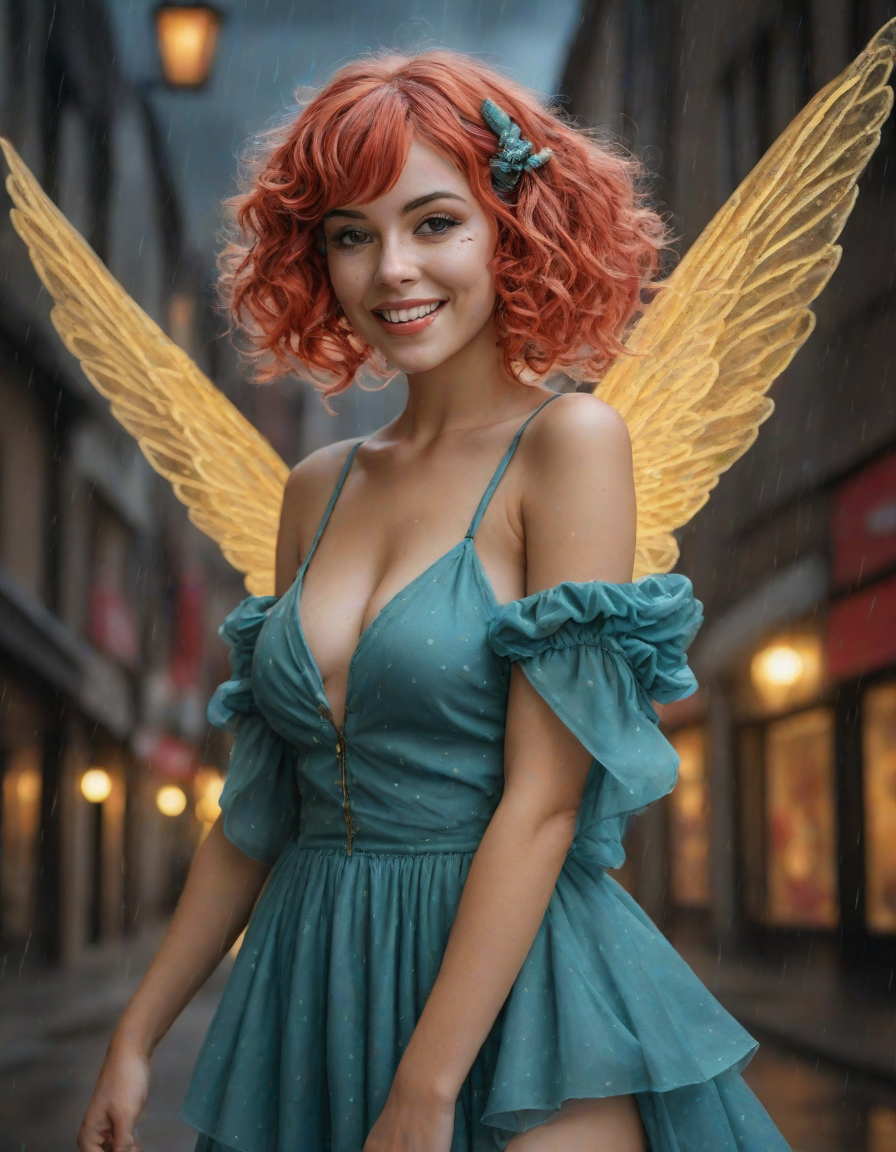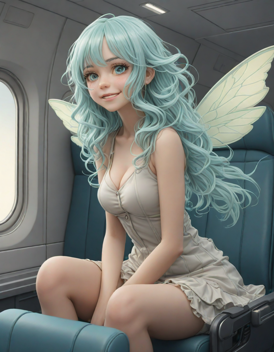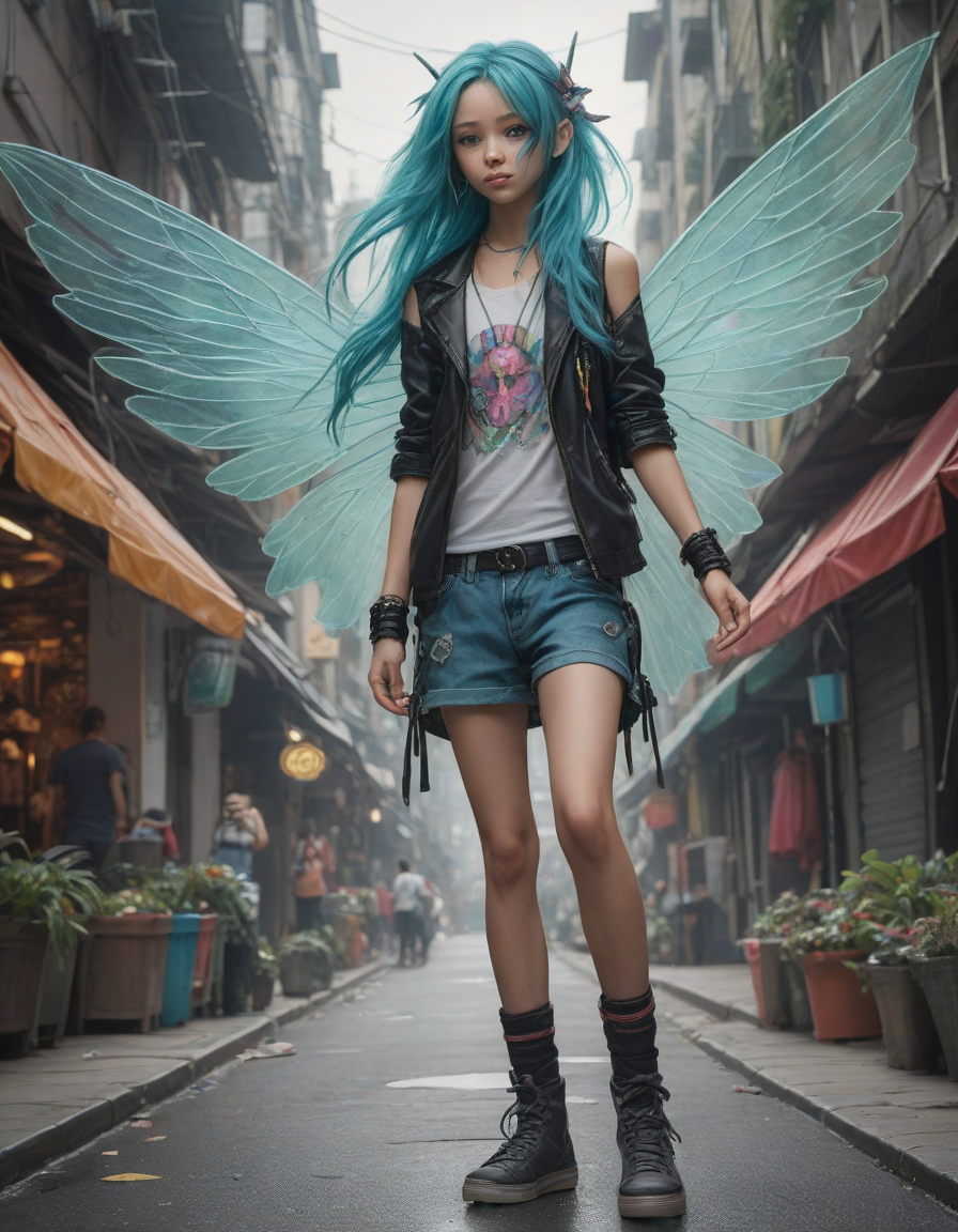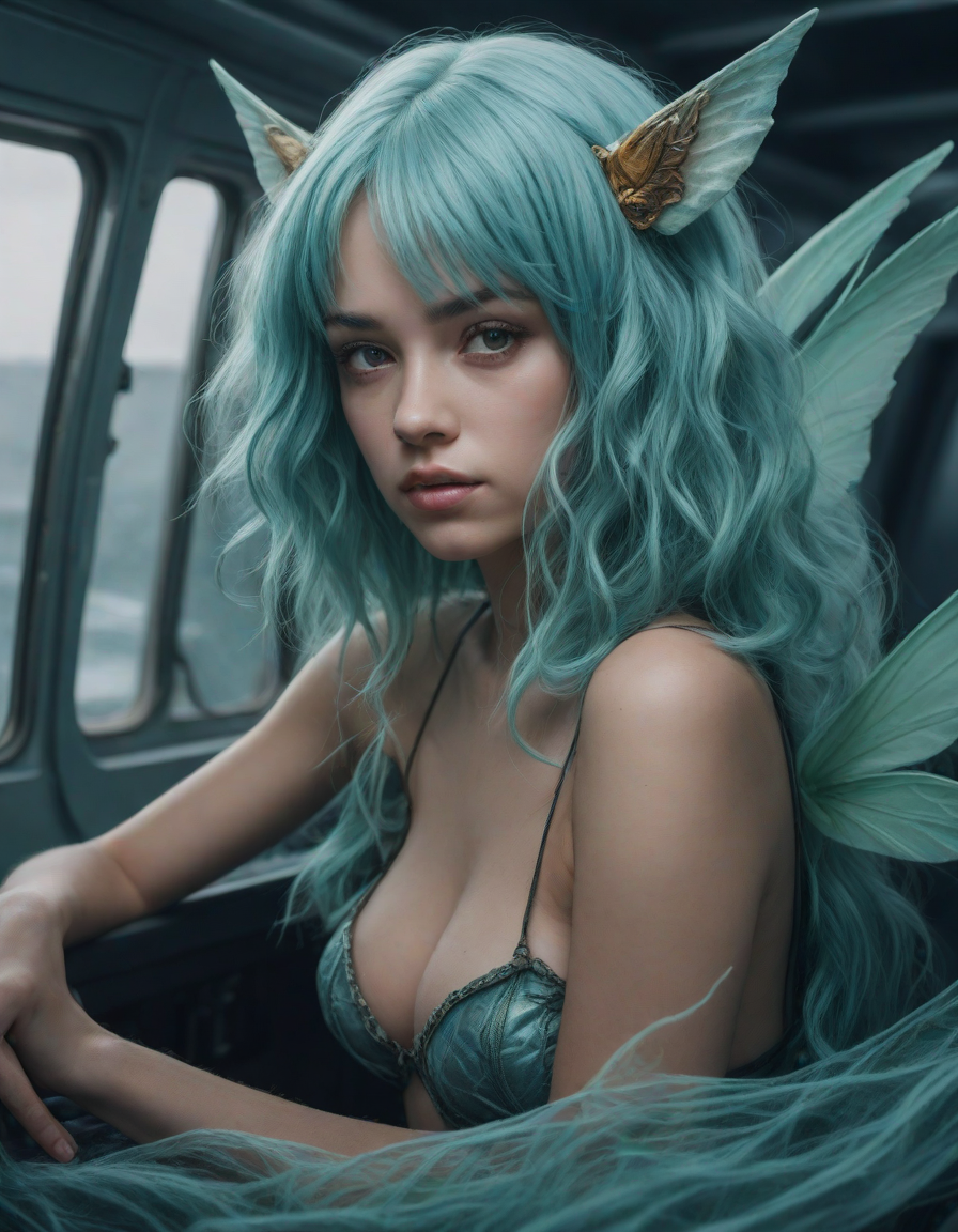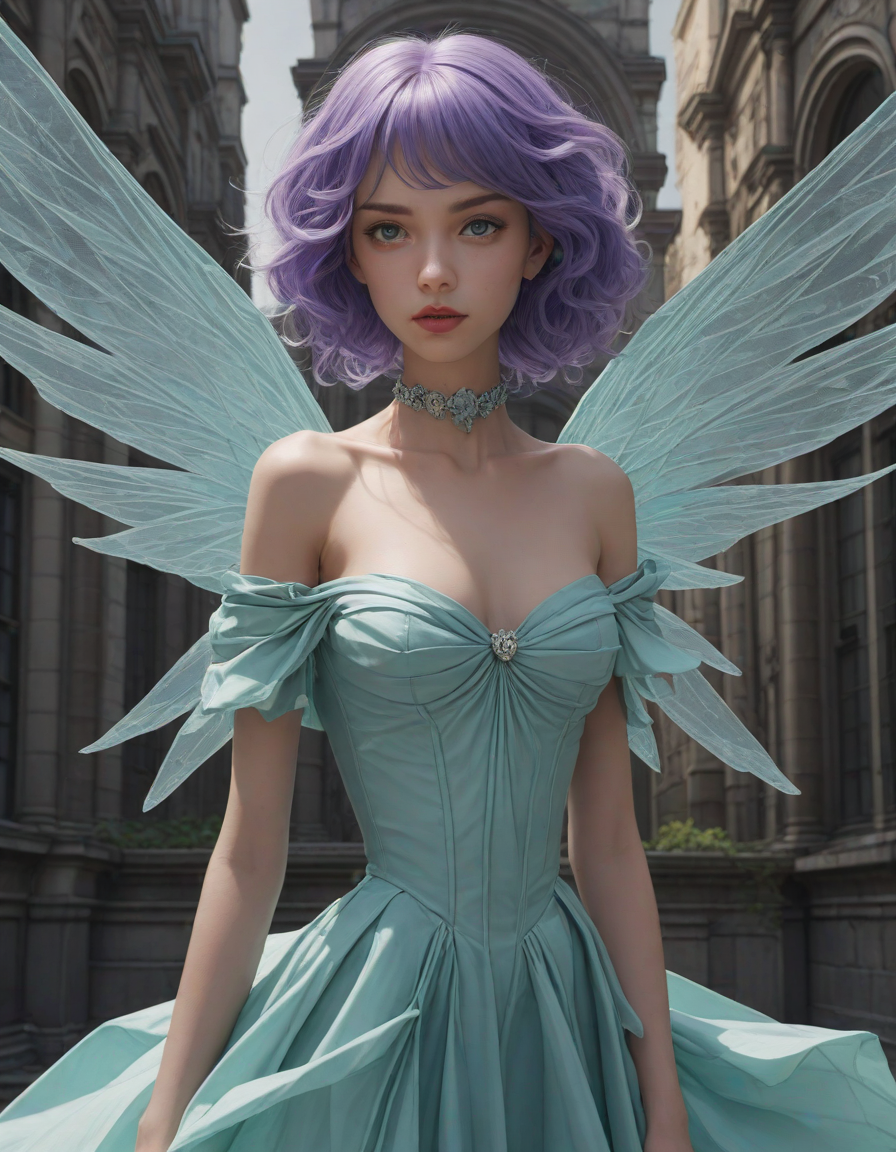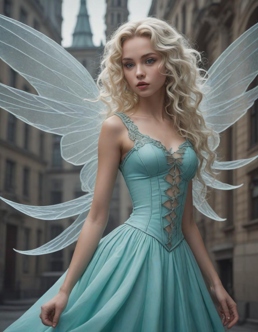 a radiant, aquamarine-haired fairy flitting about on delicate, translucent wings