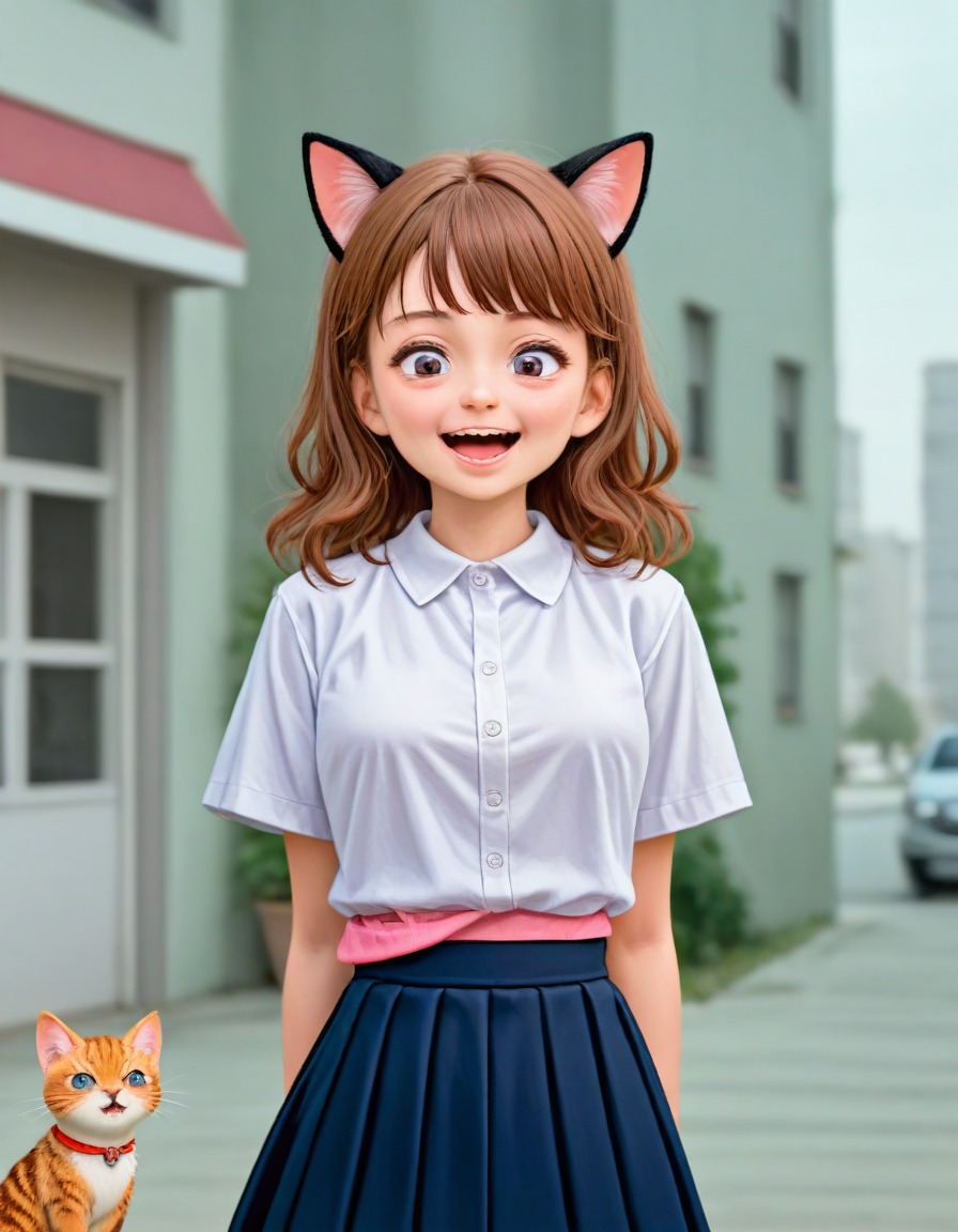 shirt, skirt, open mouth, HD ... (4 doras merged)