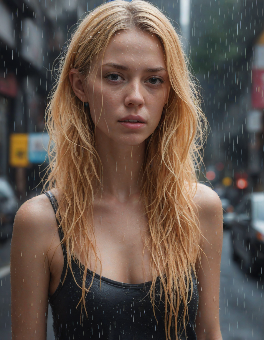 in a kitchen, Rain-streaked pa... (14 loras merged)