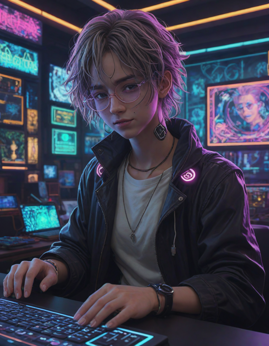 cyberpunk hacker, surrounded b... (3 loras merged)