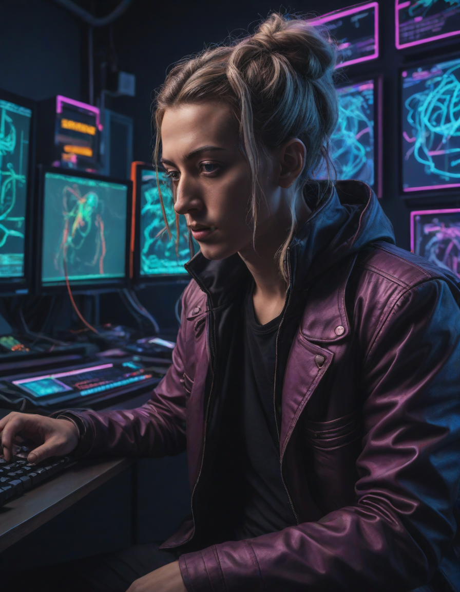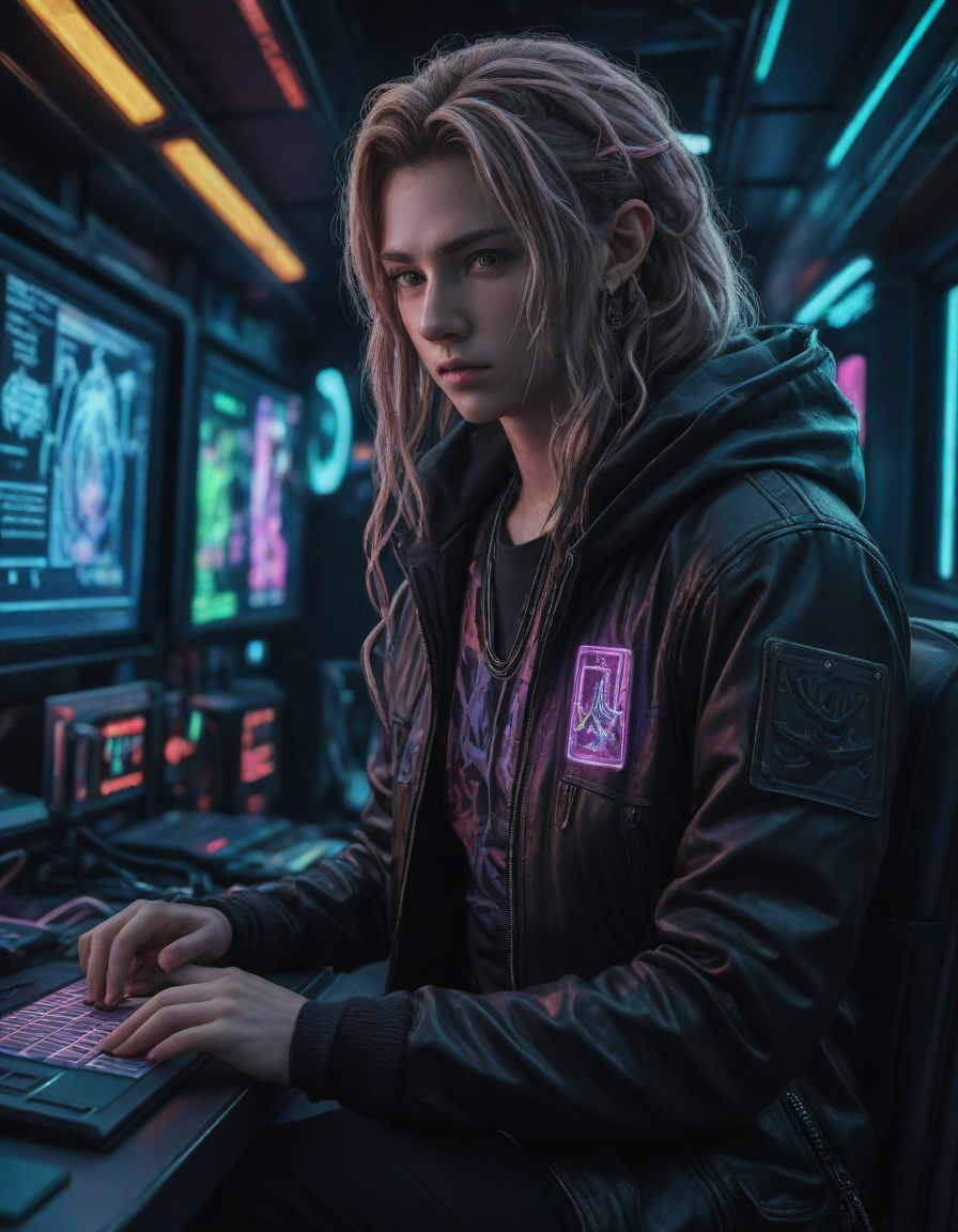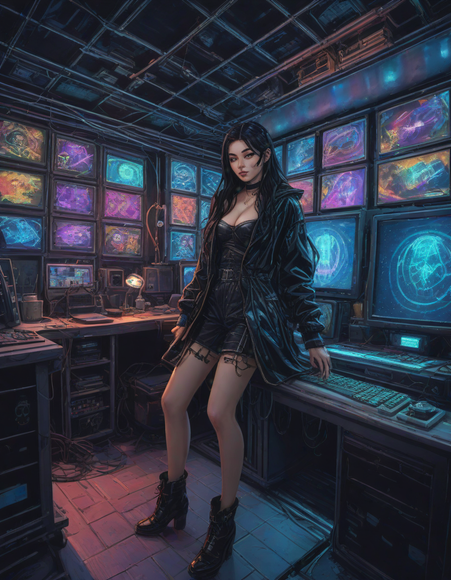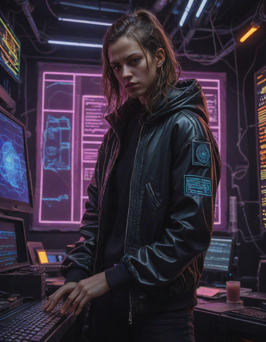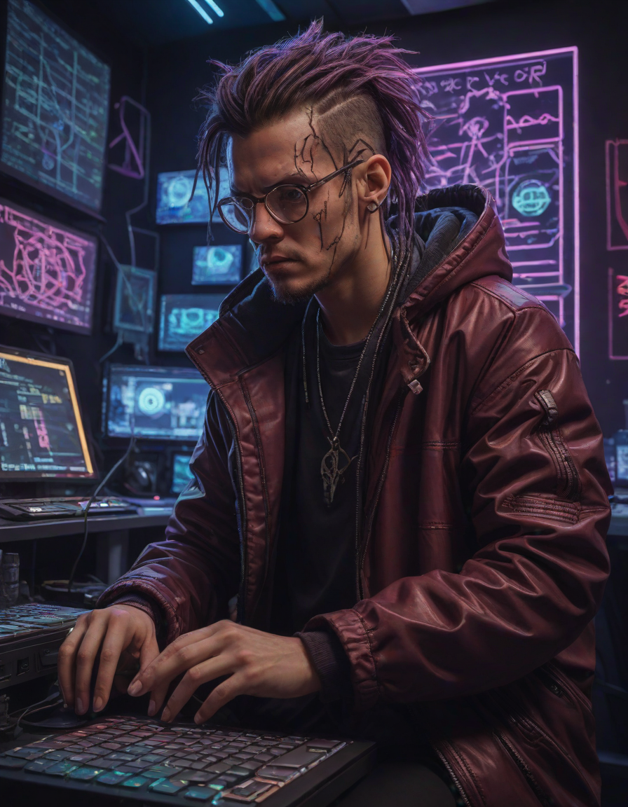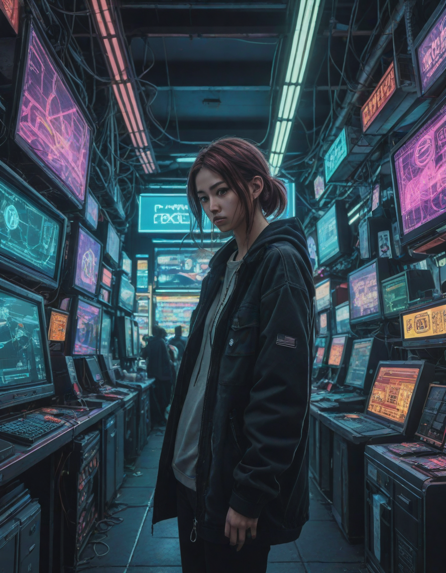 cyberpunk hacker, surrounded b... (10 loras merged)