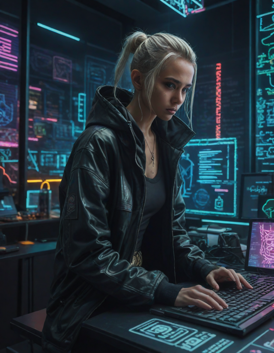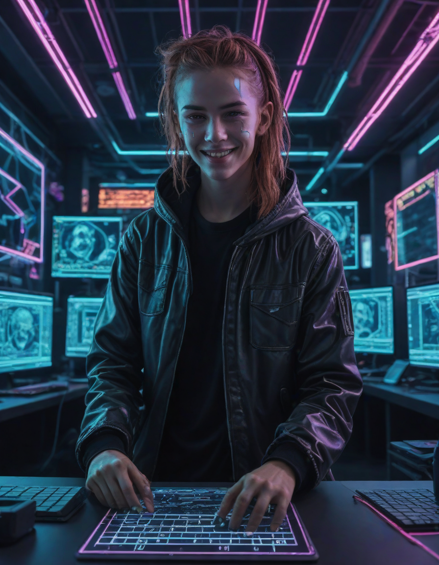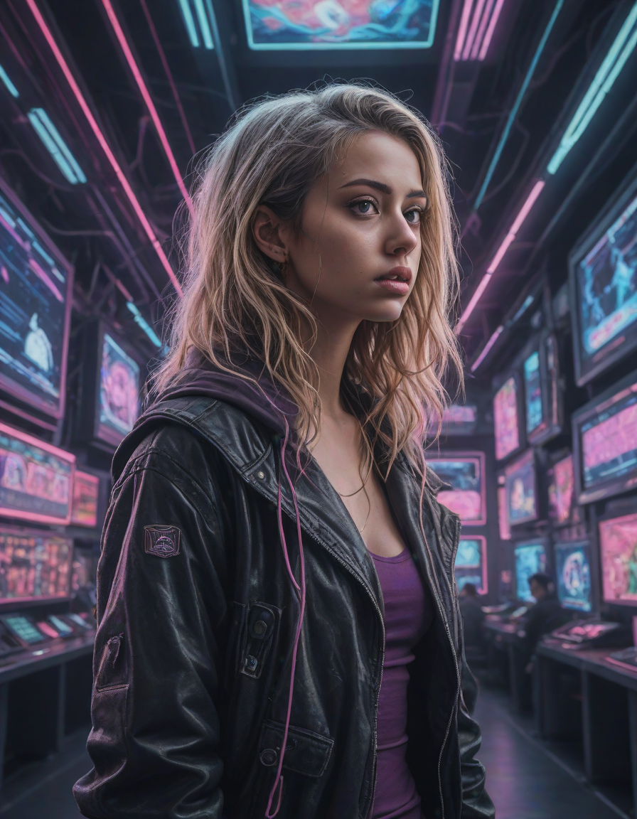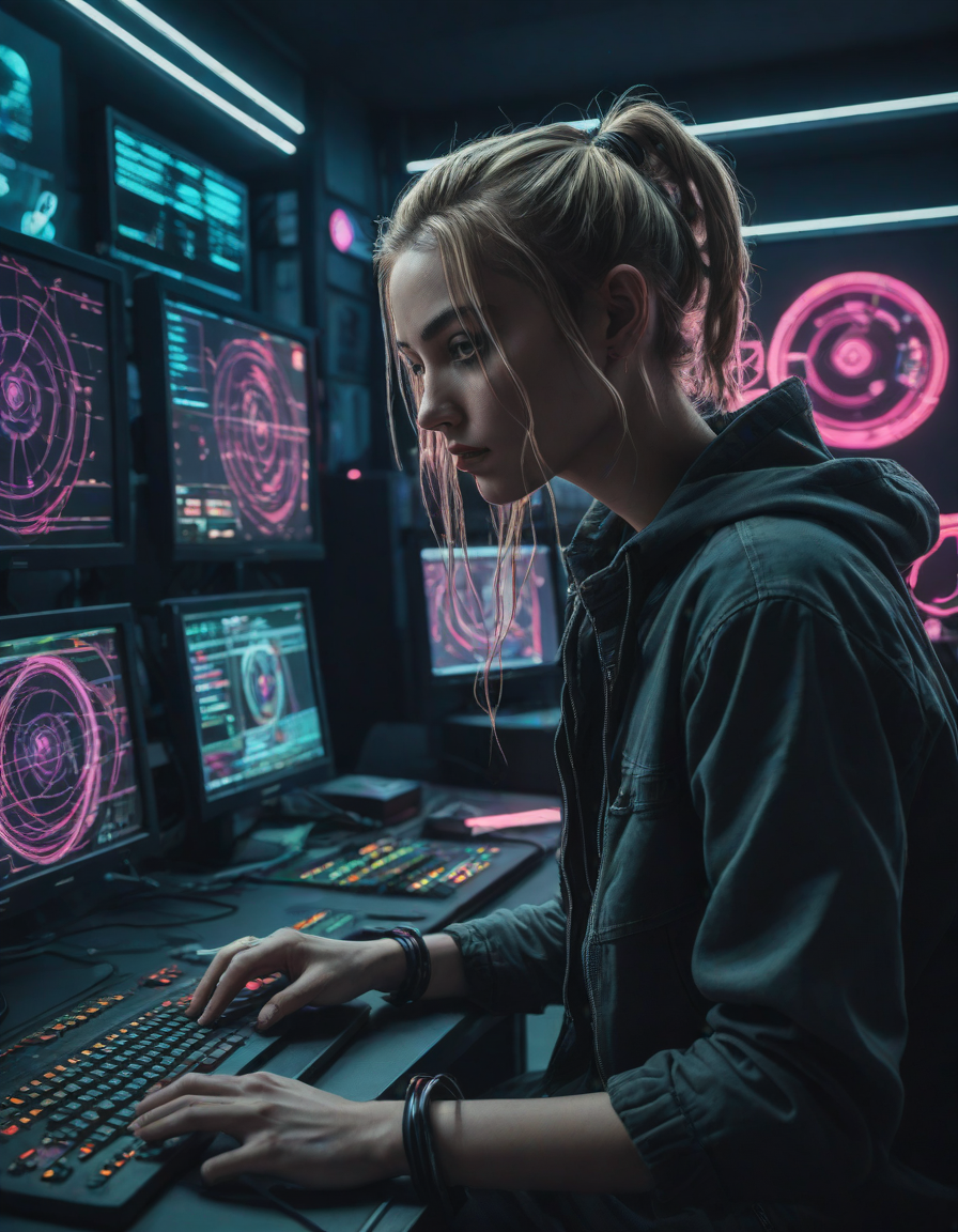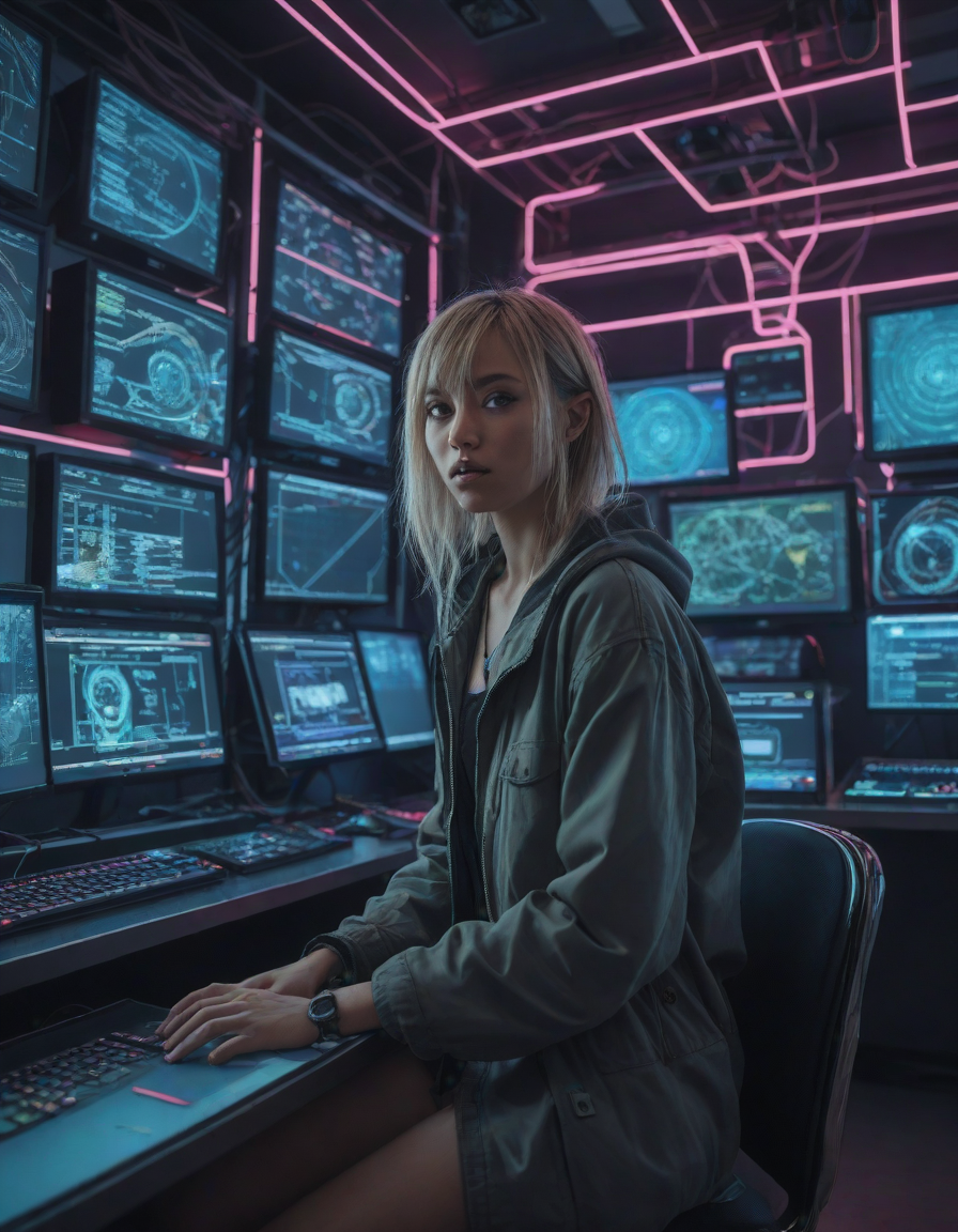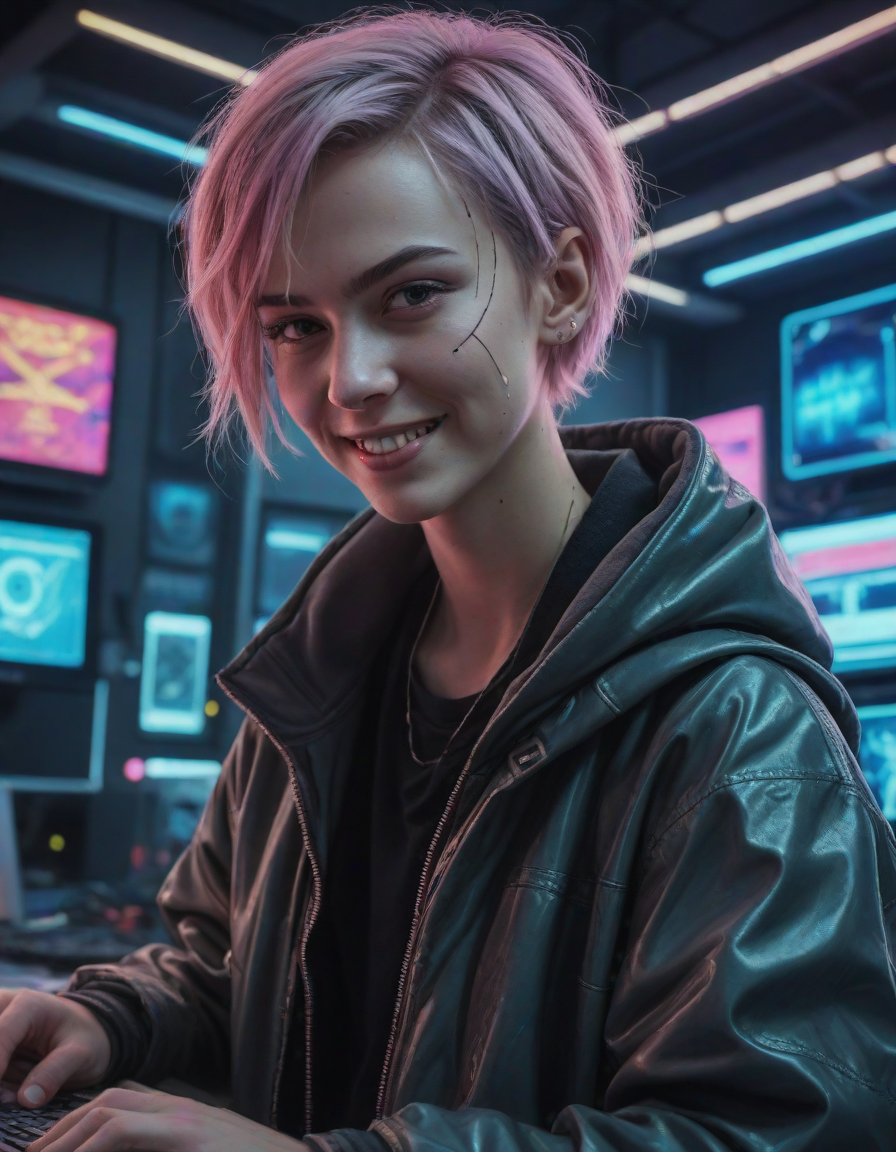 cyberpunk hacker, surrounded b... (10 loras merged)