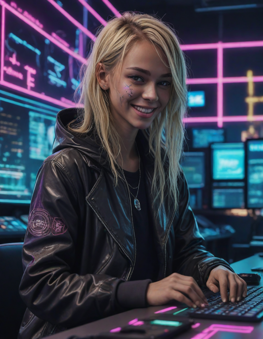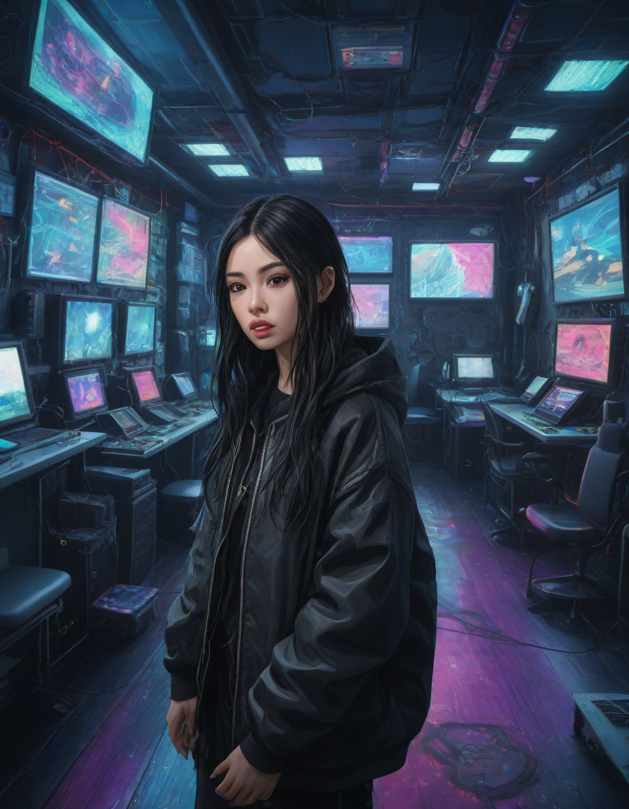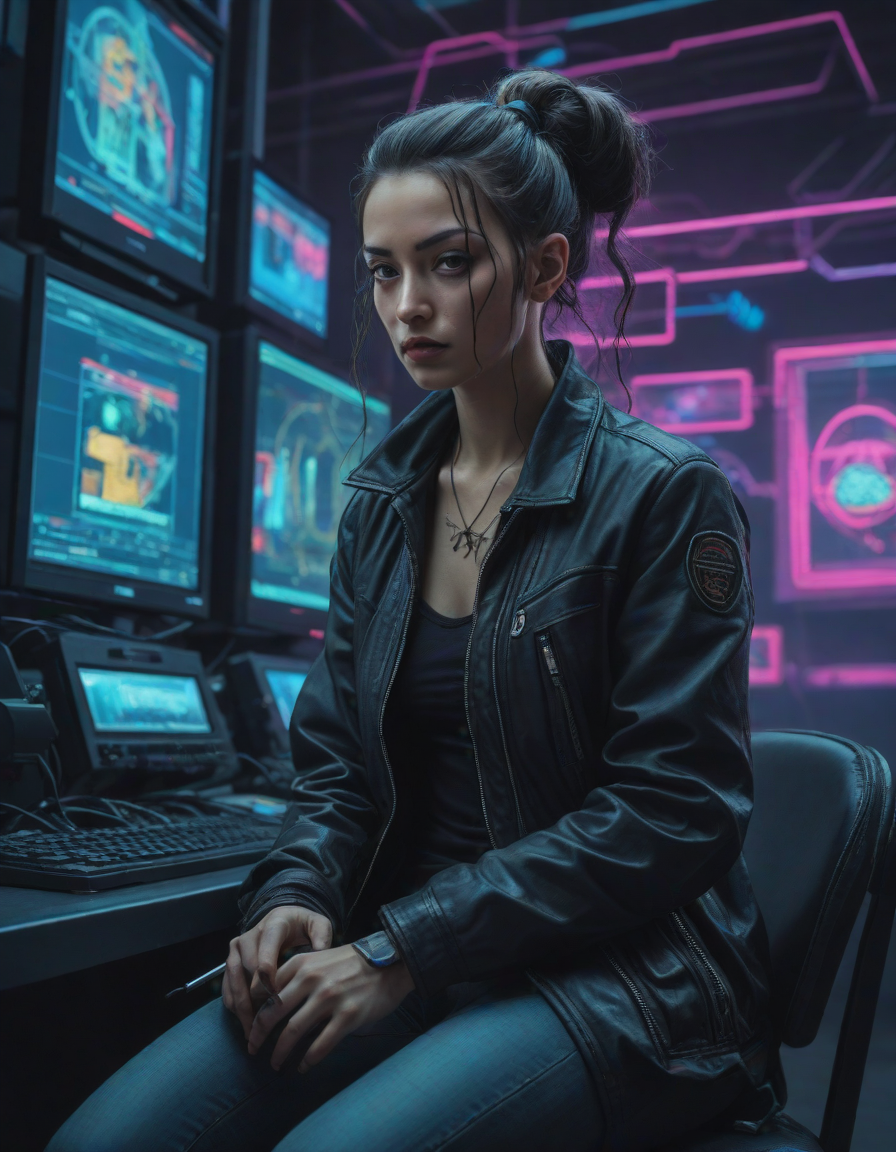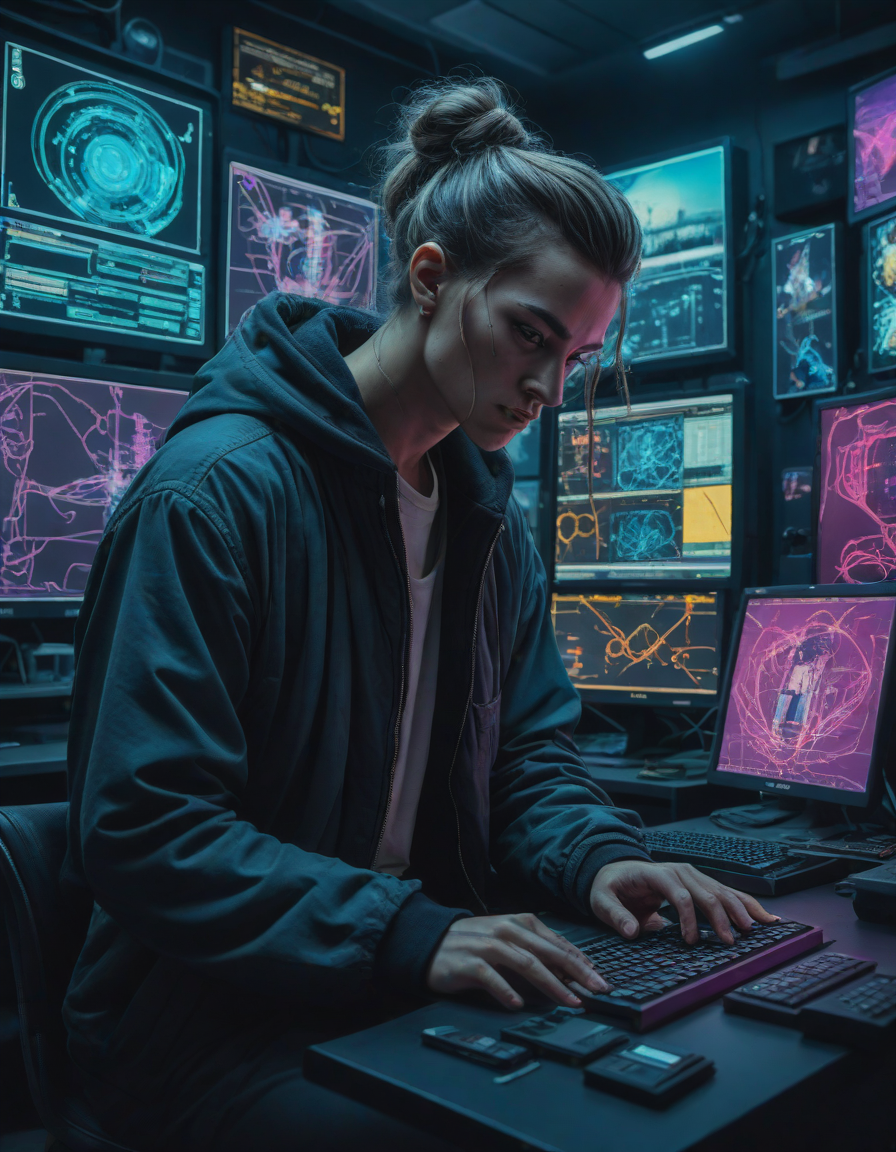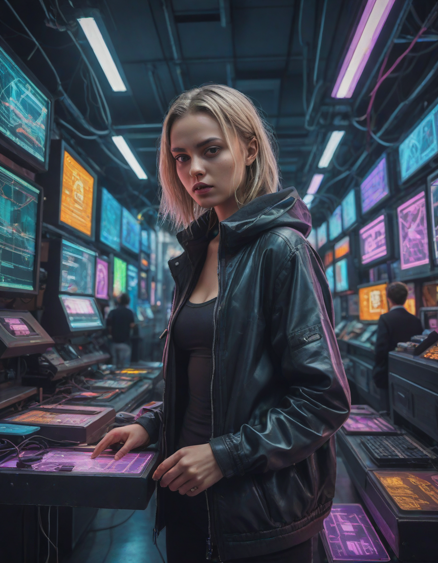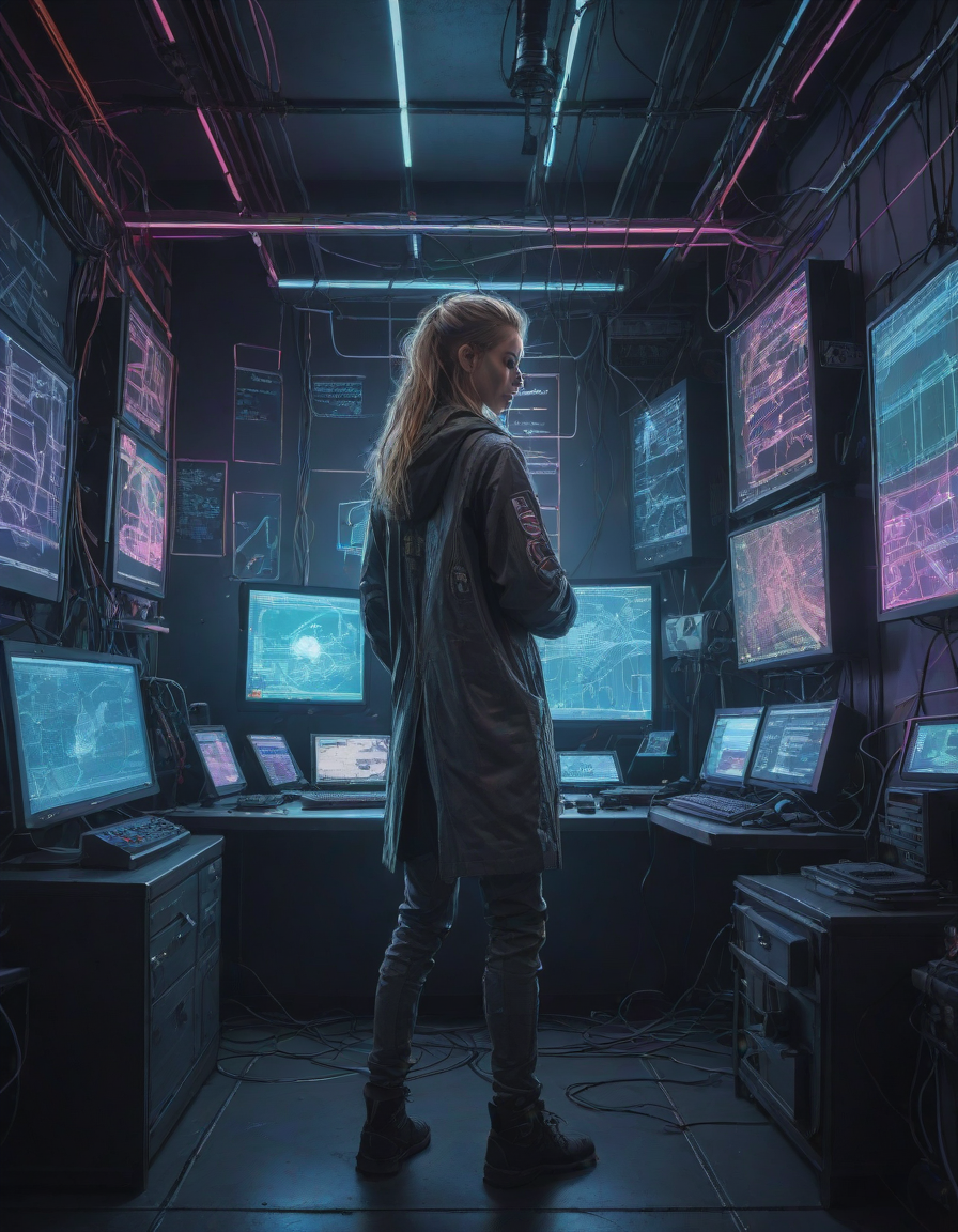 cyberpunk hacker, surrounded b... (10 loras merged)
