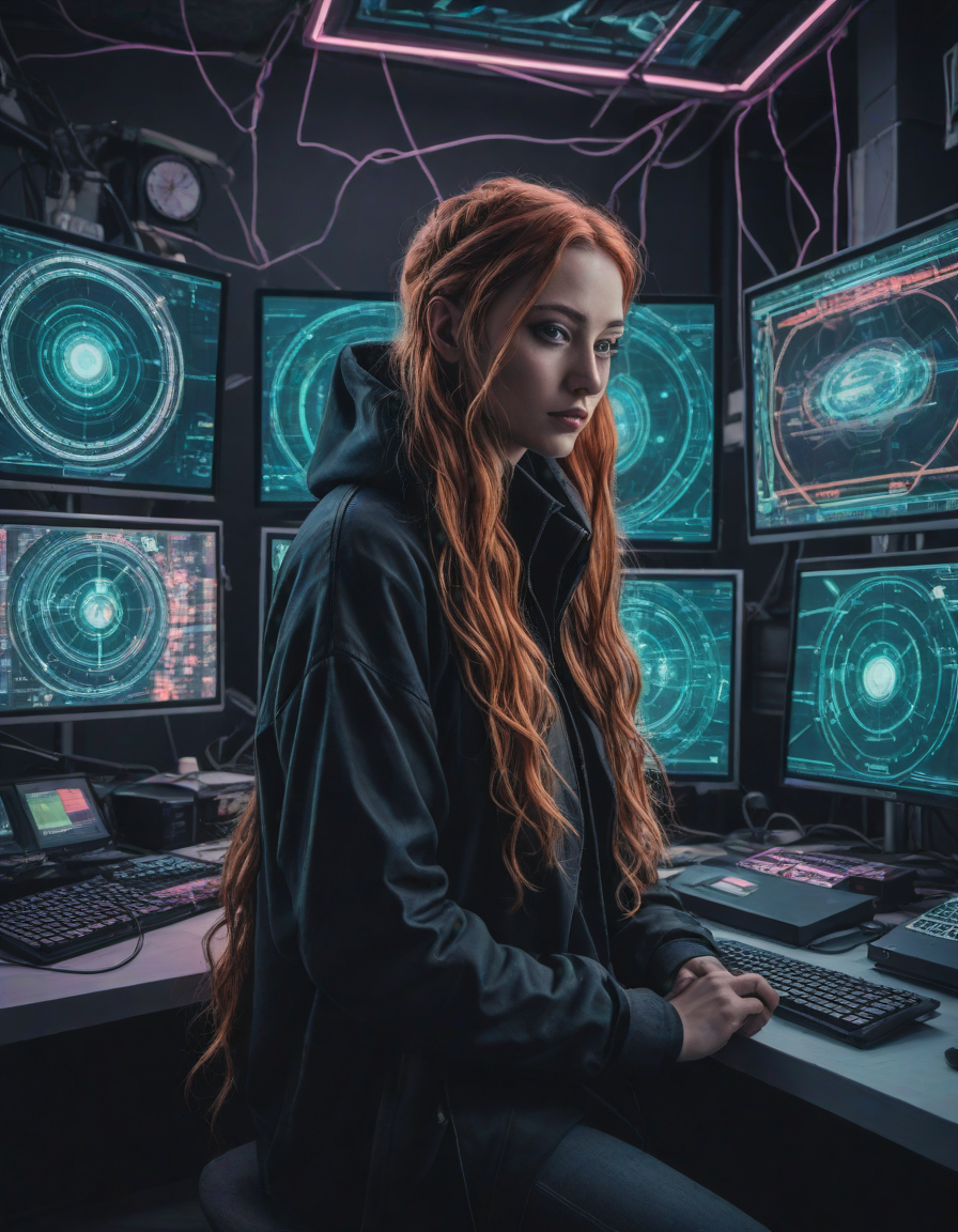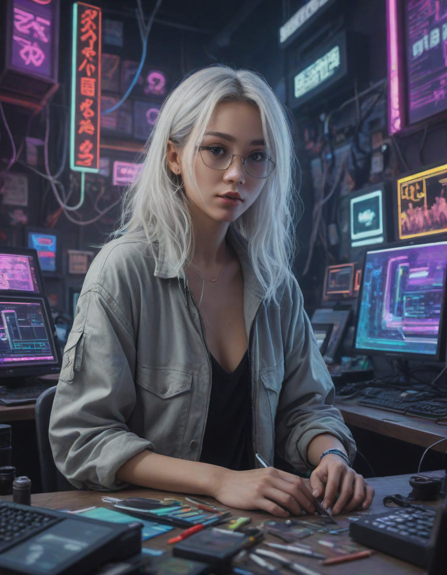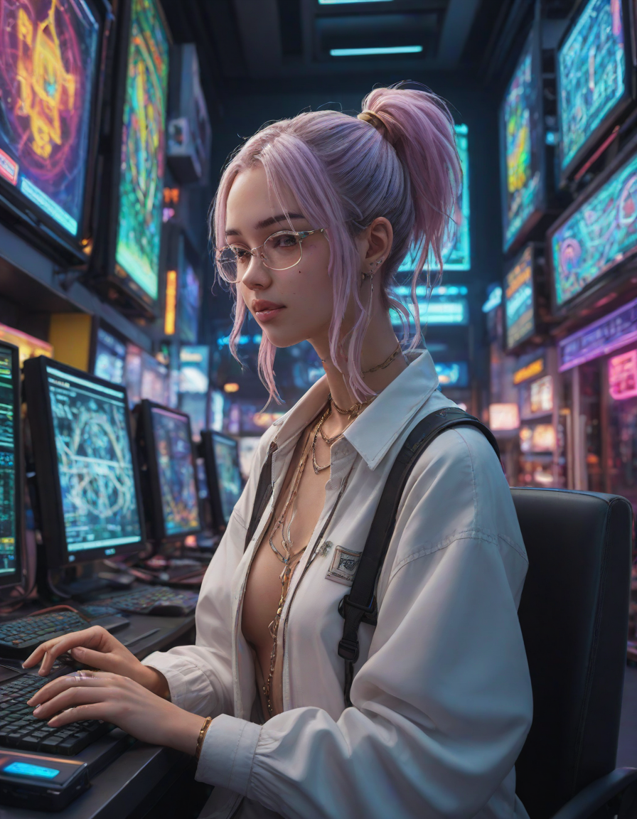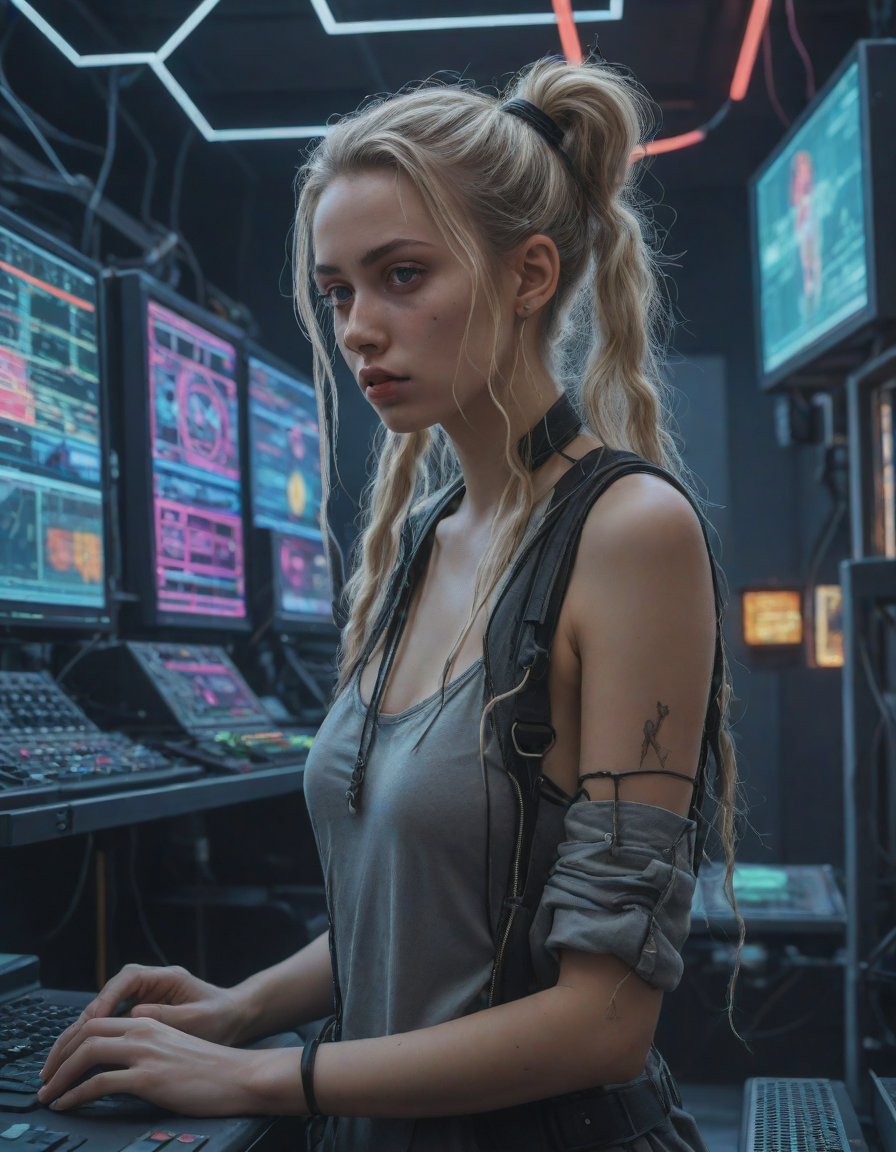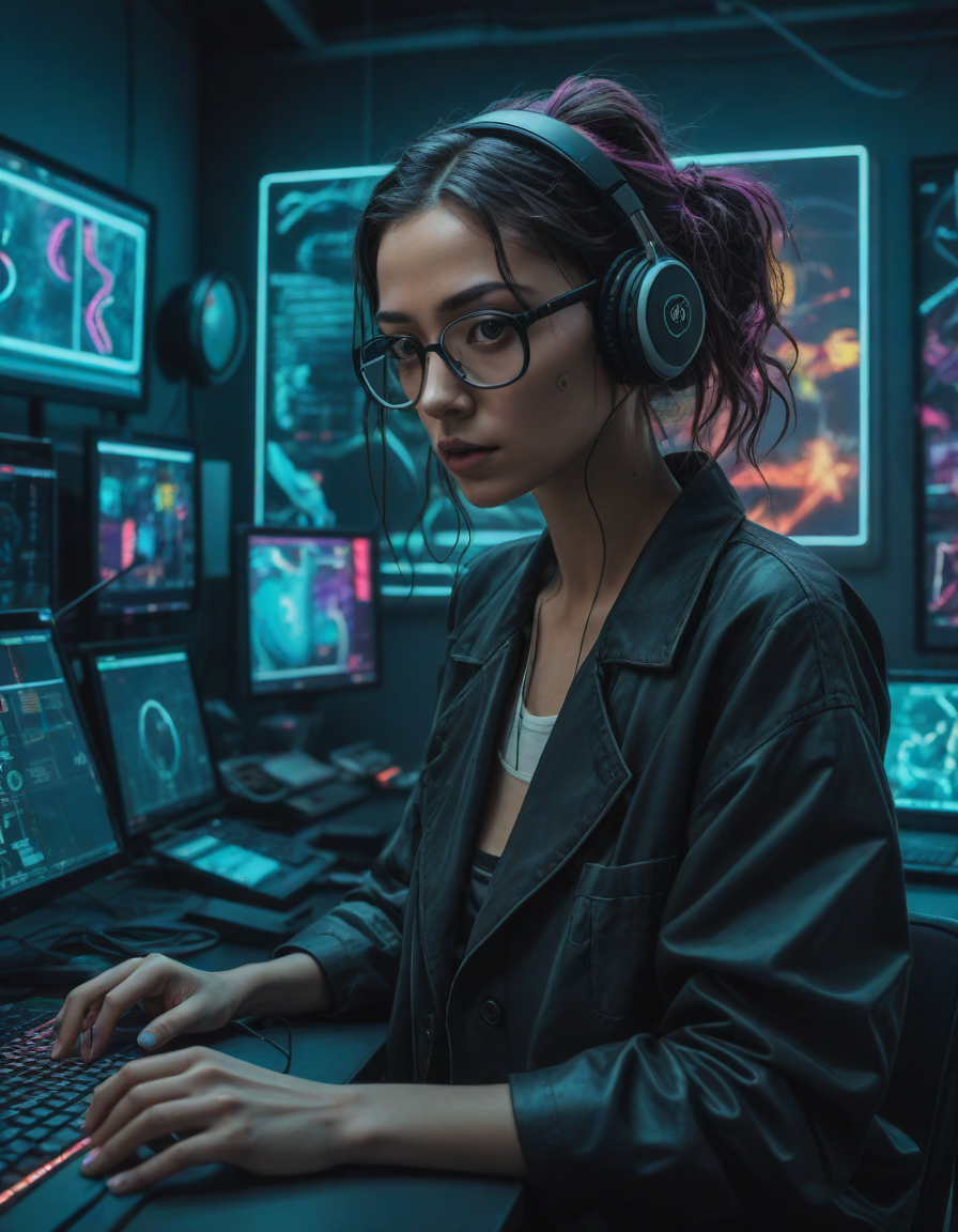 cyberpunk hacker, surrounded b... (10 loras merged)