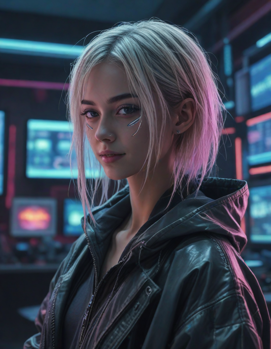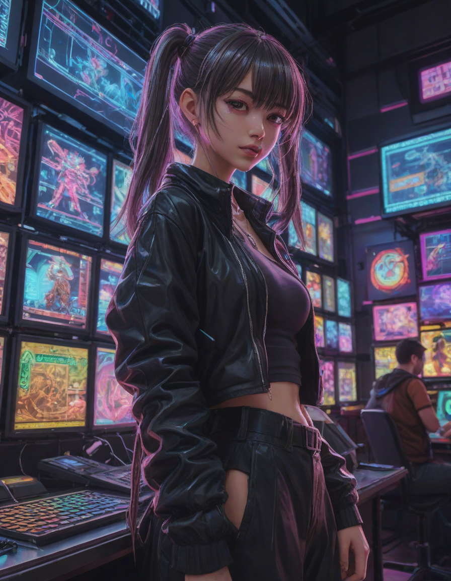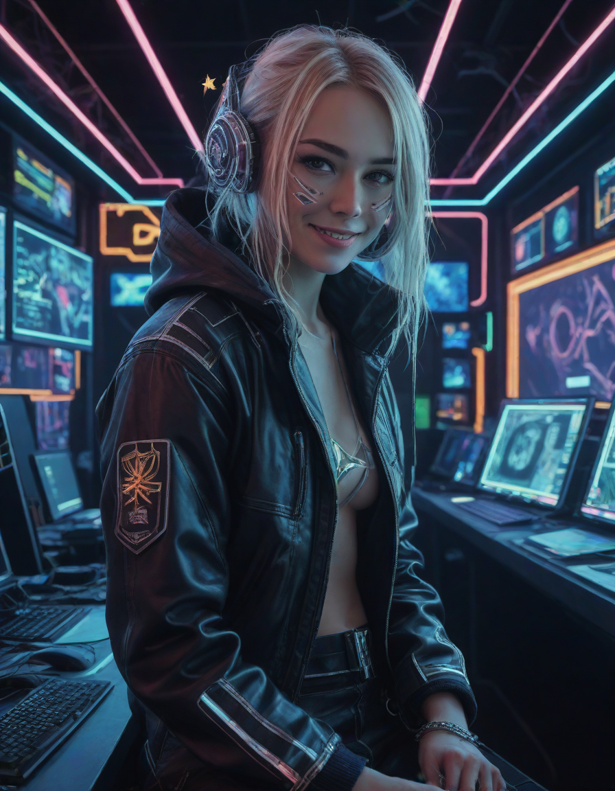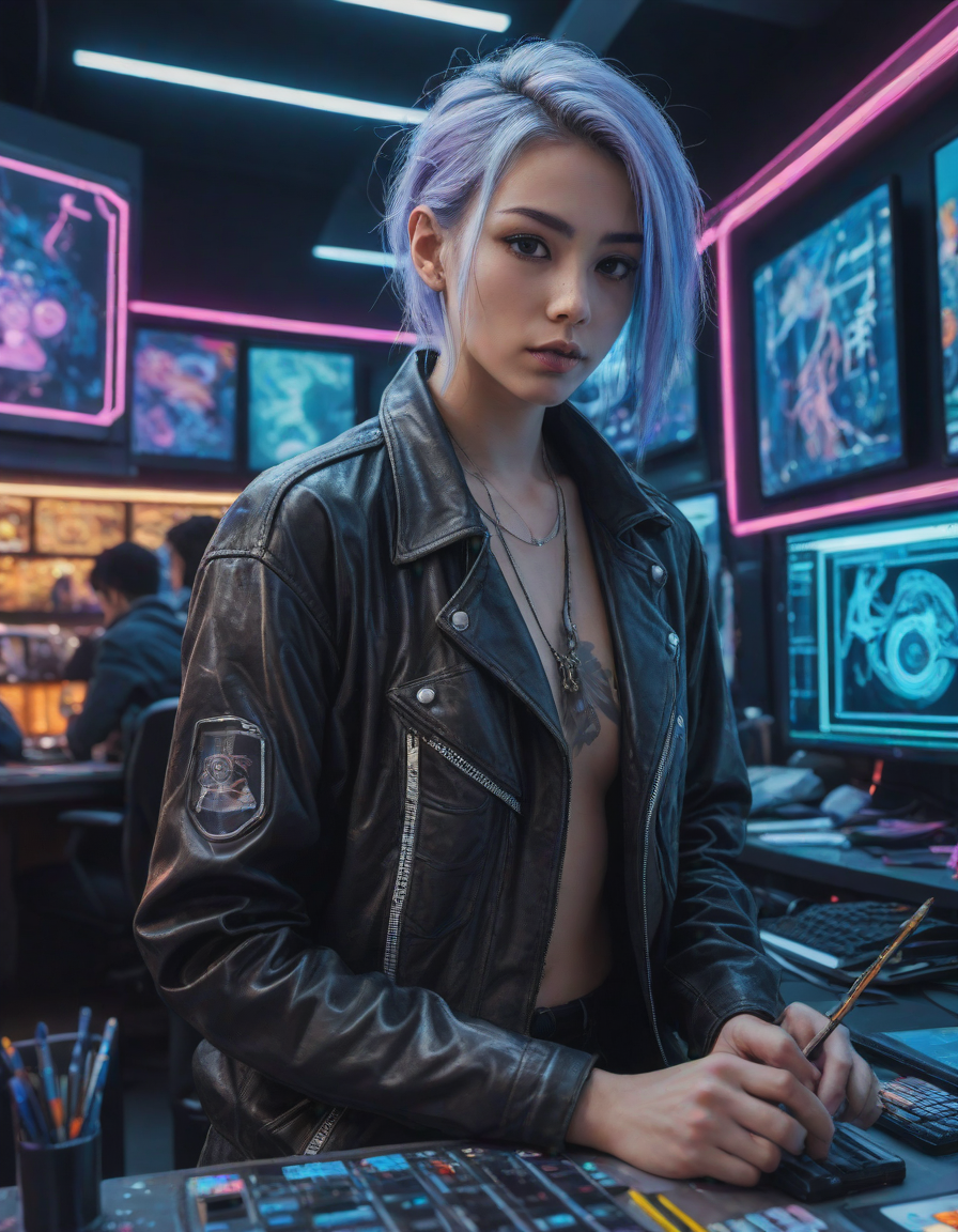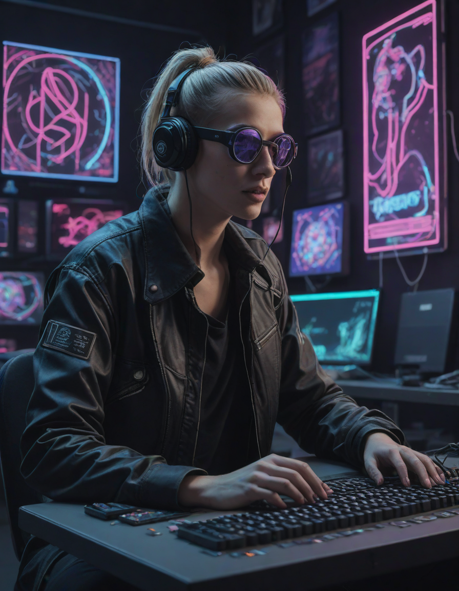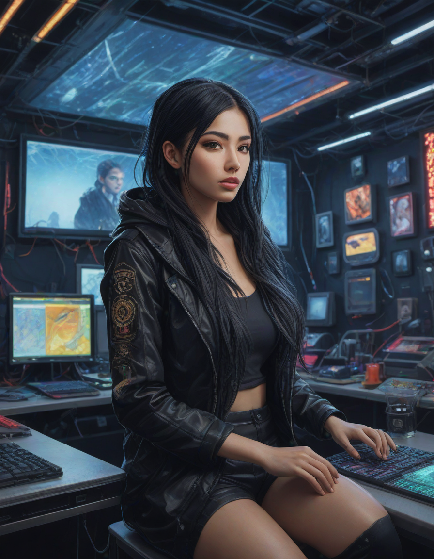 cyberpunk hacker, surrounded b... (10 loras merged)