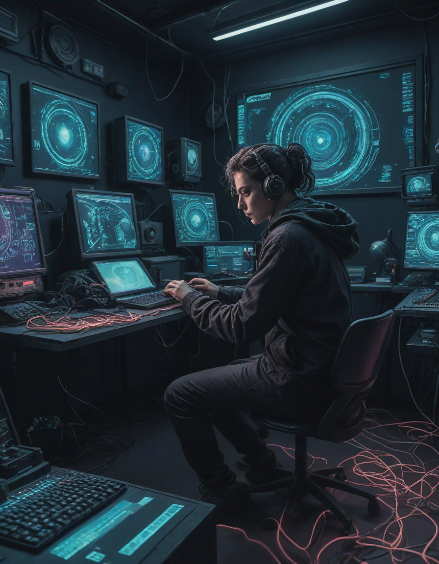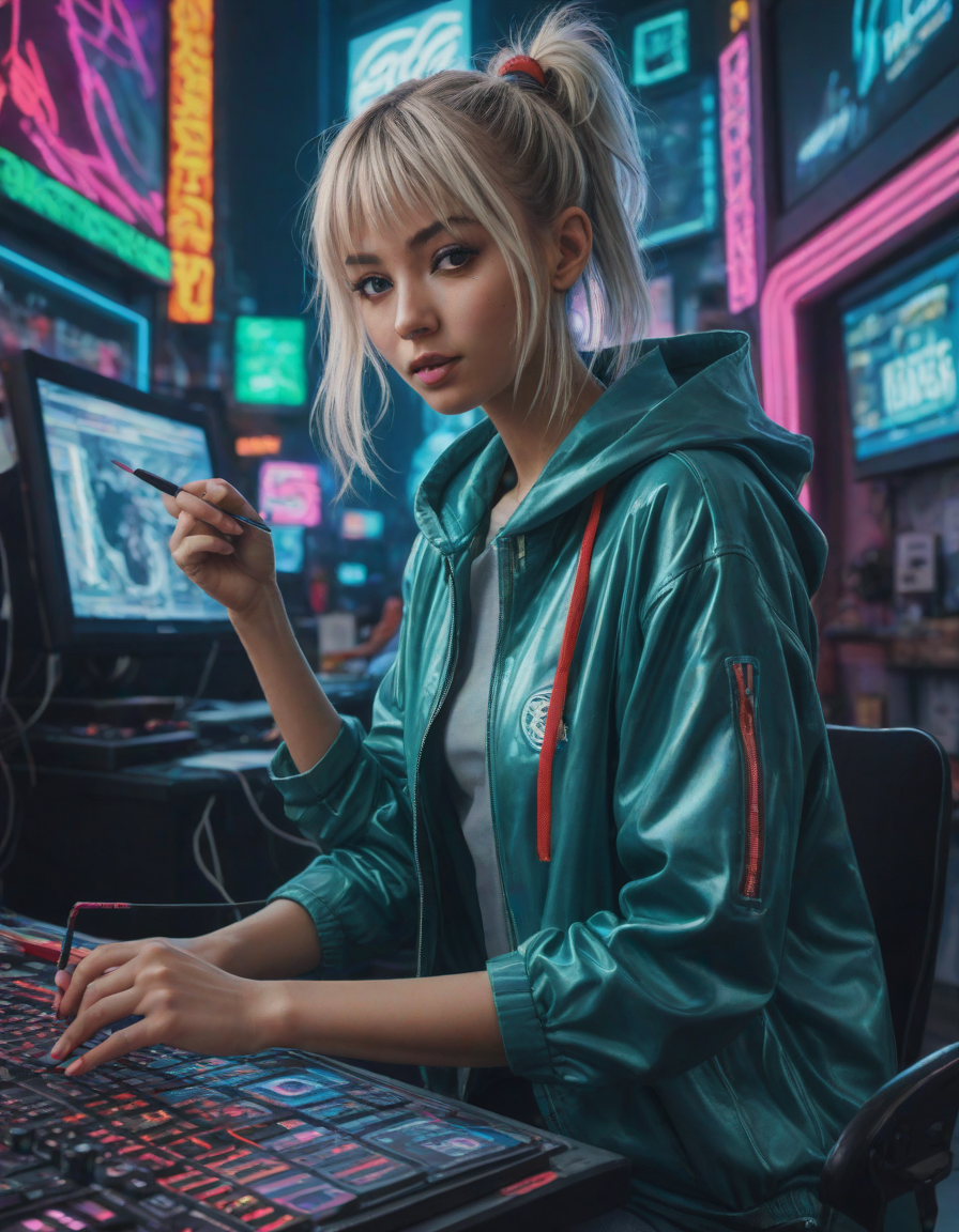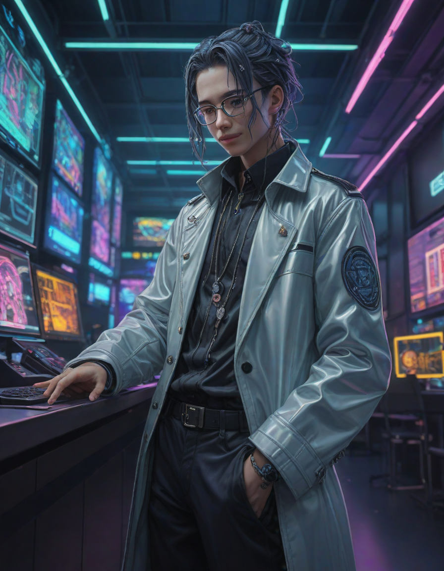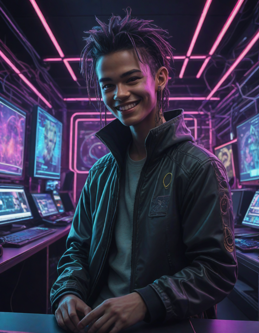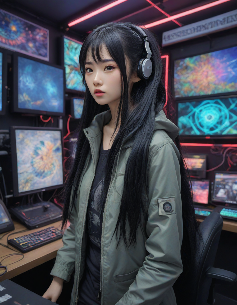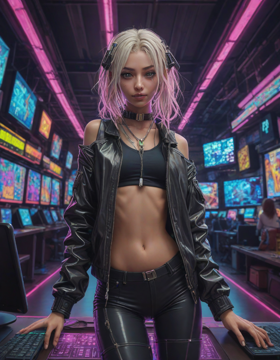 cyberpunk hacker, surrounded b... (10 loras merged)