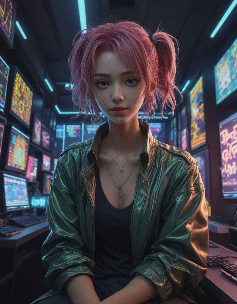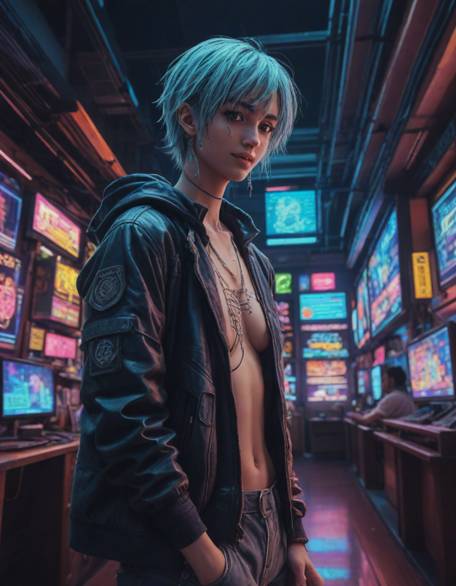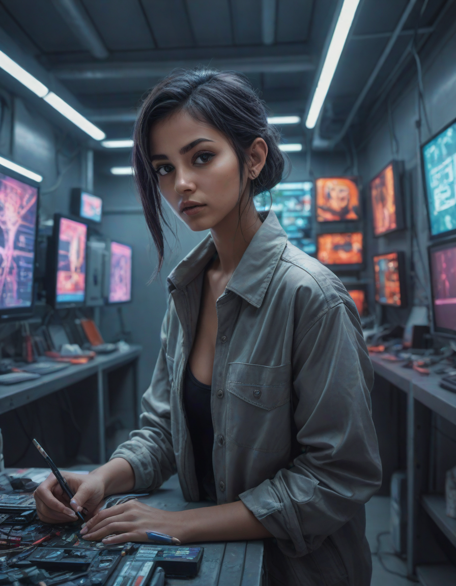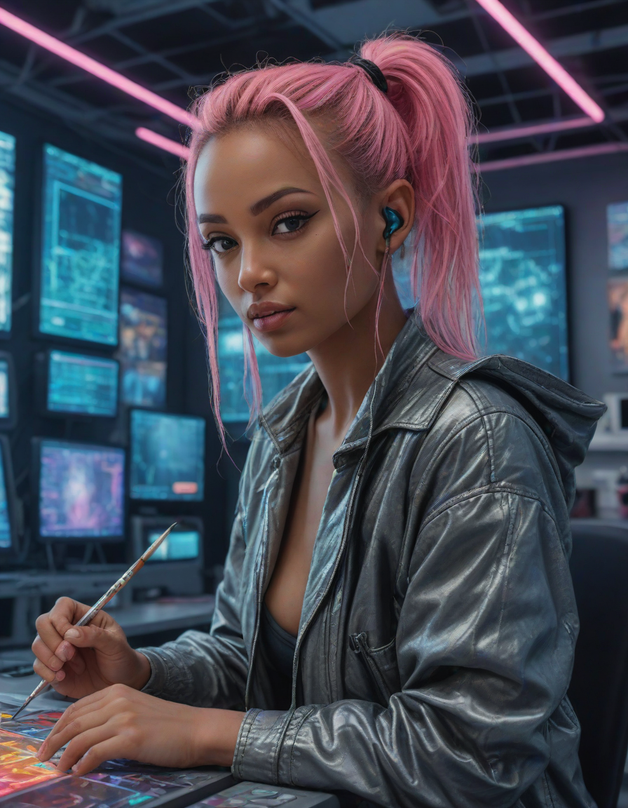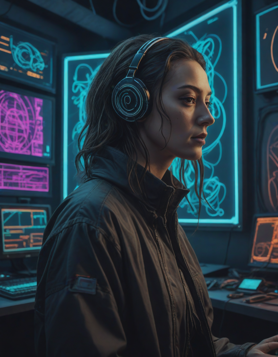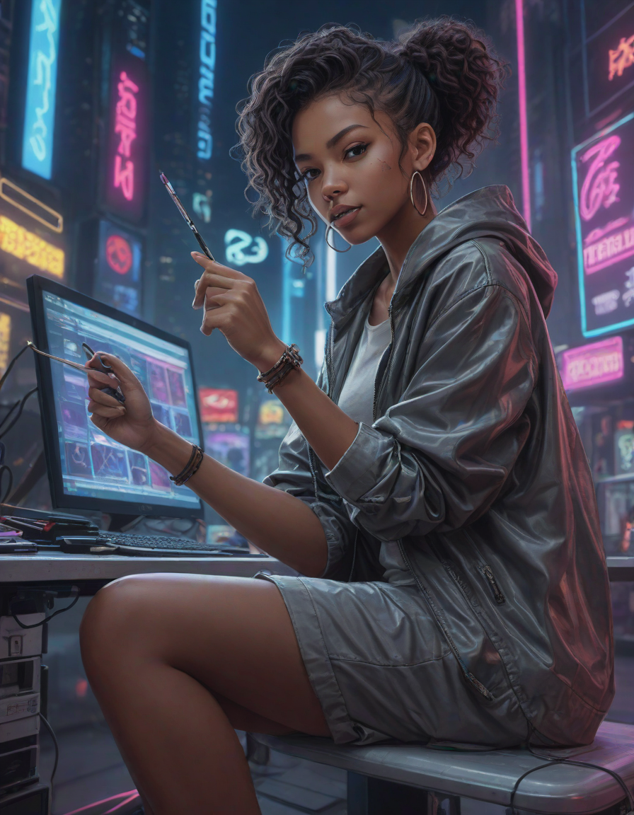 cyberpunk hacker, surrounded b... (10 loras merged)