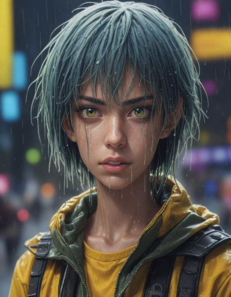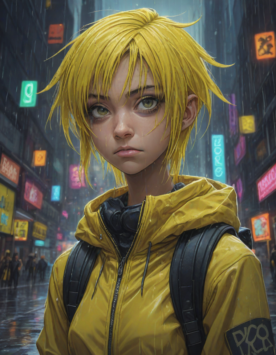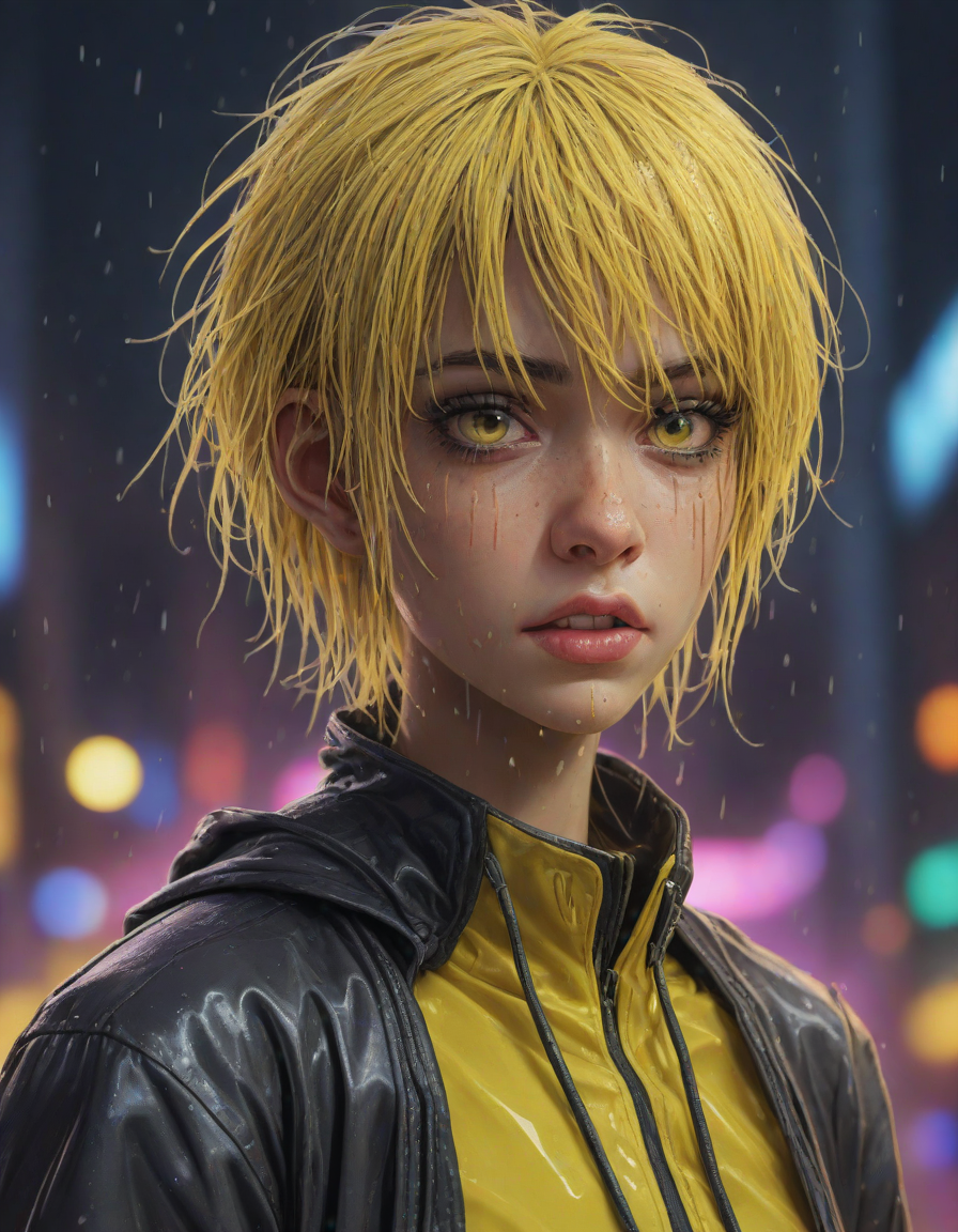 yellow, cyberpunk hacker, surr... (5 loras merged)