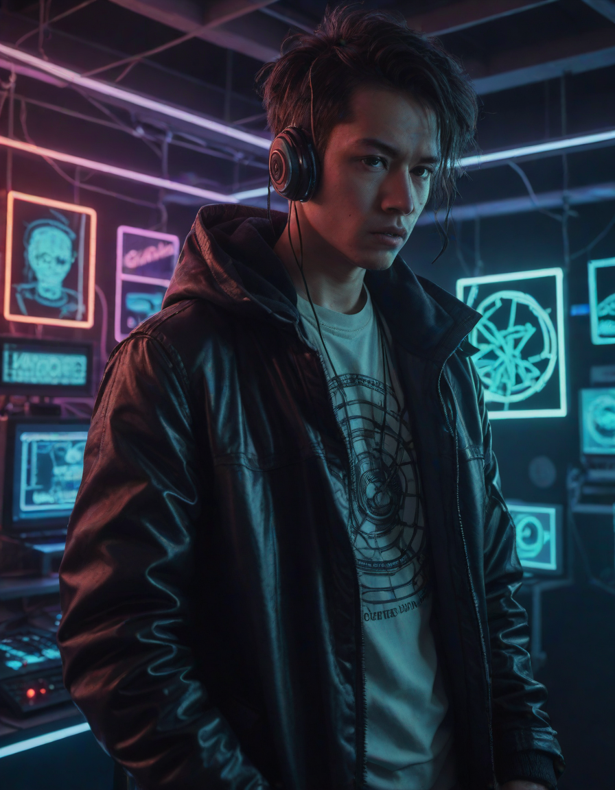 cyberpunk hacker, surrounded b... (11 loras merged)