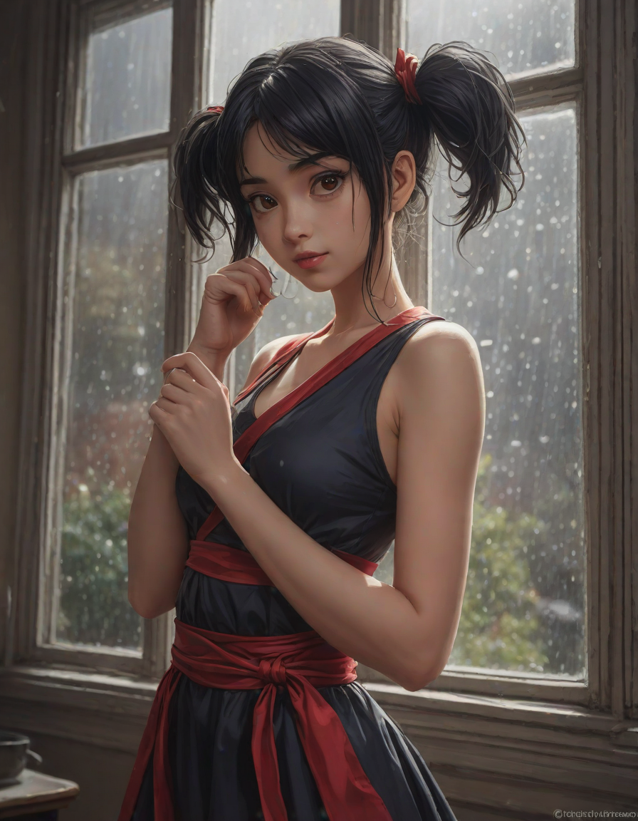 wearing 90s clothing, Raindrop... (2 loras merged)