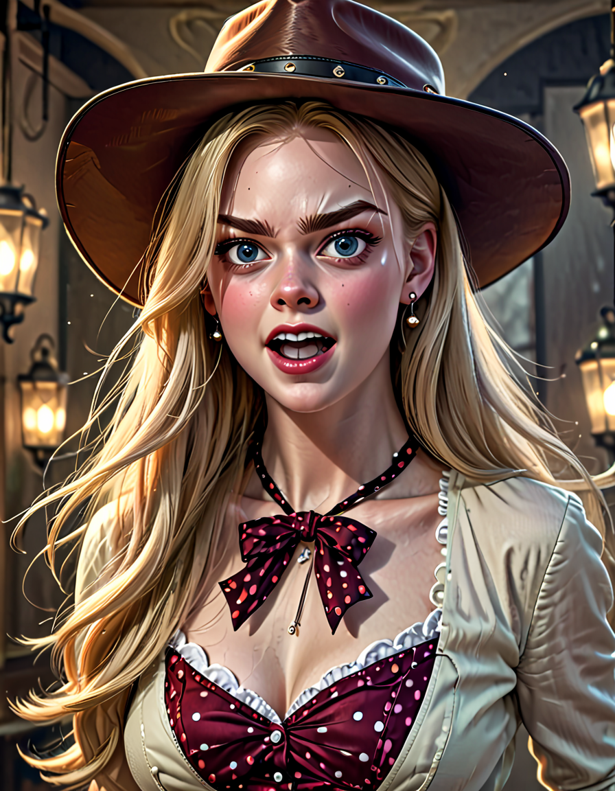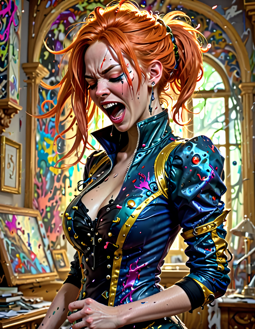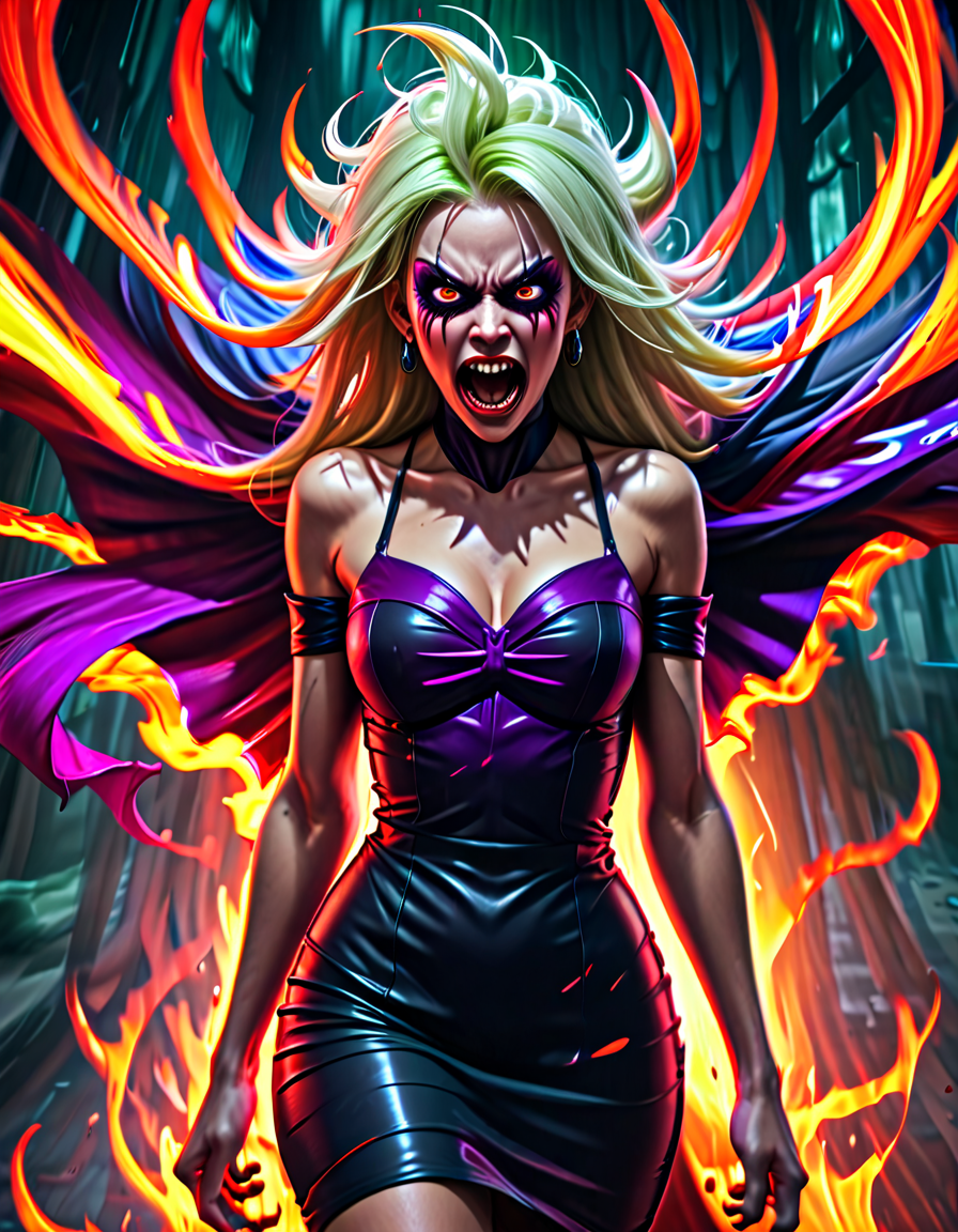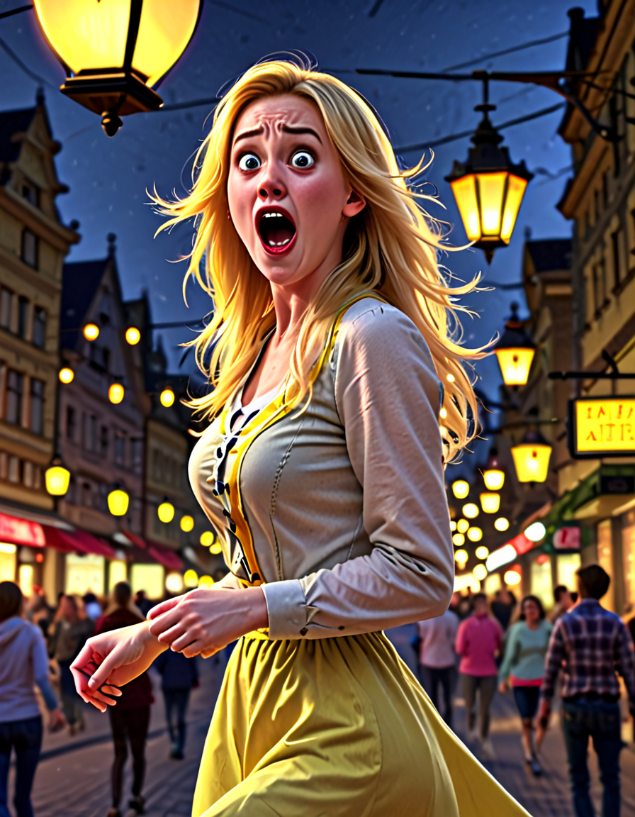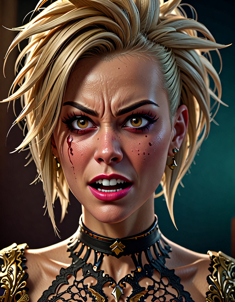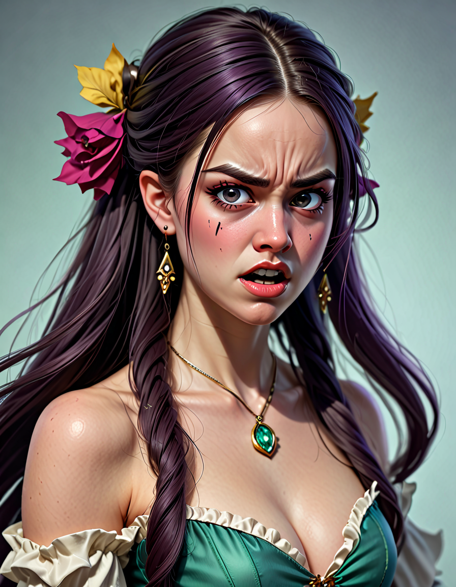 panicked, wearing elegant dres... (3 doras merged)