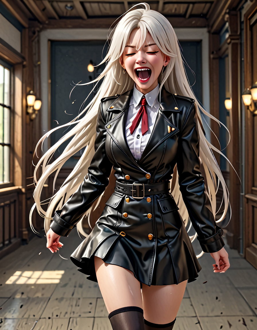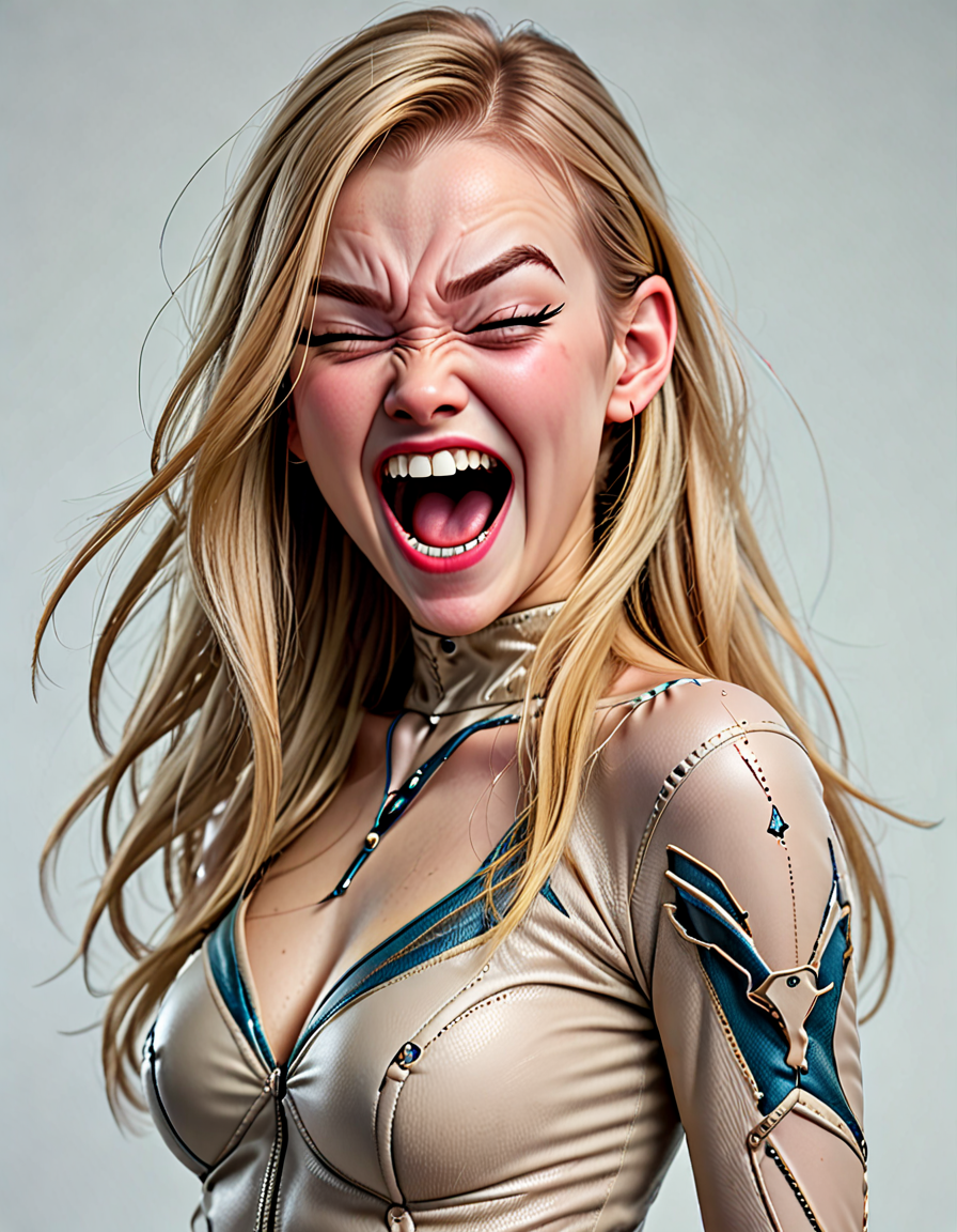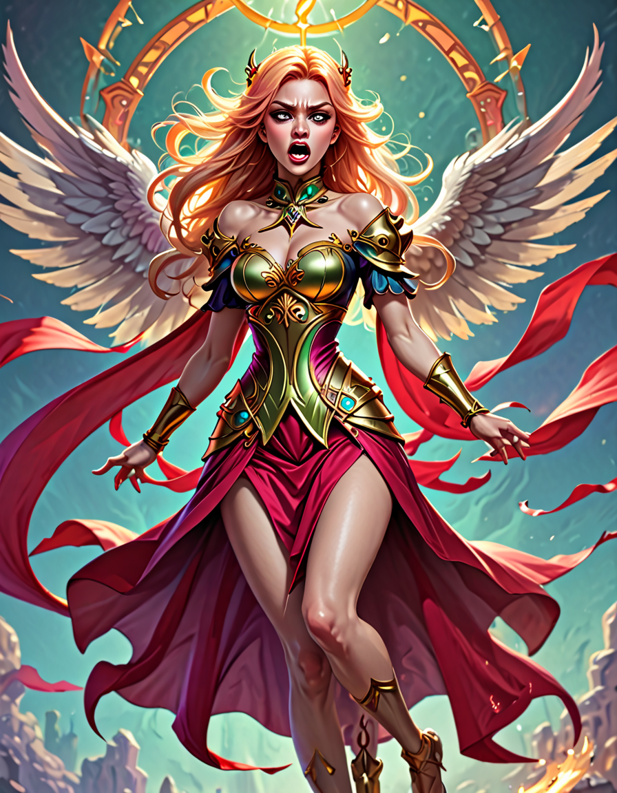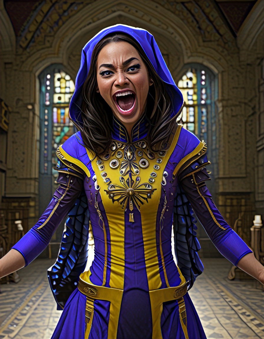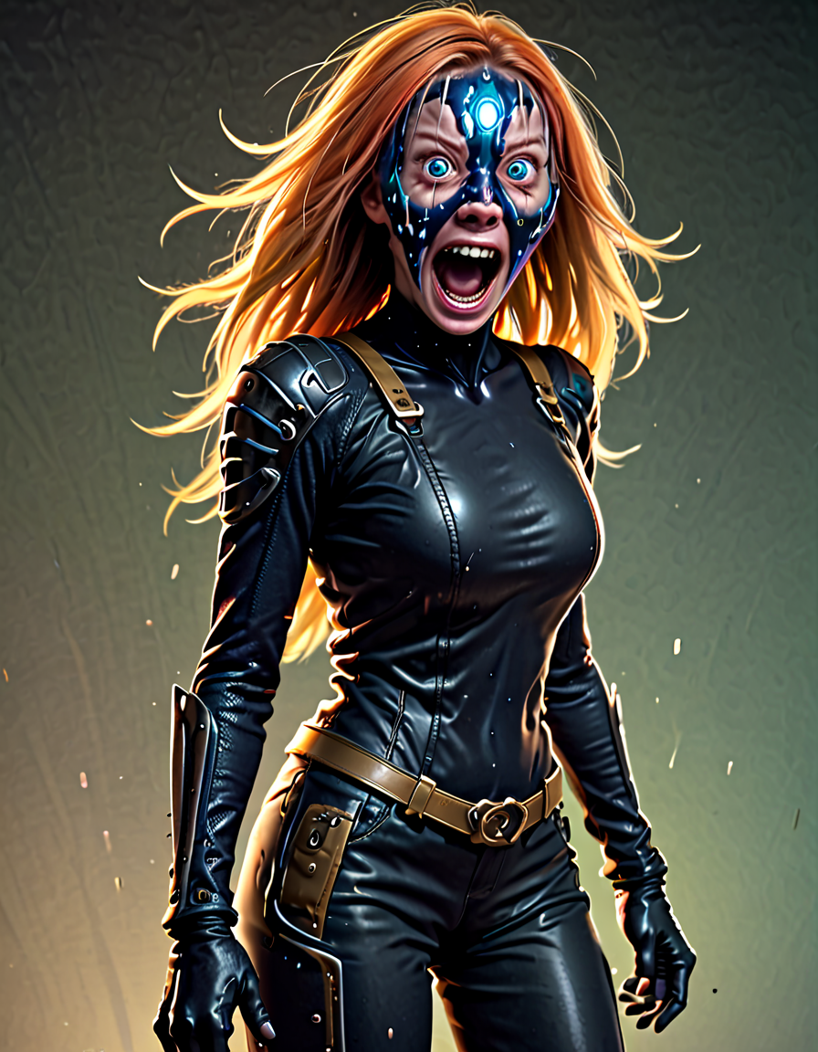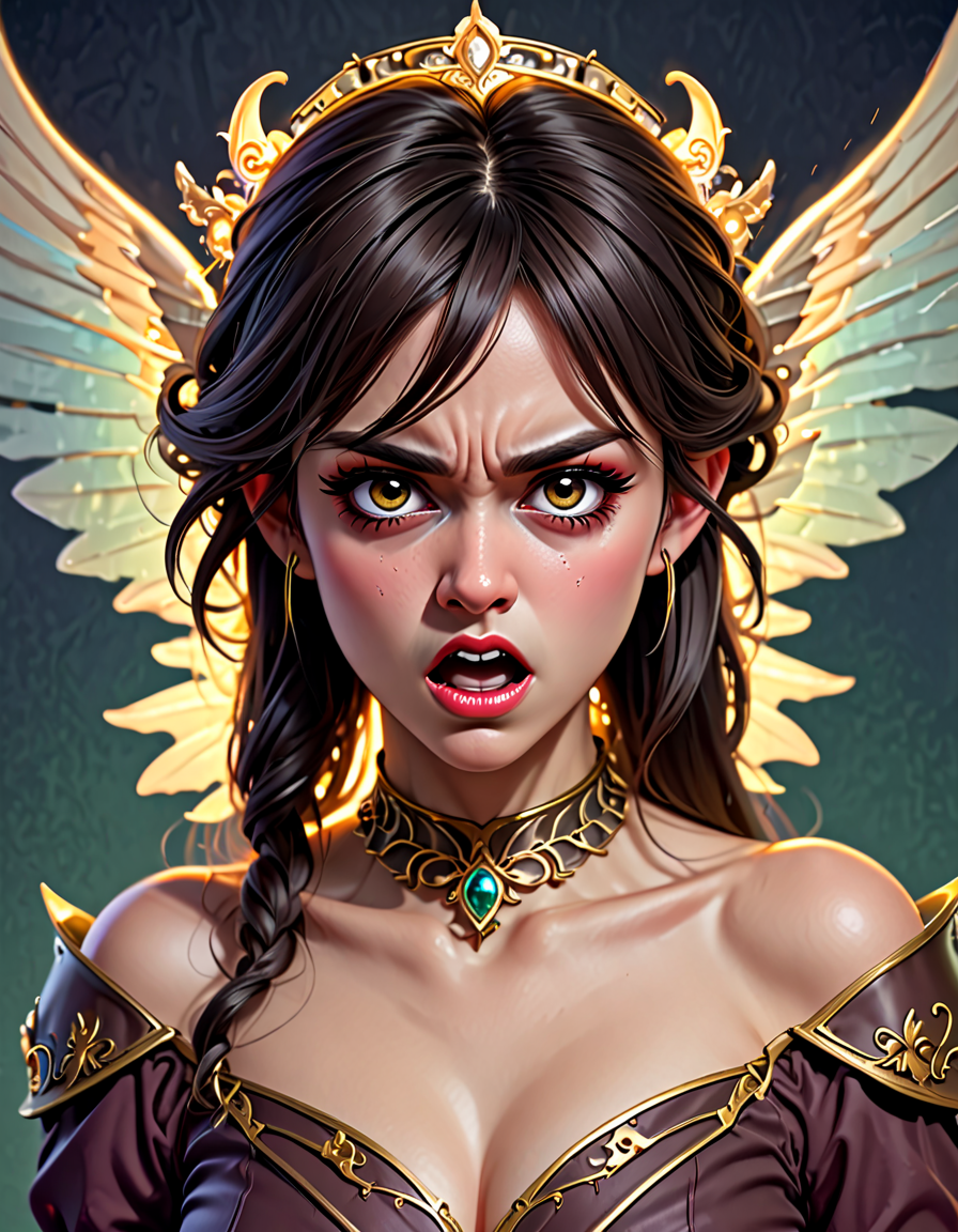 panicked, wearing elegant dres... (3 doras merged)