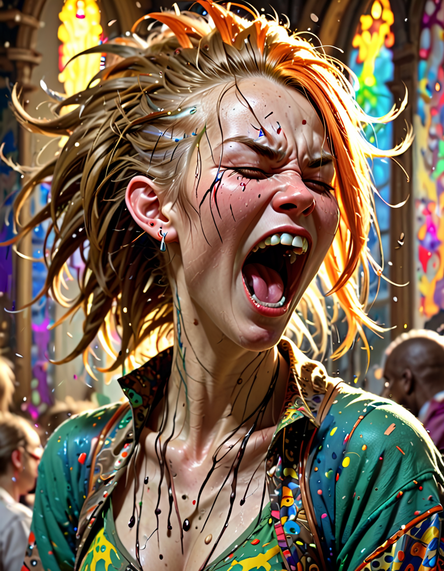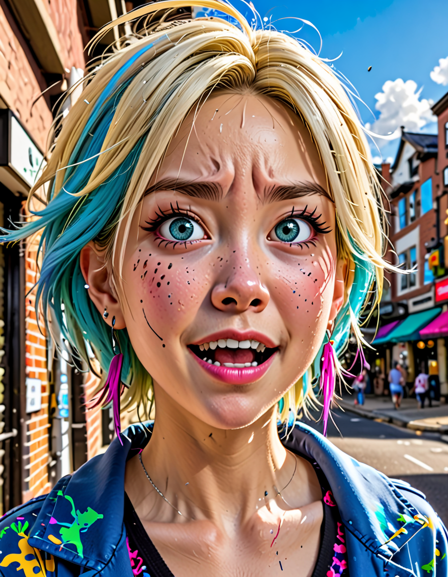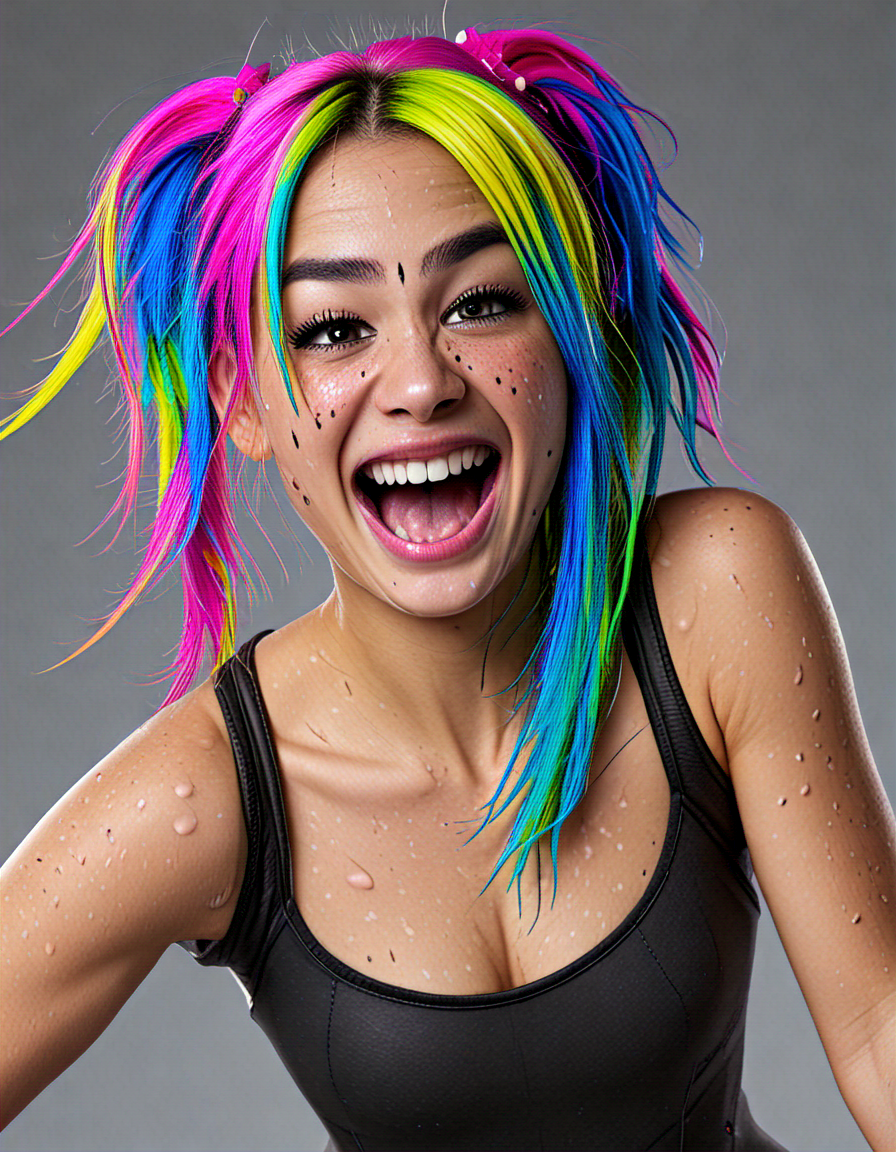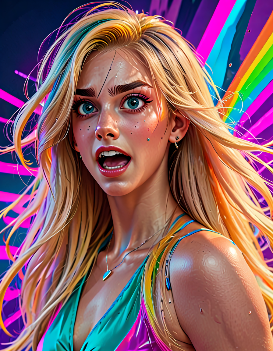panicked, colorful hair, night... (3 doras merged)