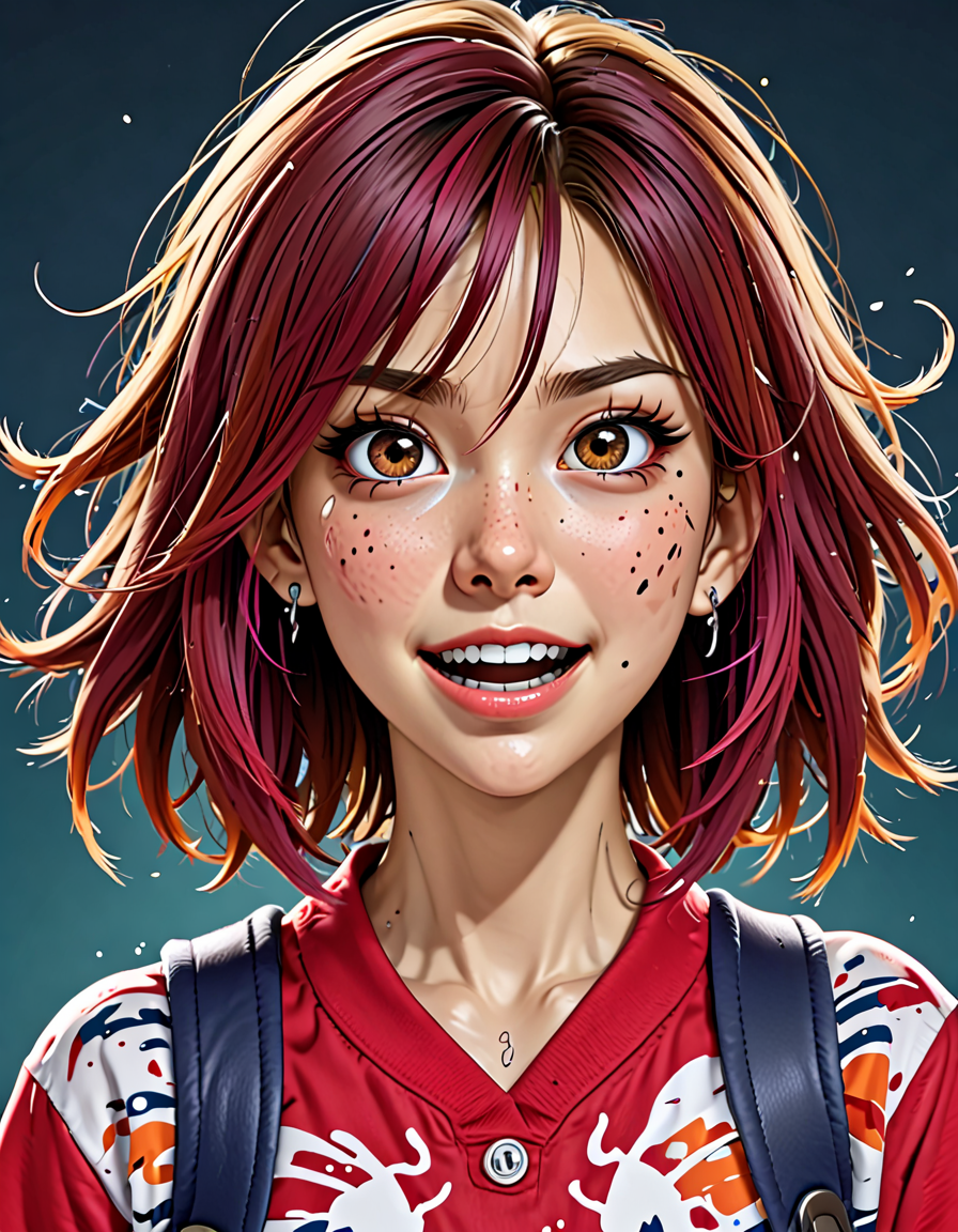 happy, photorealistic portrait... (7 doras merged)