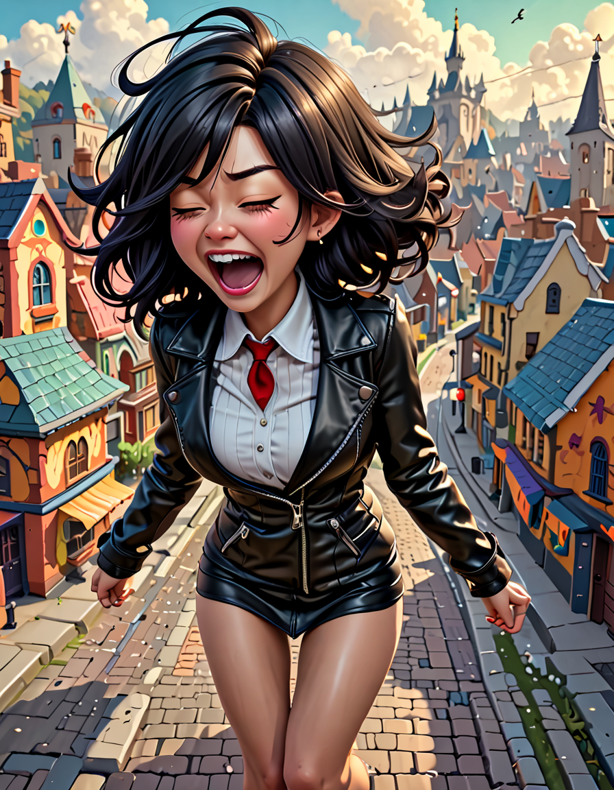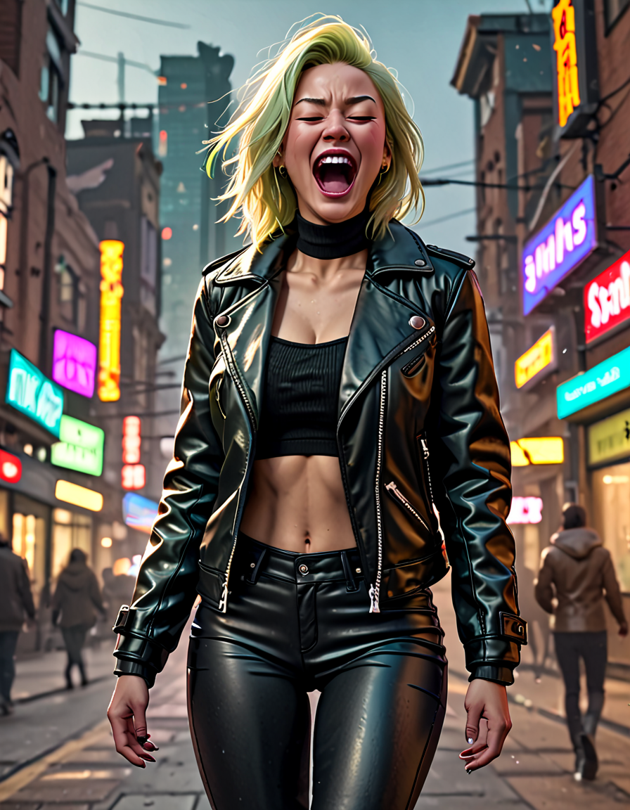 panicked, wearing leather jack... (8 doras merged)