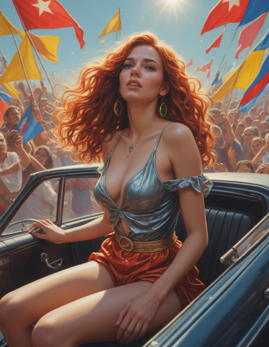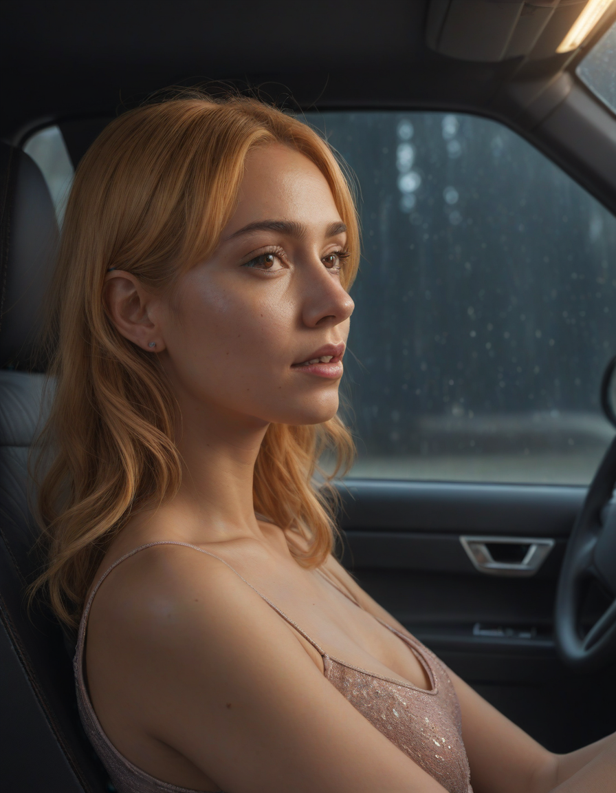 heartbeat, in a car, surrounded by people, a joyful conversation, Blinding light highlighting mysterious figure, Devotion, a glistening, crystal-like figure that sparkles in the light, Grizzled and rugged, extreme pain