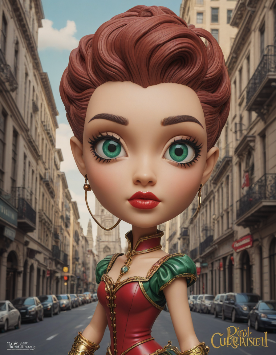 sultry look, funko pop big head, big head mode, gigantic head, small body, eye-popping, christmas elf, nutcracker, eyes wide open