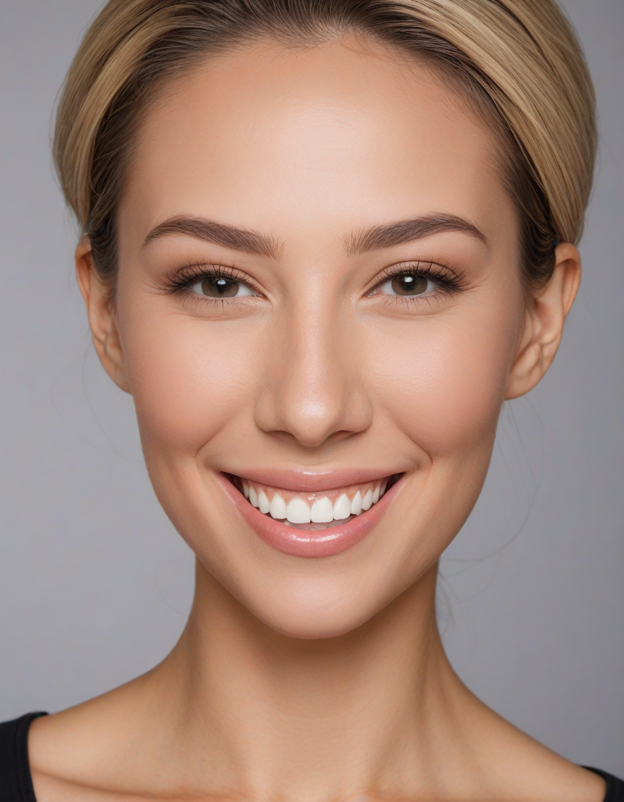 laughing, Lip fillers, thick full lips, enhanced lip volume, accented cupid's bow, Rhinoplasty, refined nose shape, straightened nasal profile, facial symmetry, Botox injections, smoothed facial lines, reduced wrinkles, youthful appearance, Cheek fillers, pronounced cheekbones, sculpted contours, lifted cheeks, brightened eyes, reduced under-eye bags, rejuvenated area, Liposuction contoured shape, reduced excess fat, sculpted physique, Dermal fillers, restored volume, smoothed texture, diminished lines, strengthened definition, balanced proportions, enhanced jawline, Facelift, tightened skin, reduced sagging, improved skin tone, reduced imperfections, enhanced clarity, Blepharoplasty, Reduced puffiness, restored youthful eye contour, Enhanced chin shape, improves facial harmony, strengthened jawline definition, symmetry facial features, golden_ratio