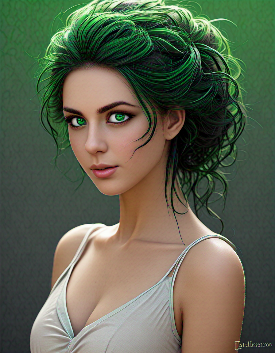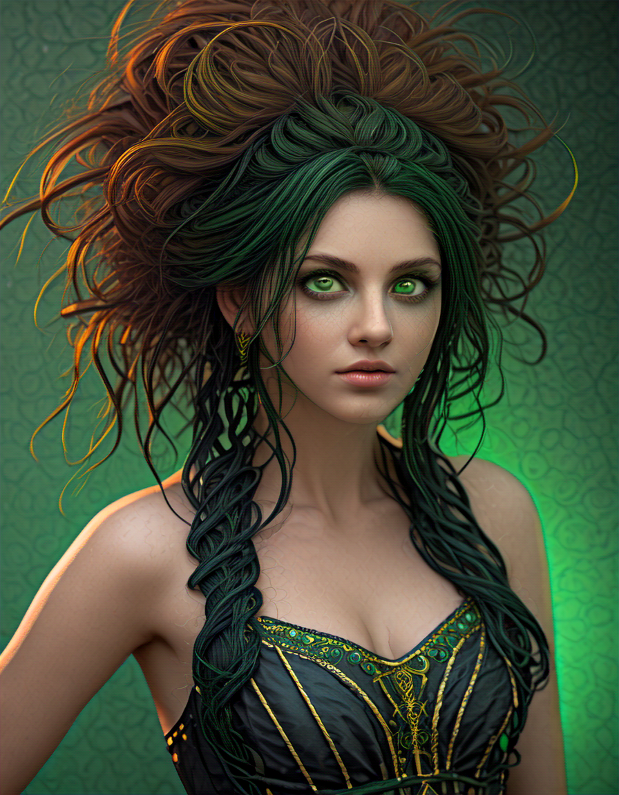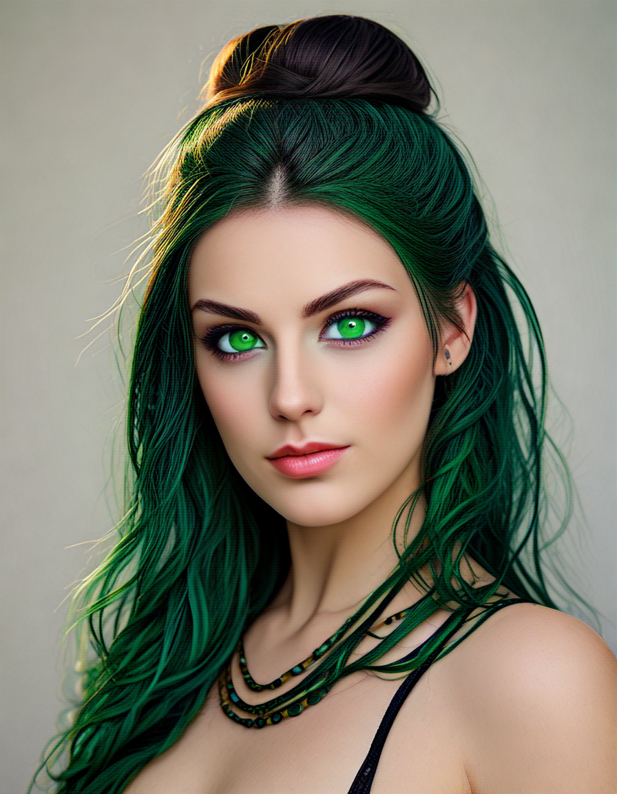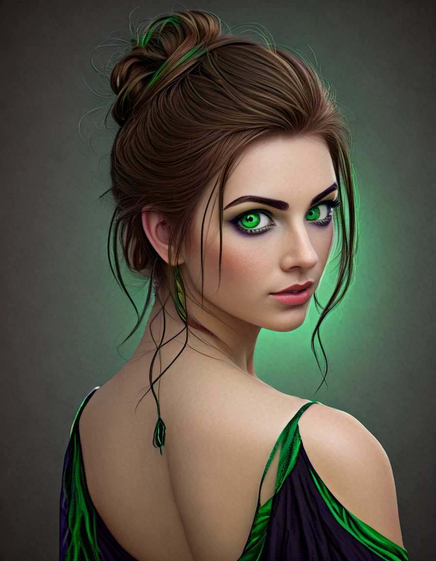 radiant green eyes, hair up (2 loras merged)