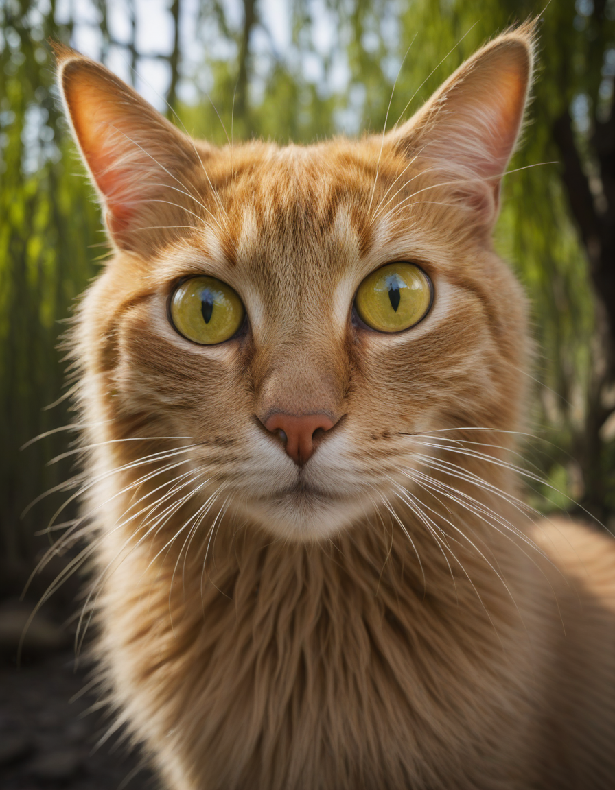 willow silhouette, yellow cat-like eyes, fisheye lens
