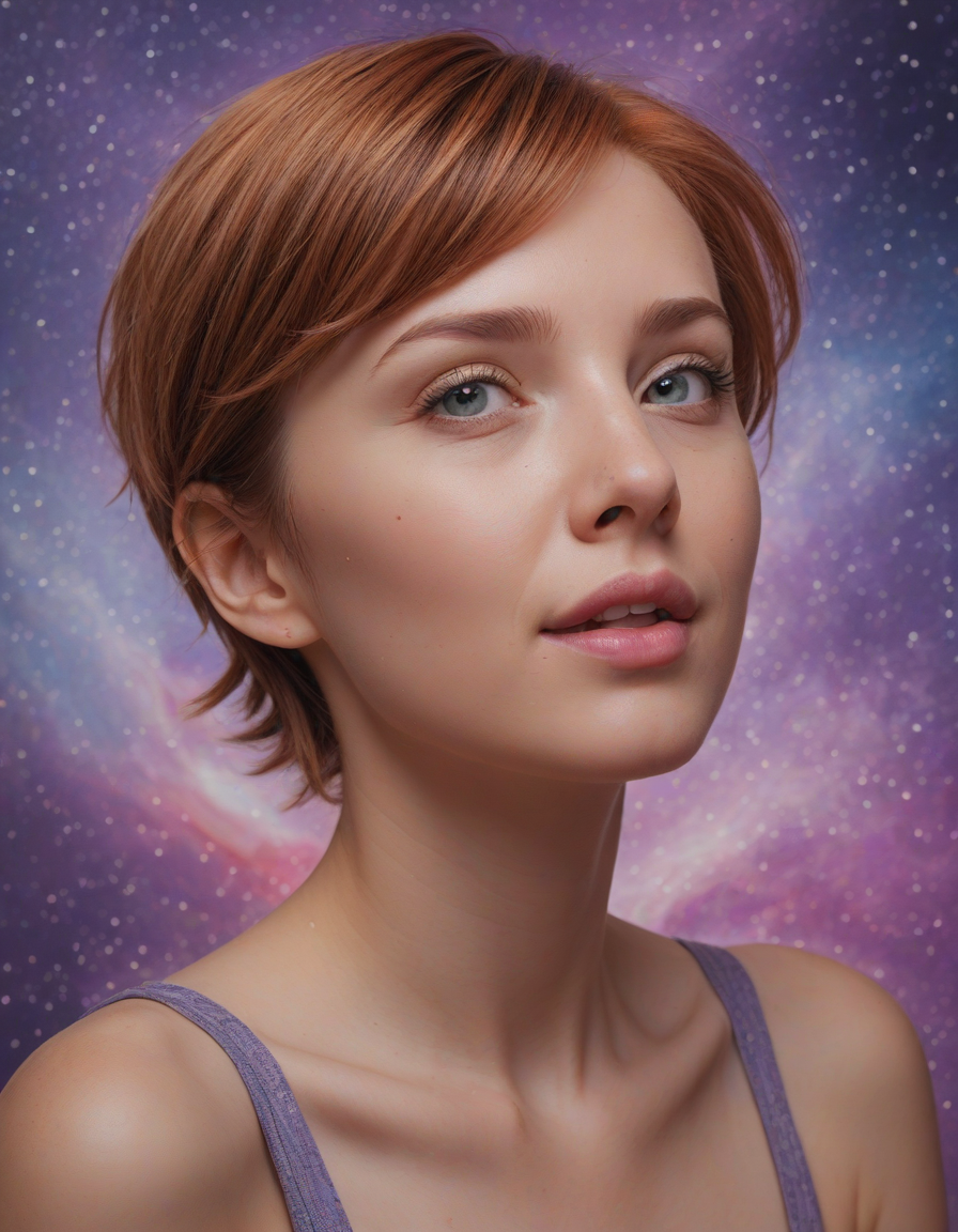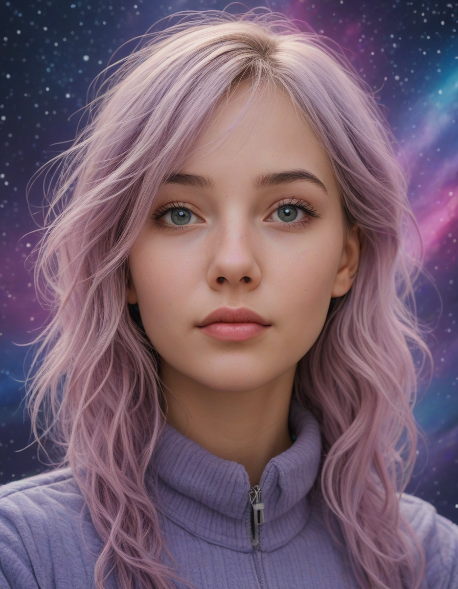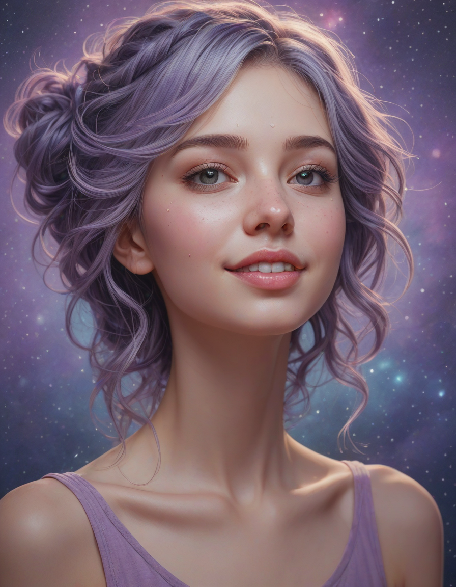 happy crying, partying, luminescent, extremely cozy, pixelated, glassy, Lavender nebula, She pouts playfully, Love, A painter meticulously blends hues on a wooden canvas