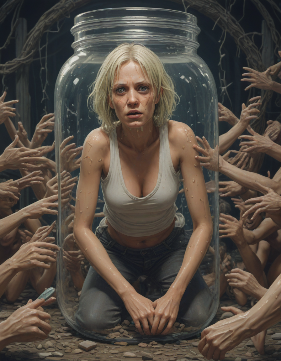 afraid, nervously wringing damp trembling hands, feeling pure ecstasy, in an glassjar, spritesheet, Wise-looking, pixel art, Unkempt, crowd of people