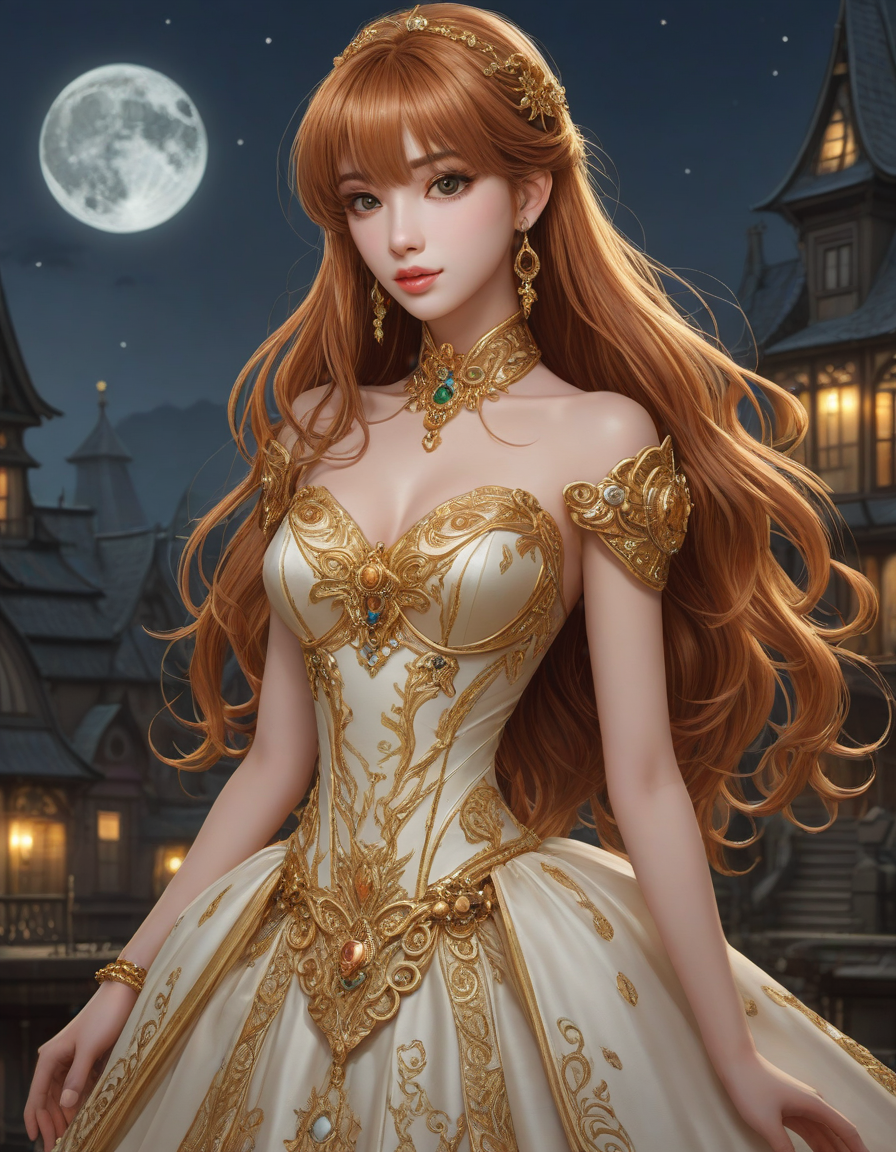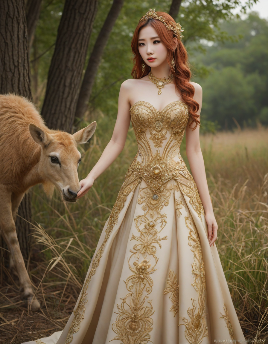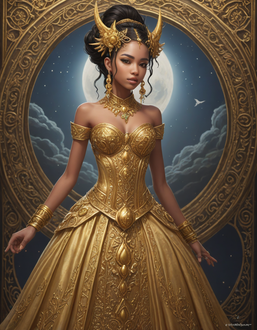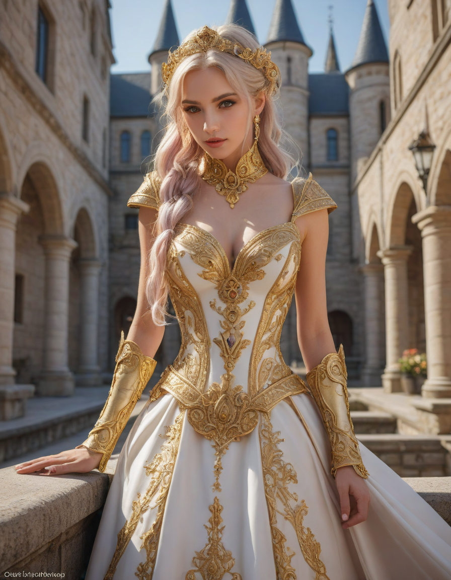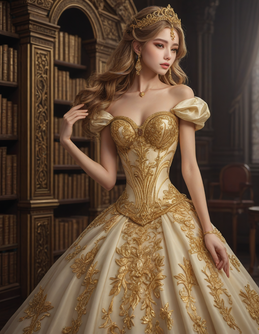 ornate, gold-trimmed ball gown... (2 loras merged)