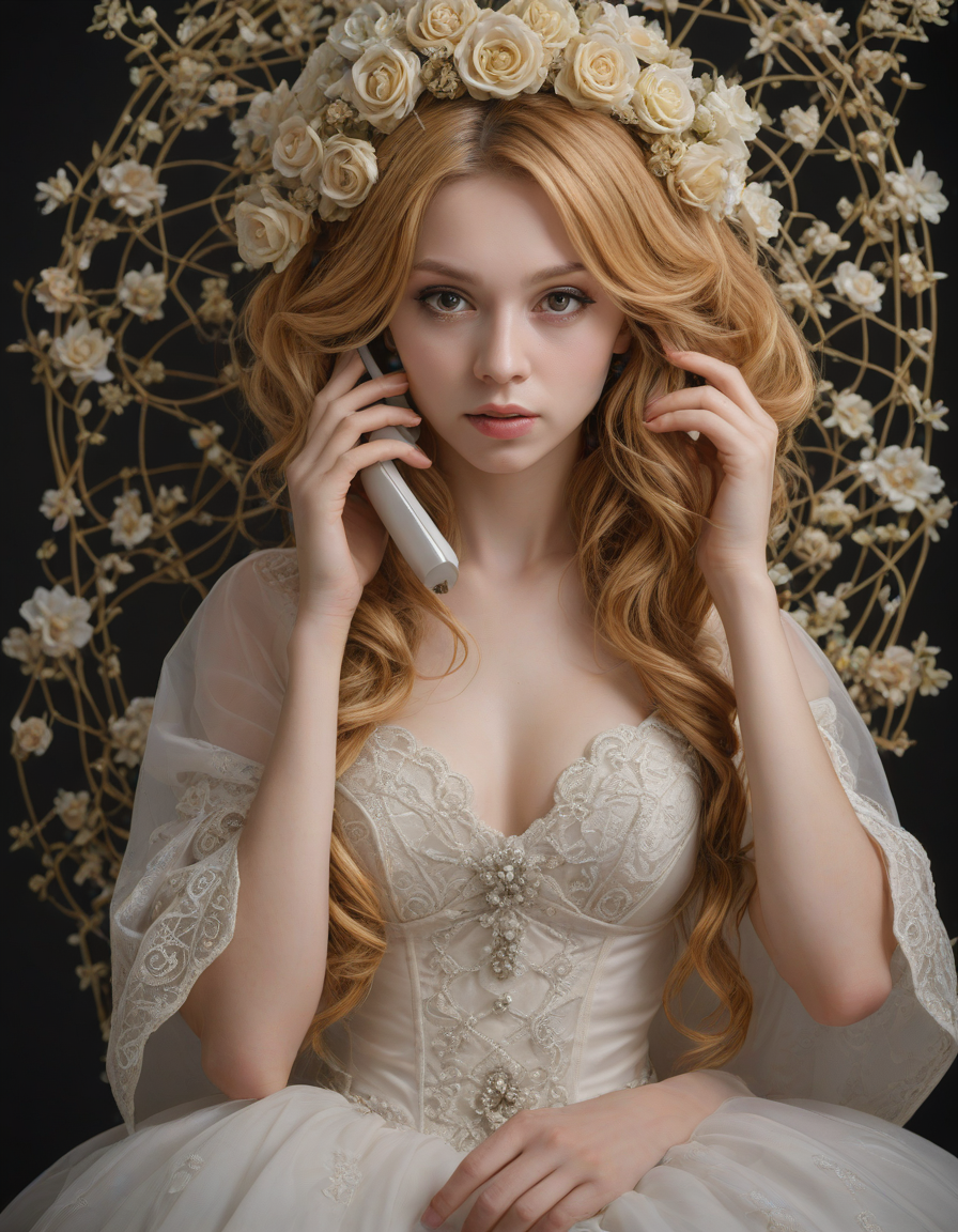 bride, driven mad god, on the phone, preoccupied, alien-looking
