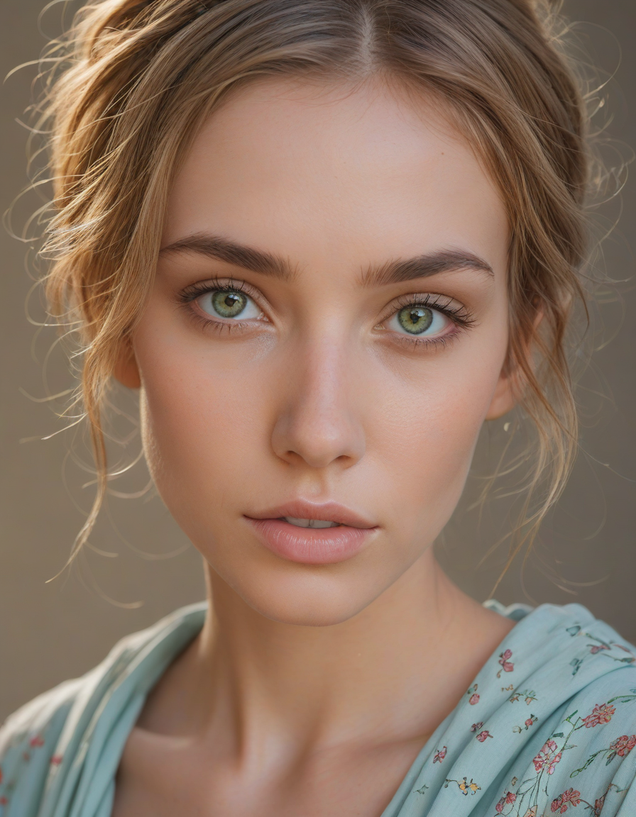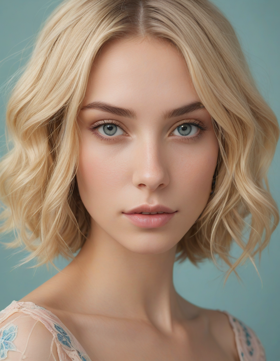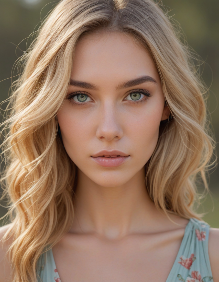 bohemian, "free spirit", jewelry, tattoo, spring dress, Wide Skirt, wide ballgown hem, a line skirt, petticoat skirt, , oval face shape, almond-shaped eyes, voluminous lashes, slightly arched eyebrows, narrow nasal bridge, rounded nose tip, symmetrical nostrils, full lips, pronounced cupid's bow, slightly fuller lower lip, defined cheekbones, rounded chin, smooth complexion, softly contoured jawline, balanced facial proportions, symmetrical features, gently curved eyelids, soft brow ridge, harmonious cheek to jawline transition, subtle philtrum, delicate ear lobes, straight blonde hair, clear skin, hooded eyelids, light pink lip color, slightly pouty expression, casual pose with hand on face, slight head tilt, indoor lighting, Light blue irises, Medium-thickness eyebrows, Softly angled eyebrows, A hint of freckles across the nose and cheeks, Natural makeup, Gentle frown lines between the eyebrows, Soft nasolabial folds, Smooth forehead, Subtle dimple on the chin, Clear facial contour without distinct shadows, Even skin tone with a hint of natural pink undertones, Slightly rosy cheeks, Tapered jawline, Fine hair texture with gentle waves, Youthful appearance with soft facial features