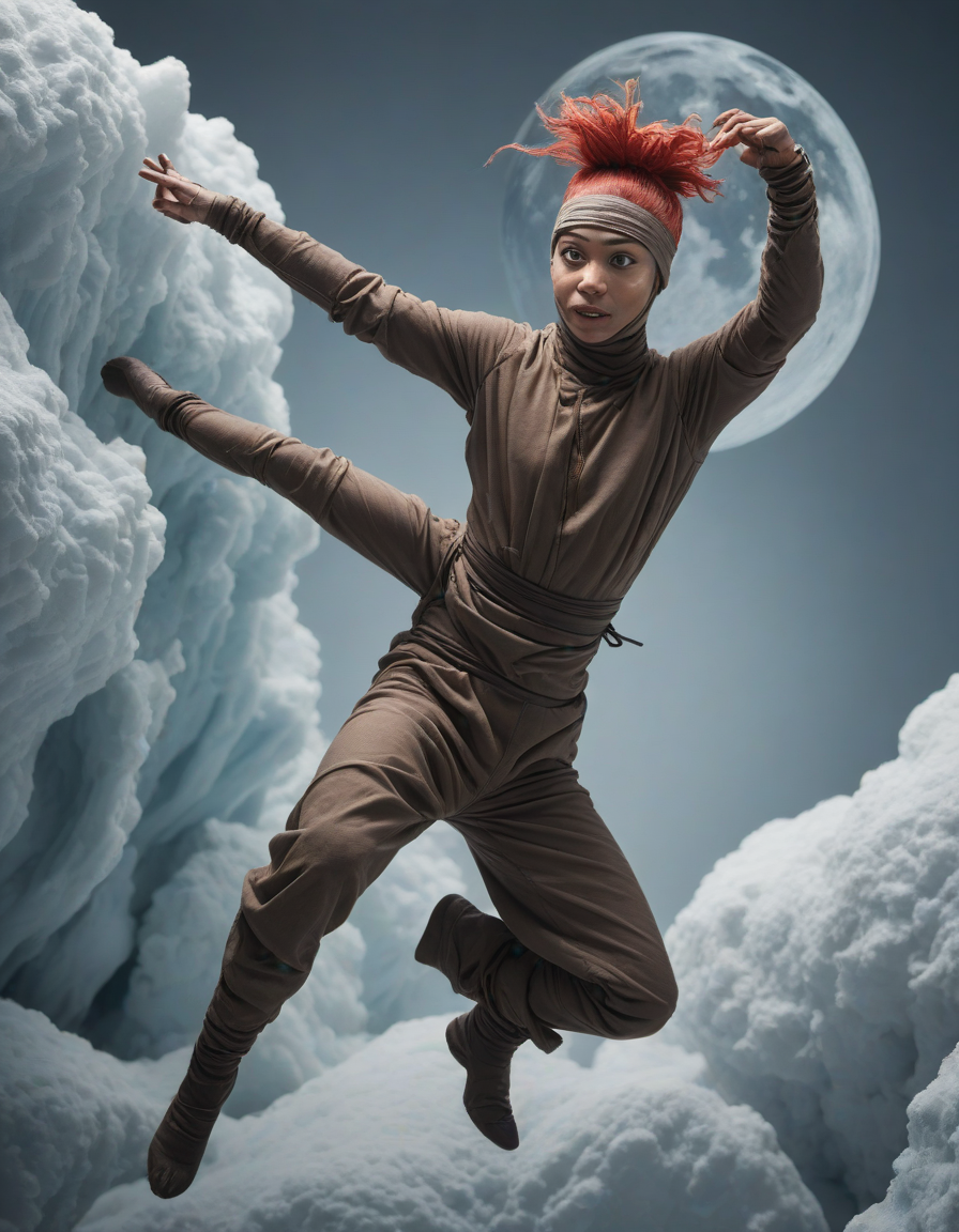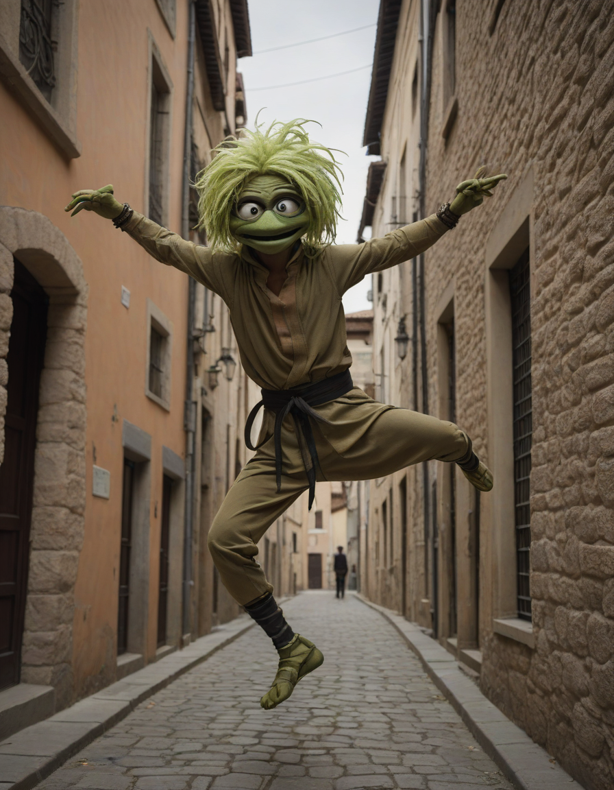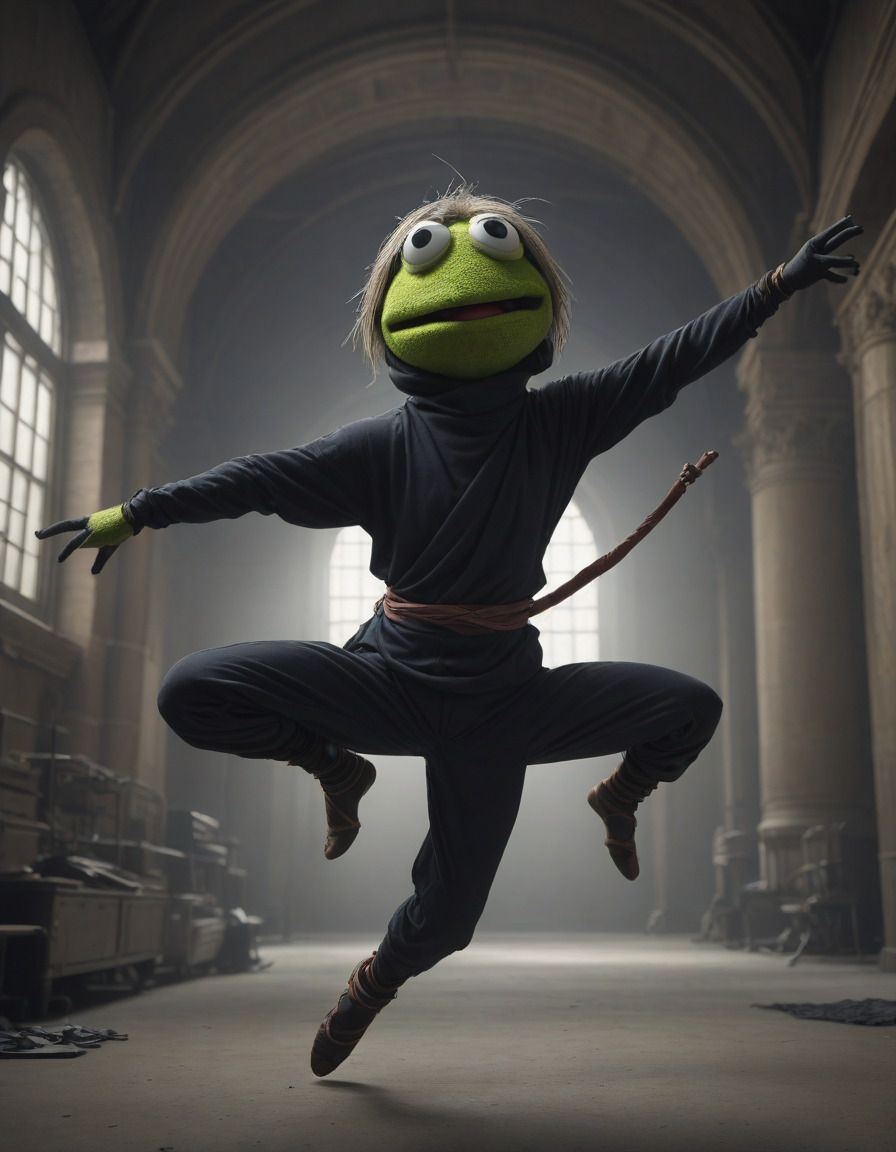 muppet, Ethereal, evanescent, otherworldly, Ninja performing stealthy acrobatic move