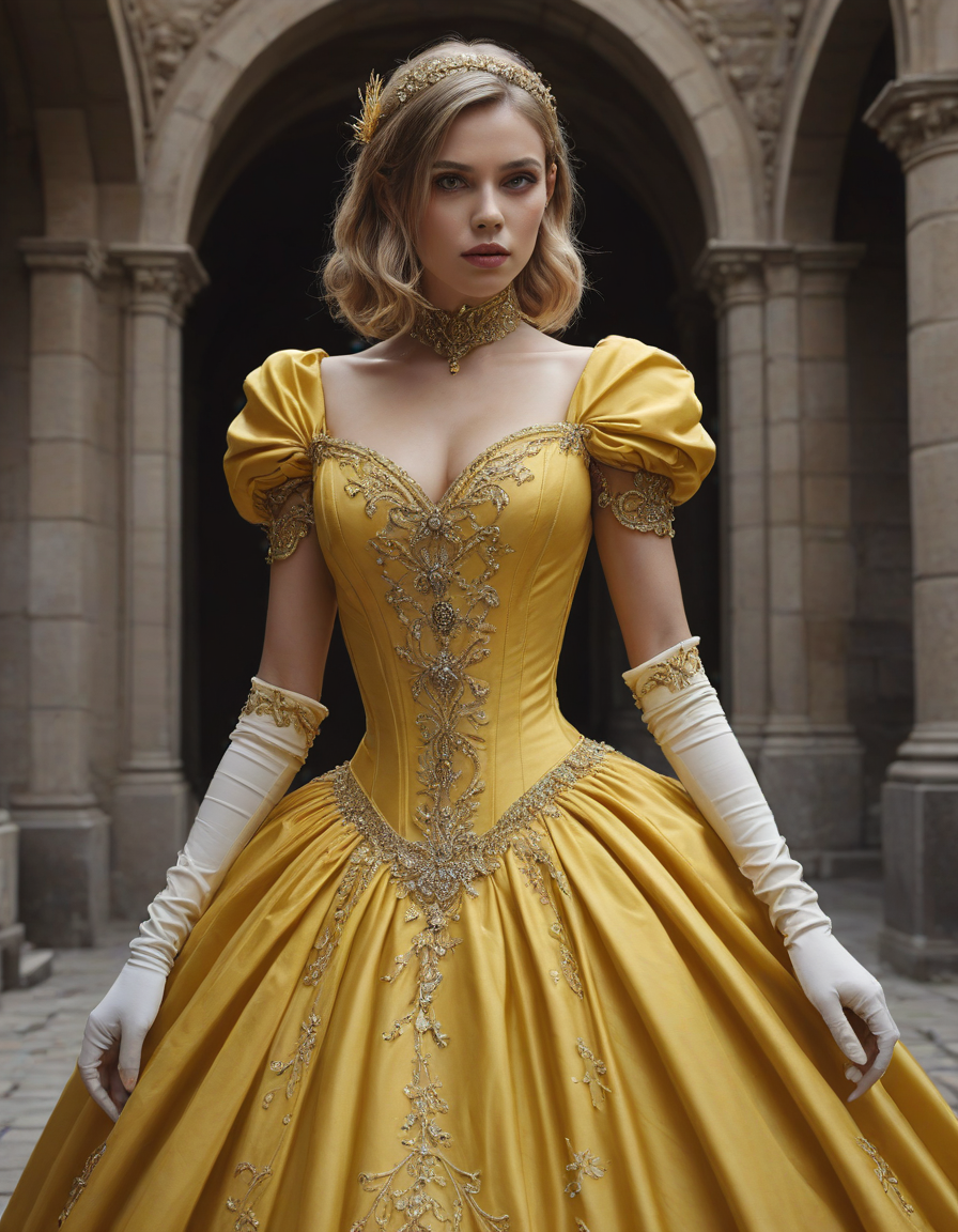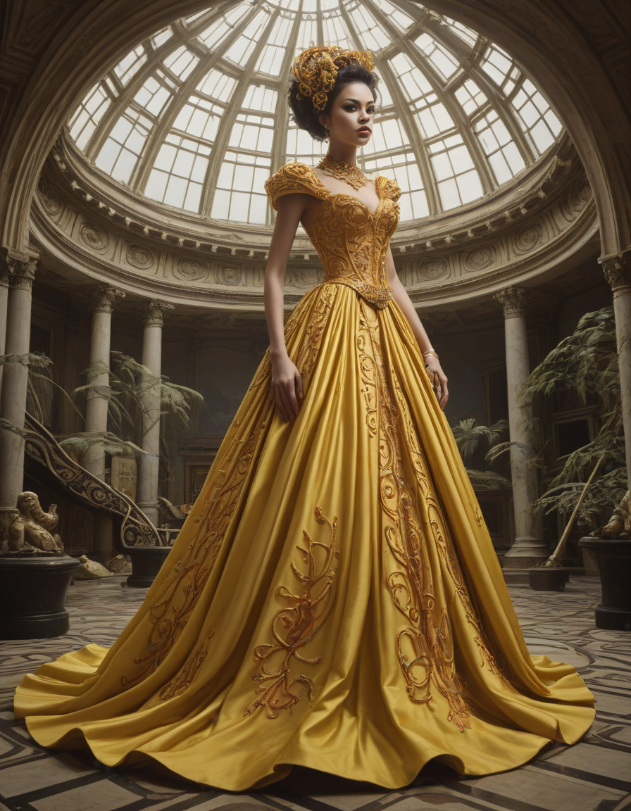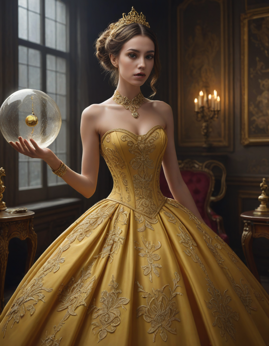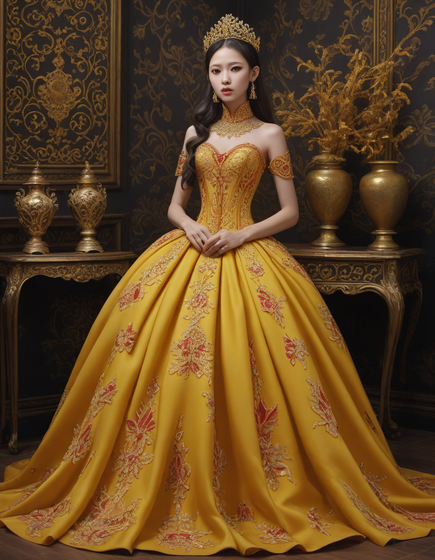 ornate, gold-trimmed ball gown... (5 loras merged)