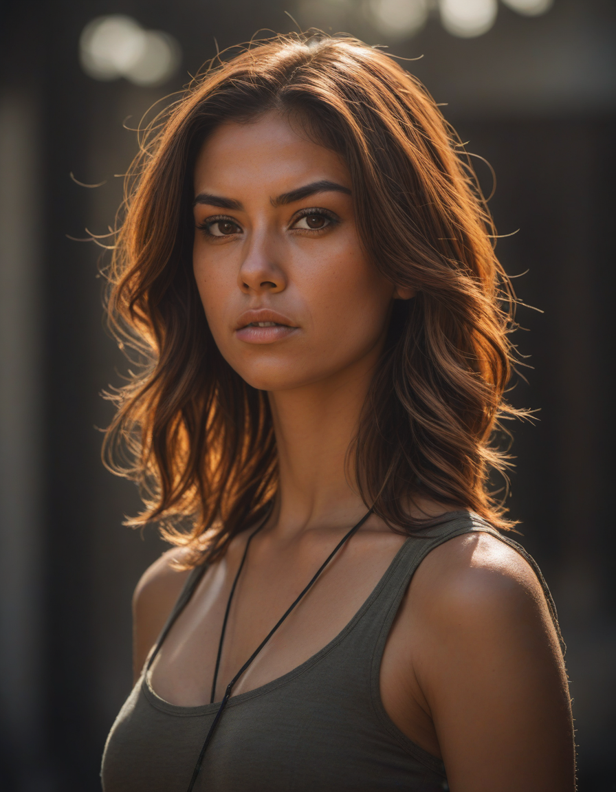 Sunlit strands, tangerine skyline, looking at viewer, dully glowing with internal fires, angry